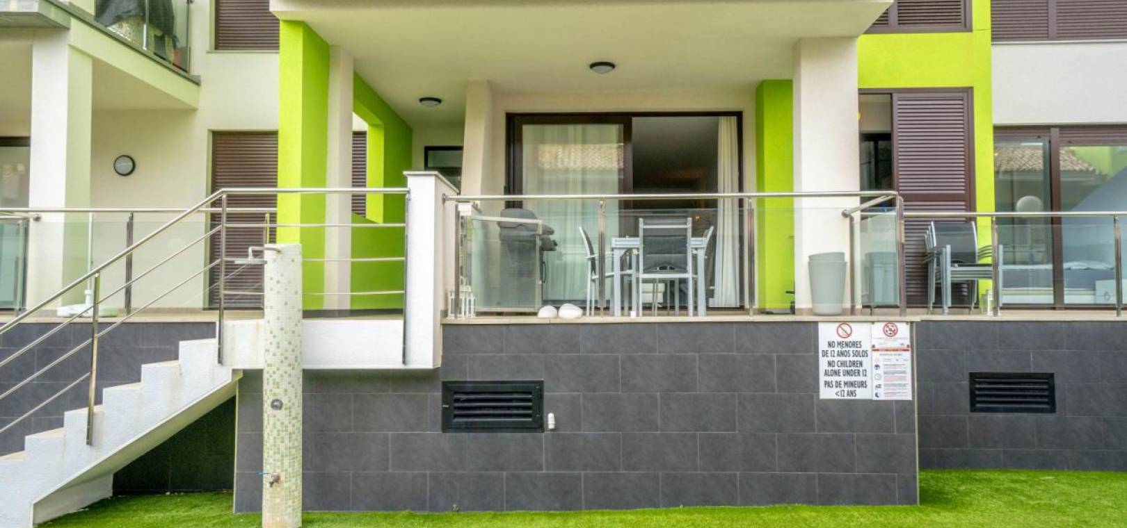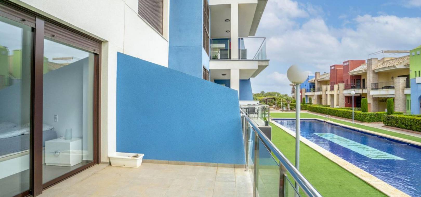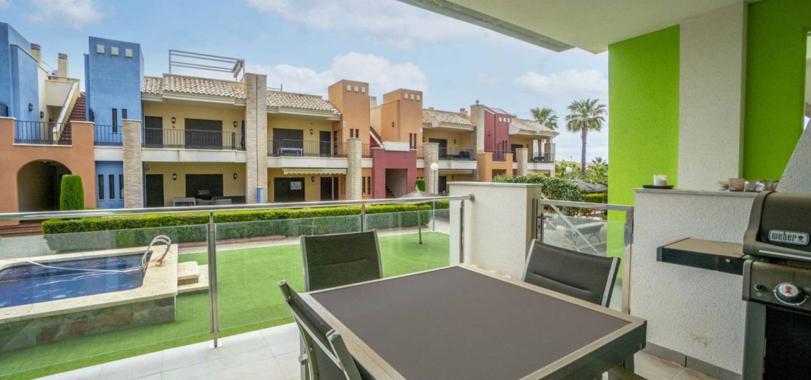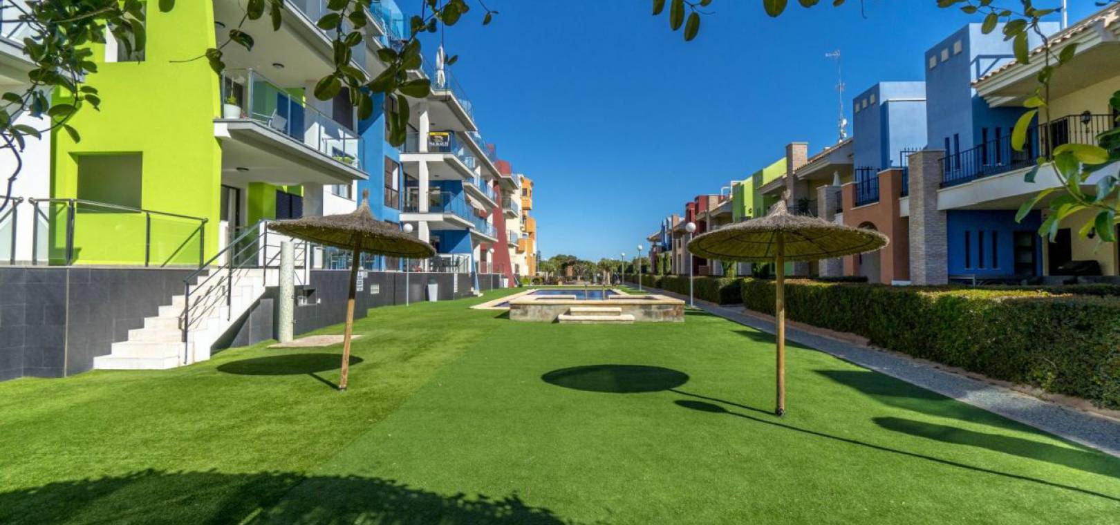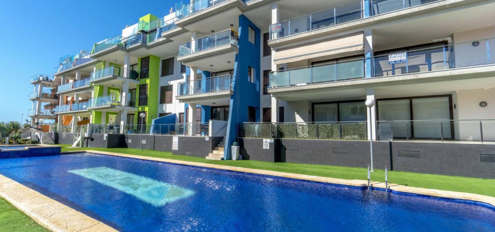 A luxury South East facing 3 bed 2 bath ground floor apartment over looking the communal swimming pool located in Royal Park Green Spa Resort, Lomas de Cabo Roig, Cabo Roig, Costa Blanca. Virtual Viewing Available On This Property!