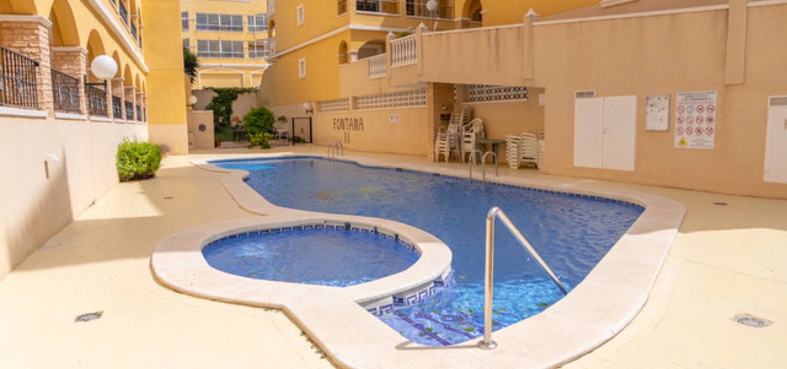 A South West facing 2 bed 1 bath 2nd floor apartment located in Res. Fontana II, Algorfa, Costa Blanca. Virtual Viewing Available On This Property!