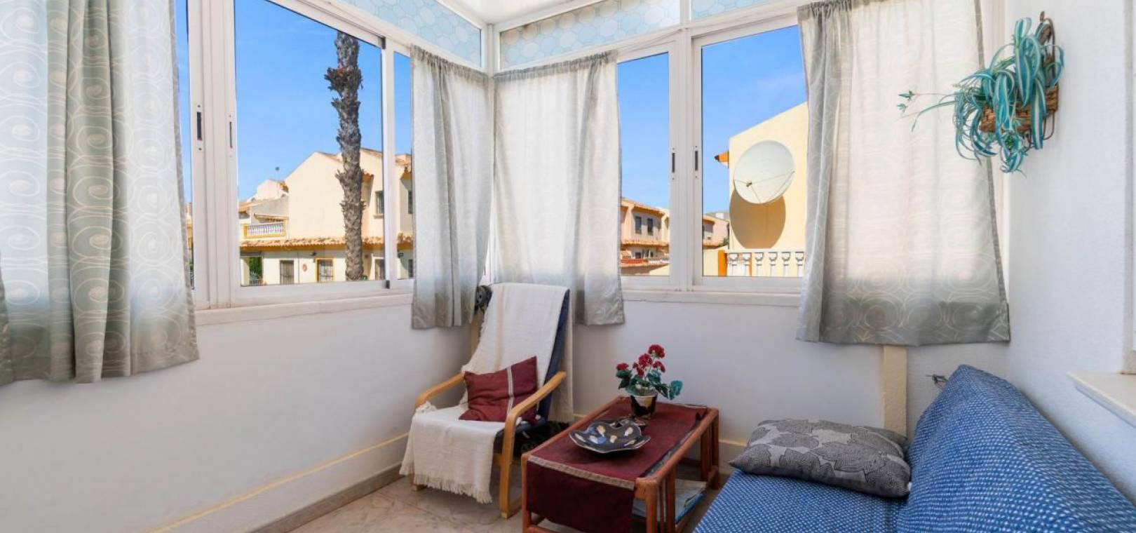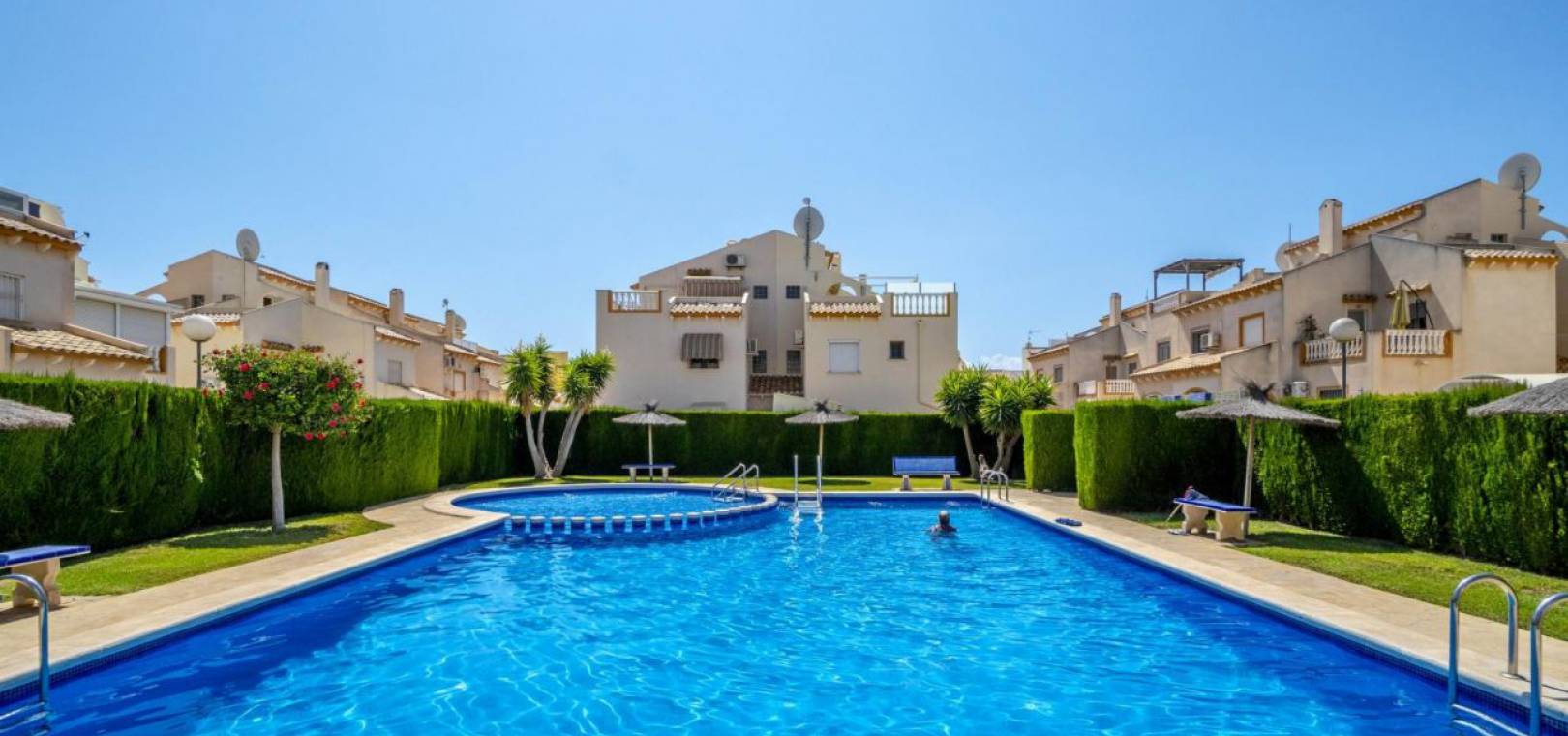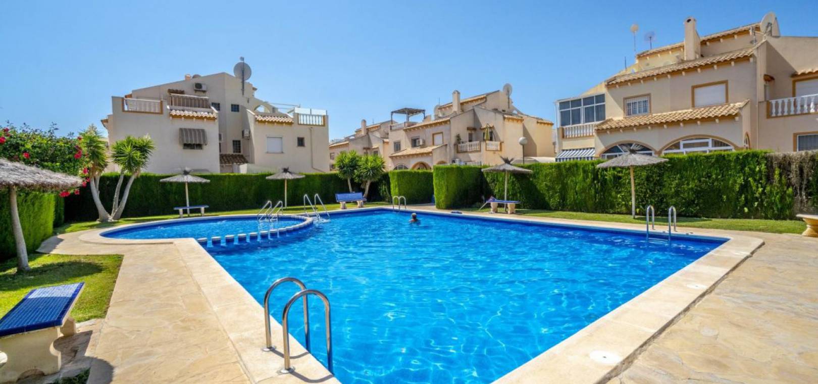 A South West facing 2 bed 2 bath quad house located in Res. Perla del Mar, Playa Flamenca, Costa Blanca. Virtual Viewing Available On This Property!