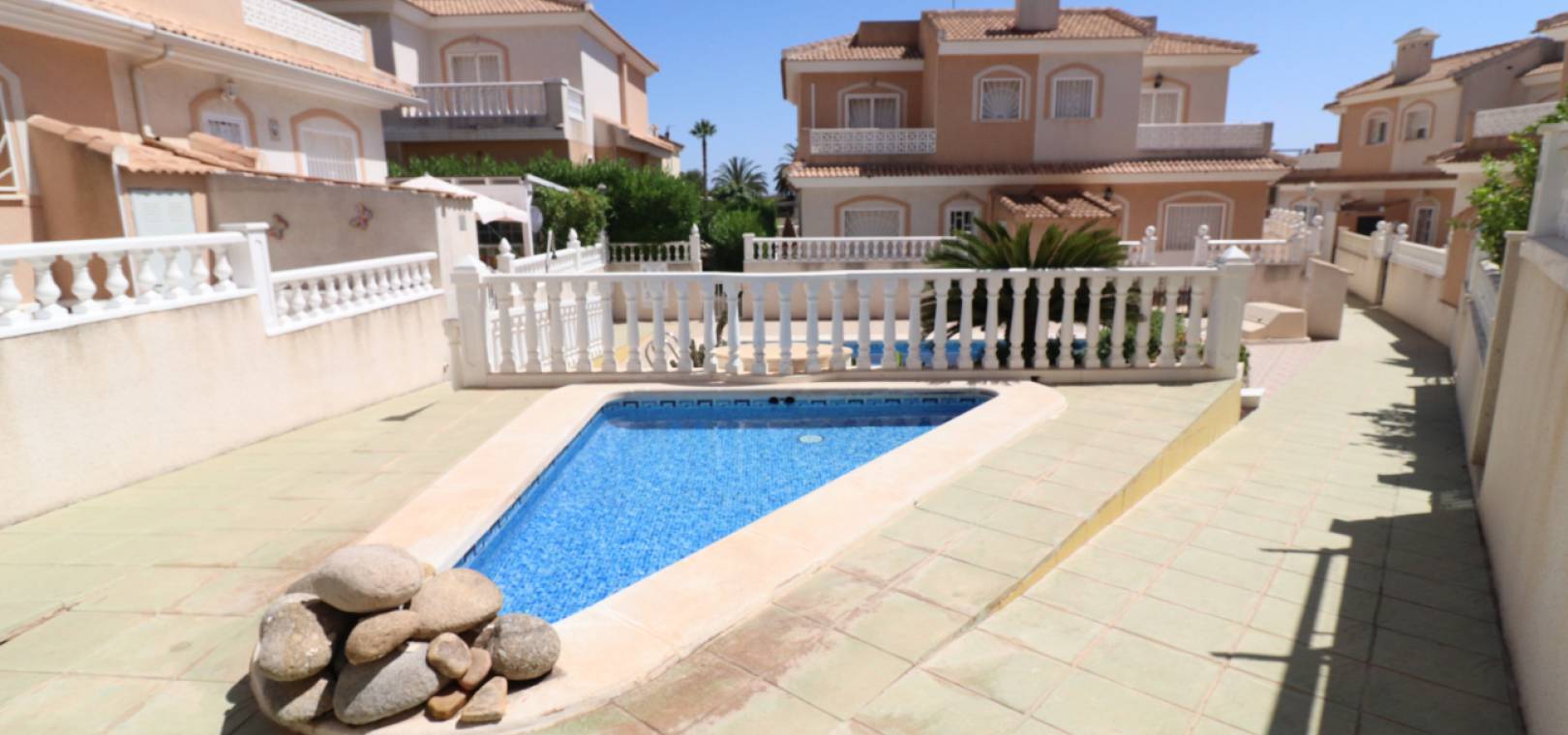A 2 bed 2 bath semi detached house backing on to the communal swimming pool located in Monte Azul, Benijofar, Costa Blanca. Virtual Viewing Available On This Property!