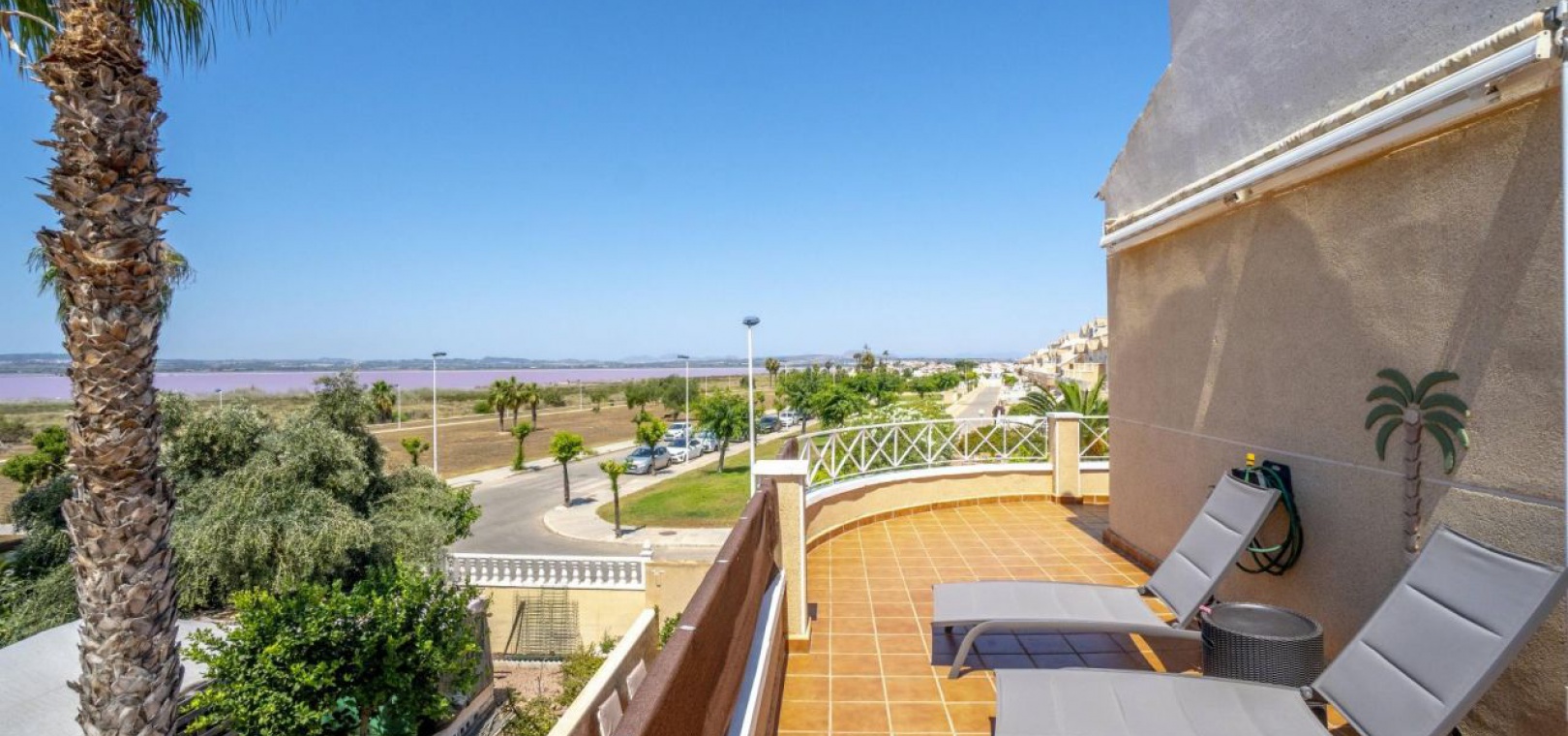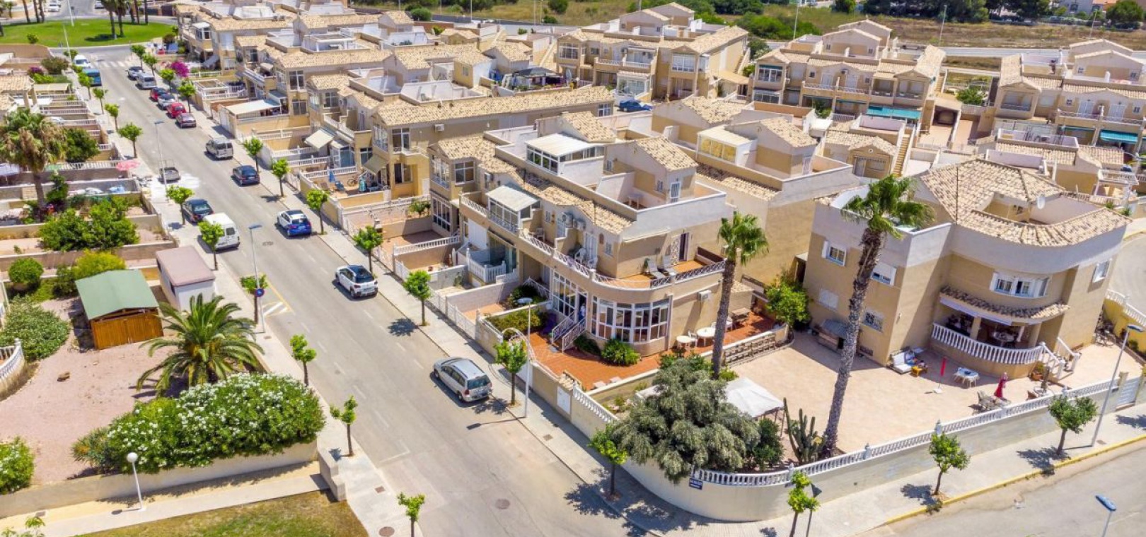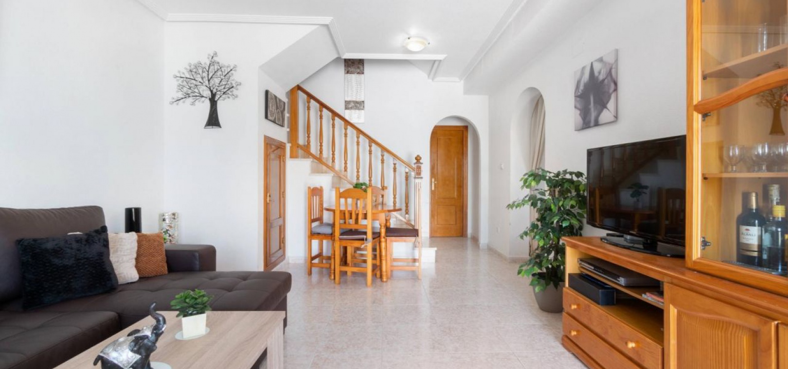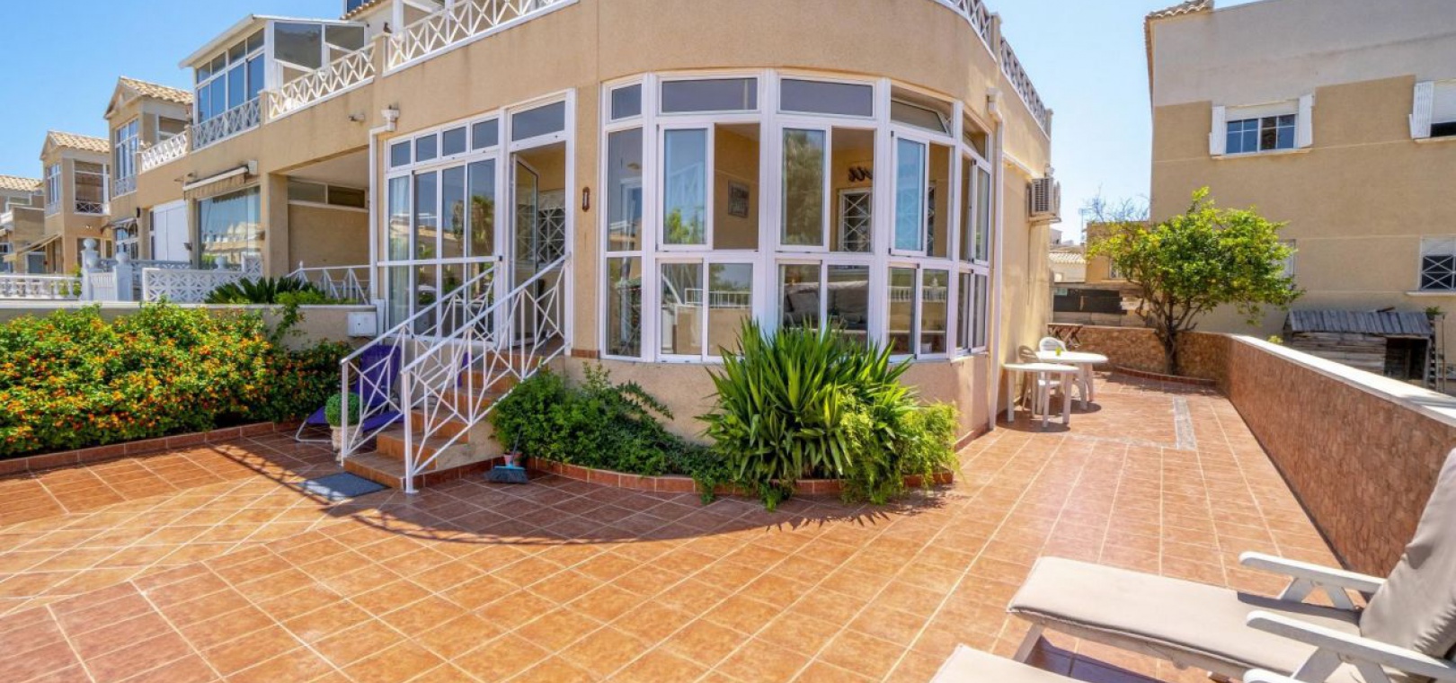 A West facing 3 bed 1.5 bath corner townhouse with a private rooftop solarium located in Baños de Europa, La Torreta, Torrevieja, Costa Blanca.