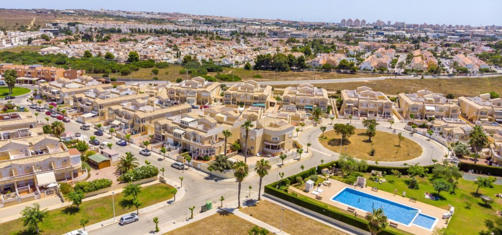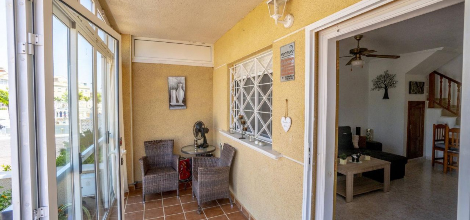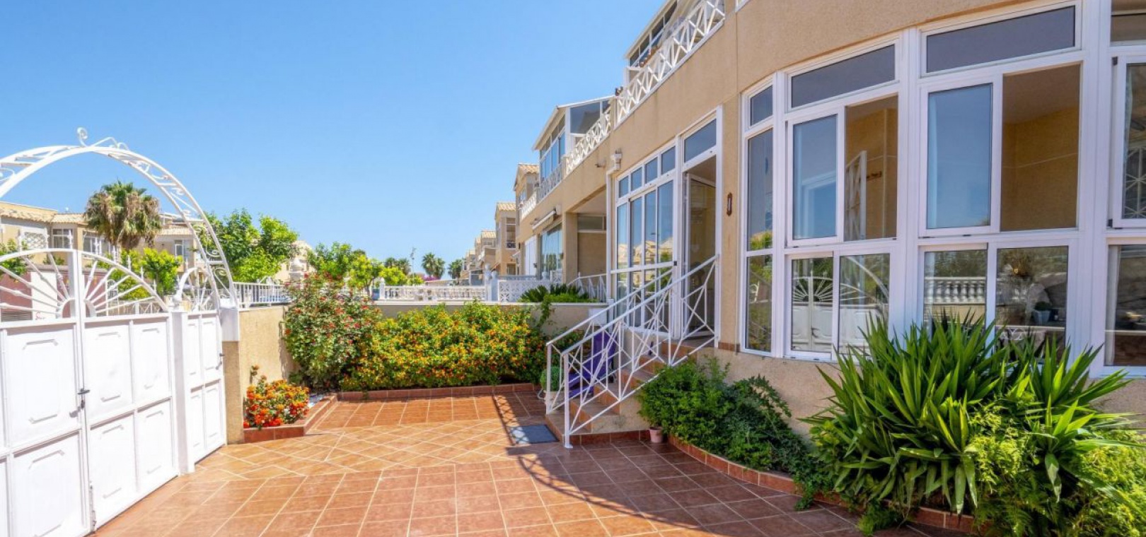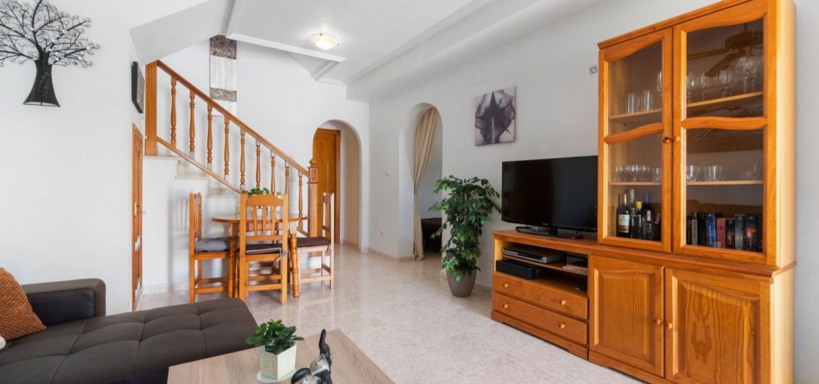 A West facing 3 bed 1.5 bath corner townhouse with a private rooftop solarium located in Baños de Europa, La Torreta, Torrevieja, Costa Blanca.