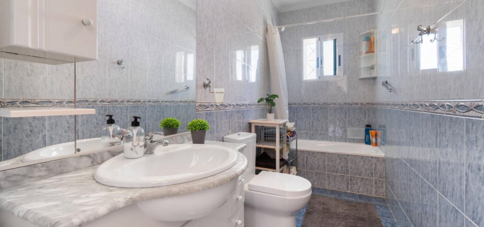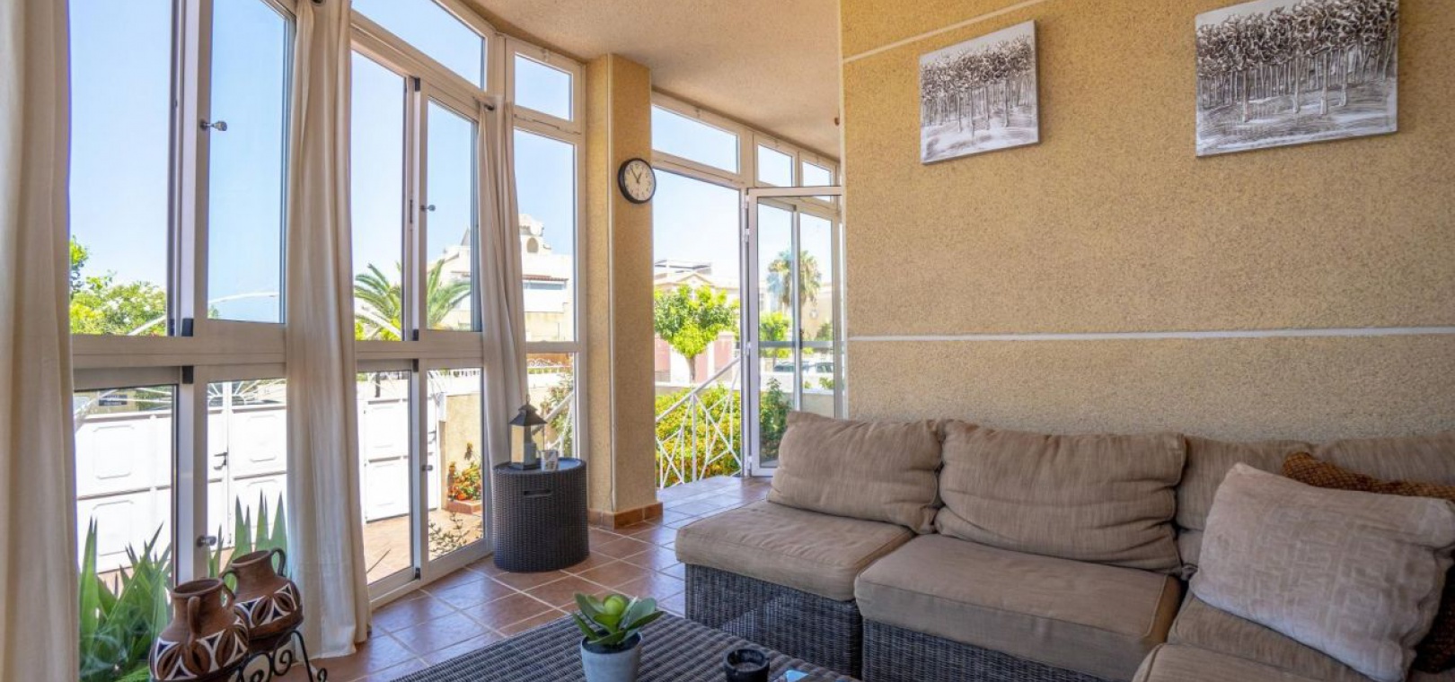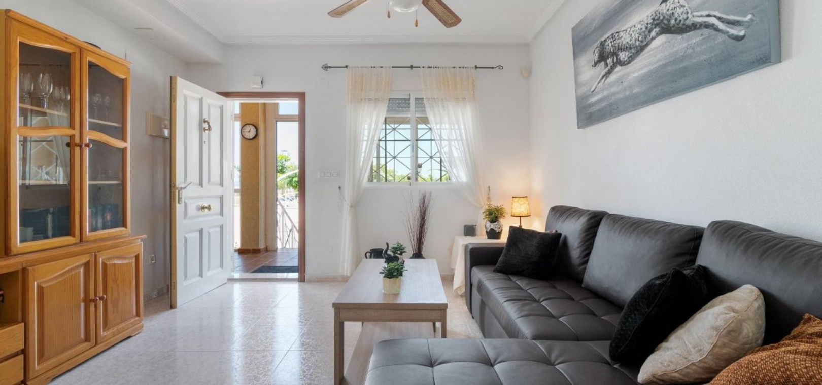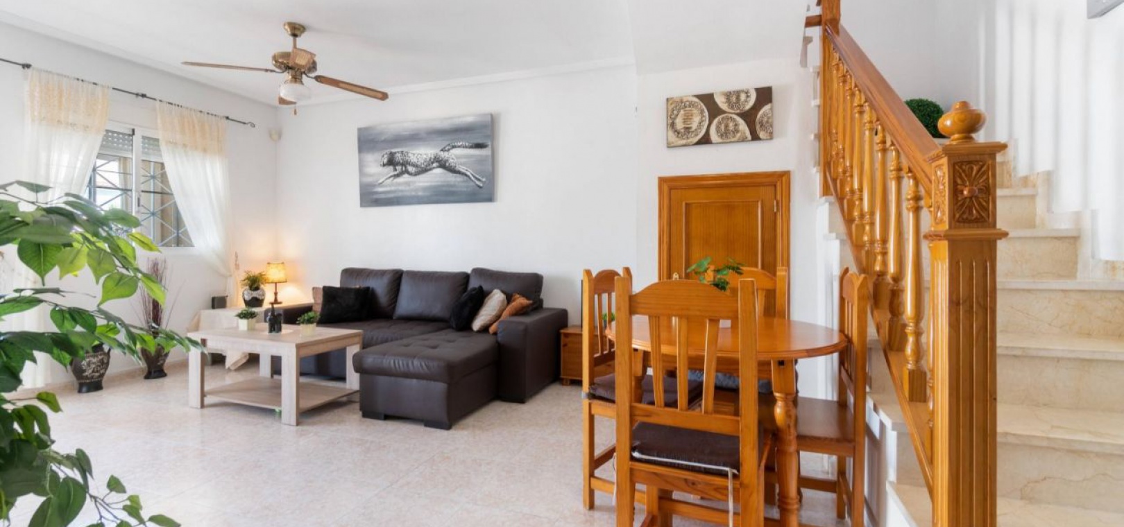 A West facing 3 bed 1.5 bath corner townhouse with a private rooftop solarium located in Baños de Europa, La Torreta, Torrevieja, Costa Blanca.