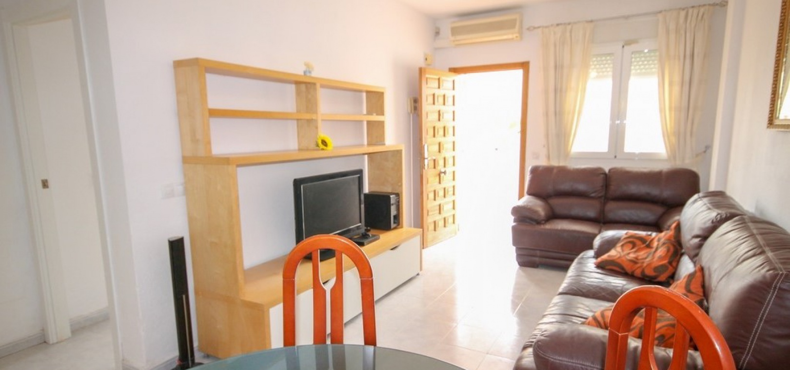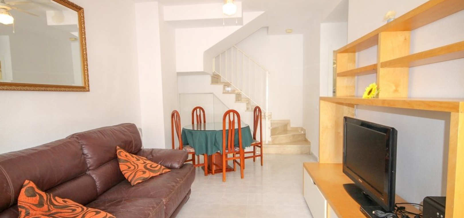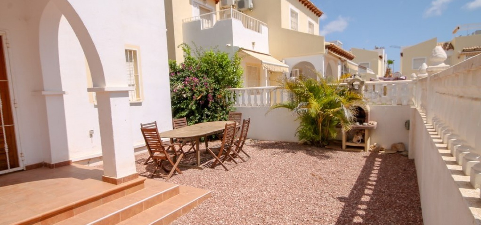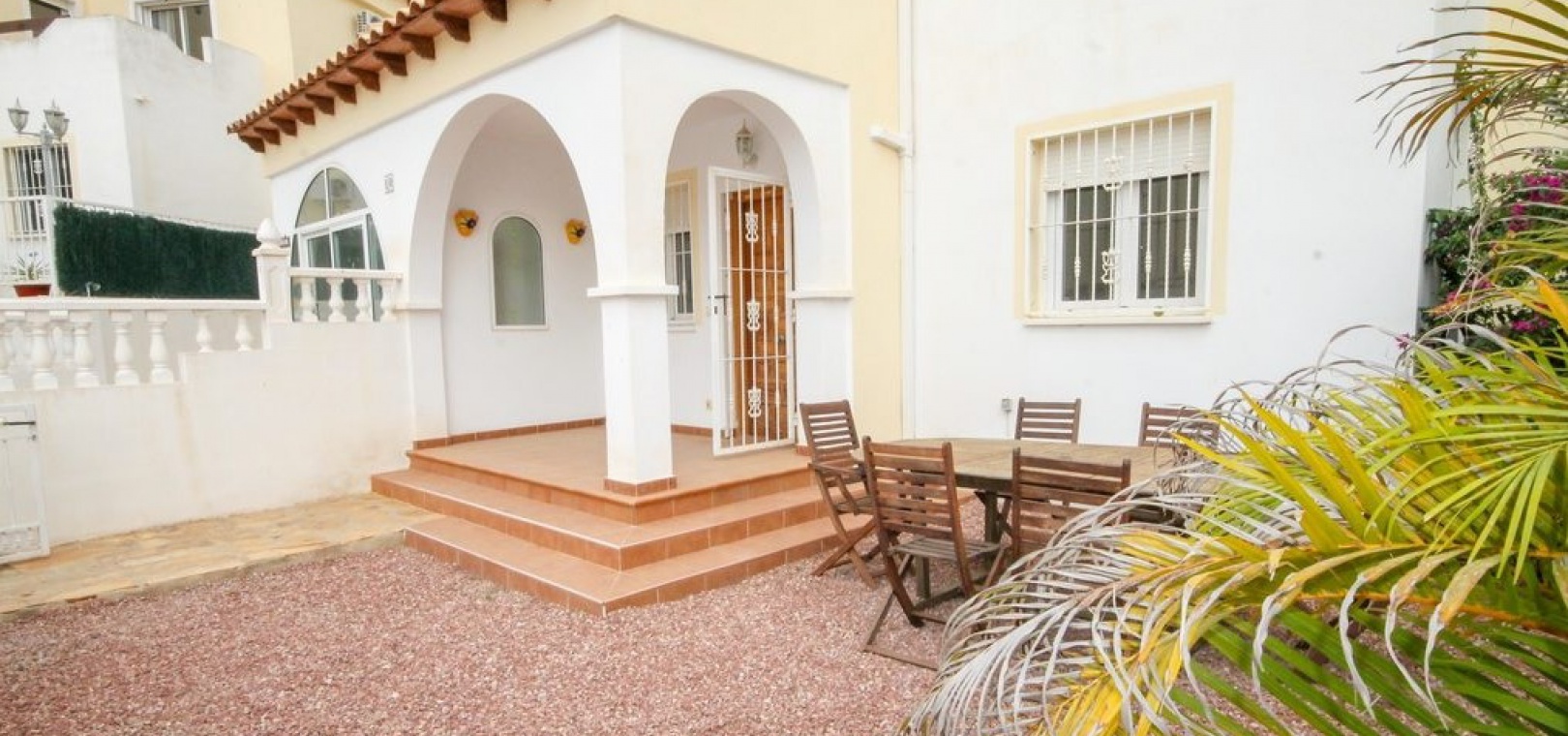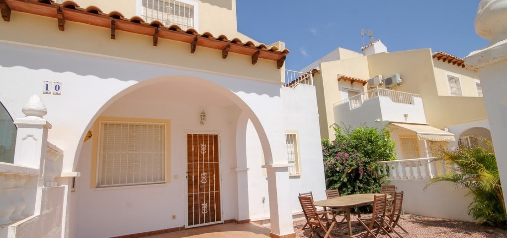 A South facing 3 bed 2 bath quad house with a private rooftop solarium with views to the communal swimming pool located in Panorama Golf, Villamartin, Costa Blanca.