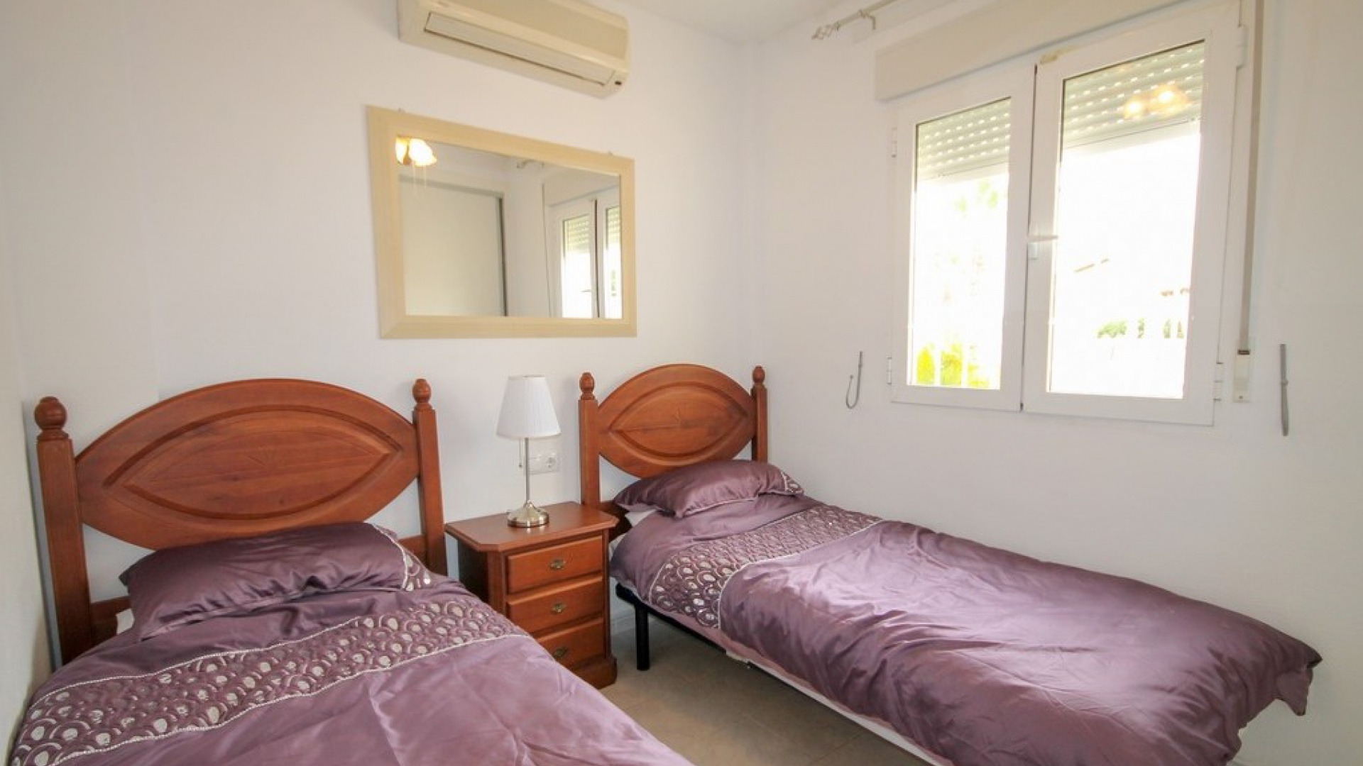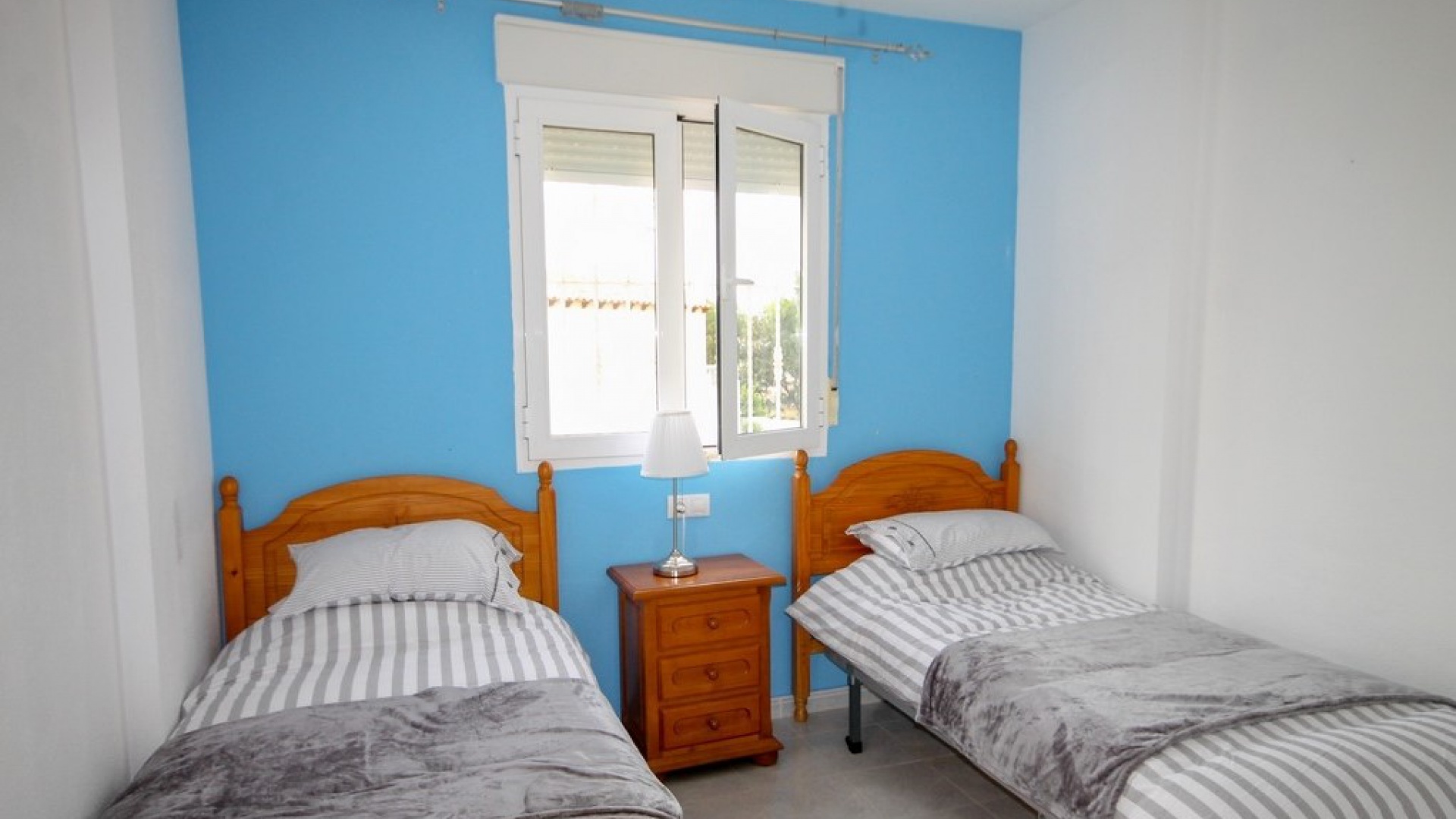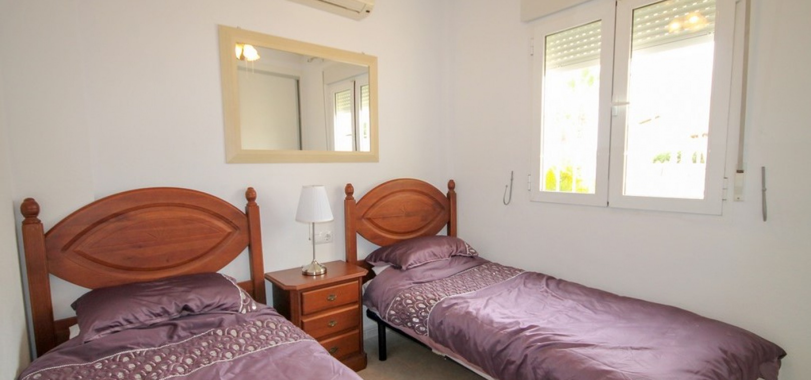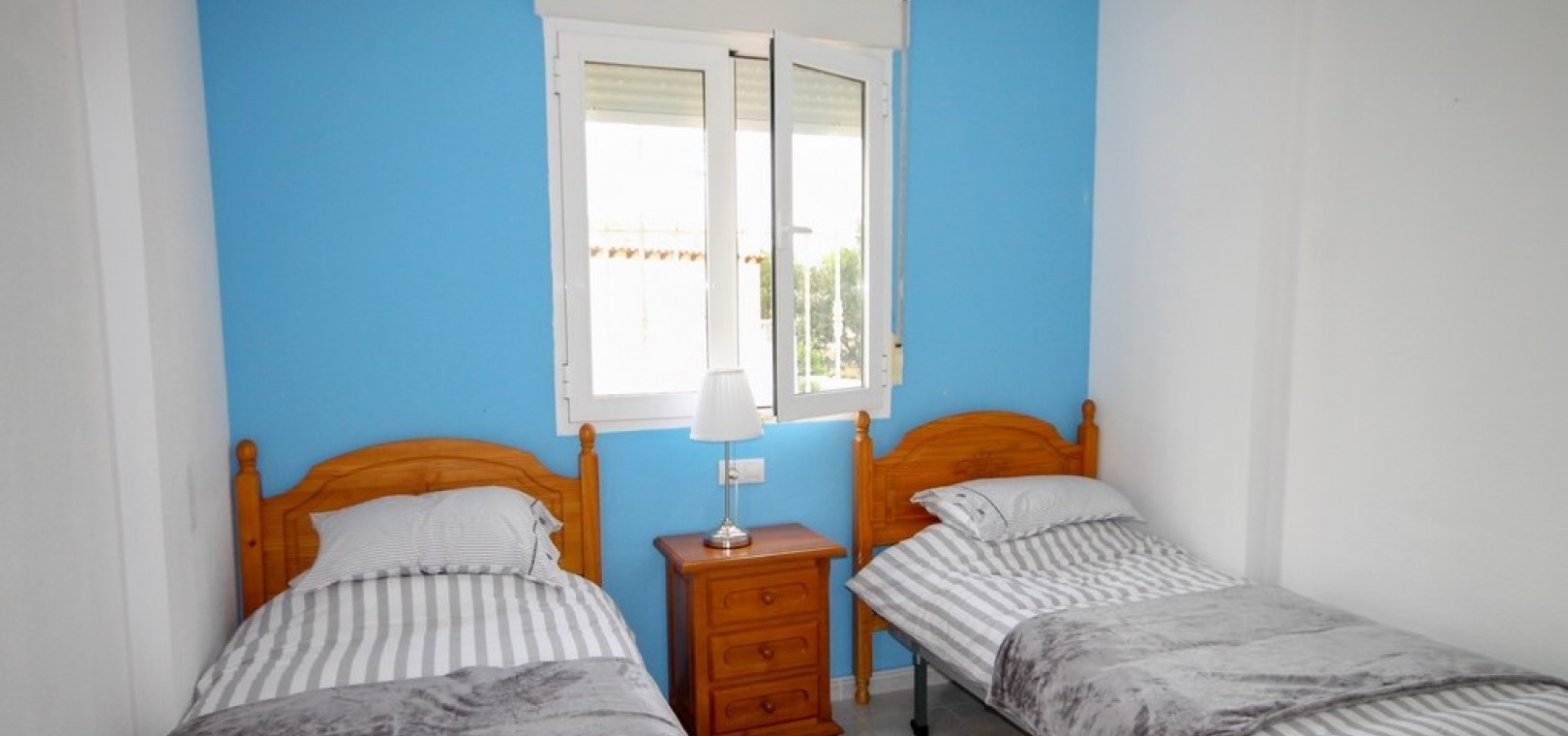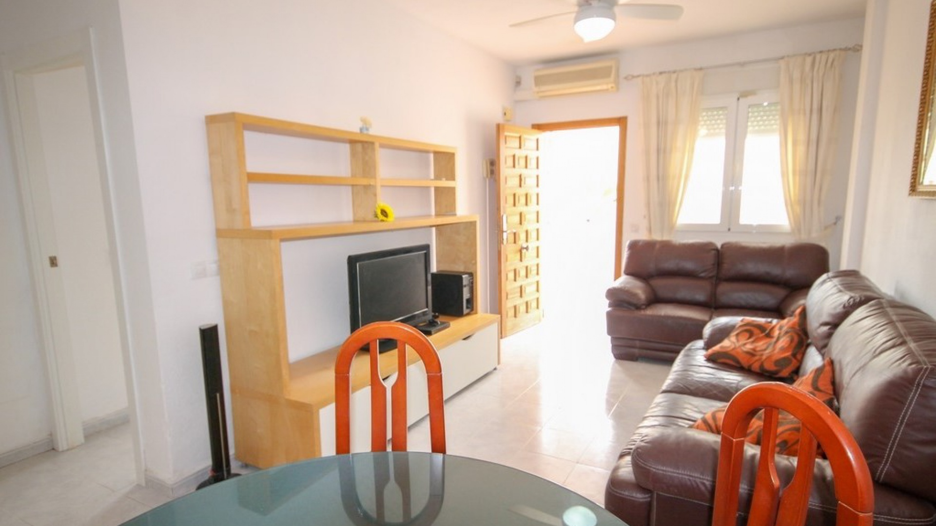 A South facing 3 bed 2 bath quad house with a private rooftop solarium with views to the communal swimming pool located in Panorama Golf, Villamartin, Costa Blanca.
