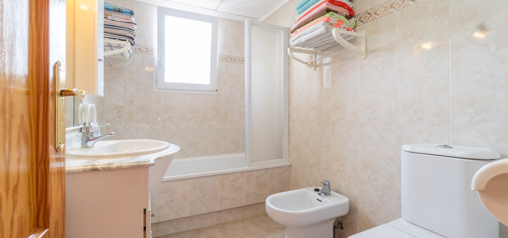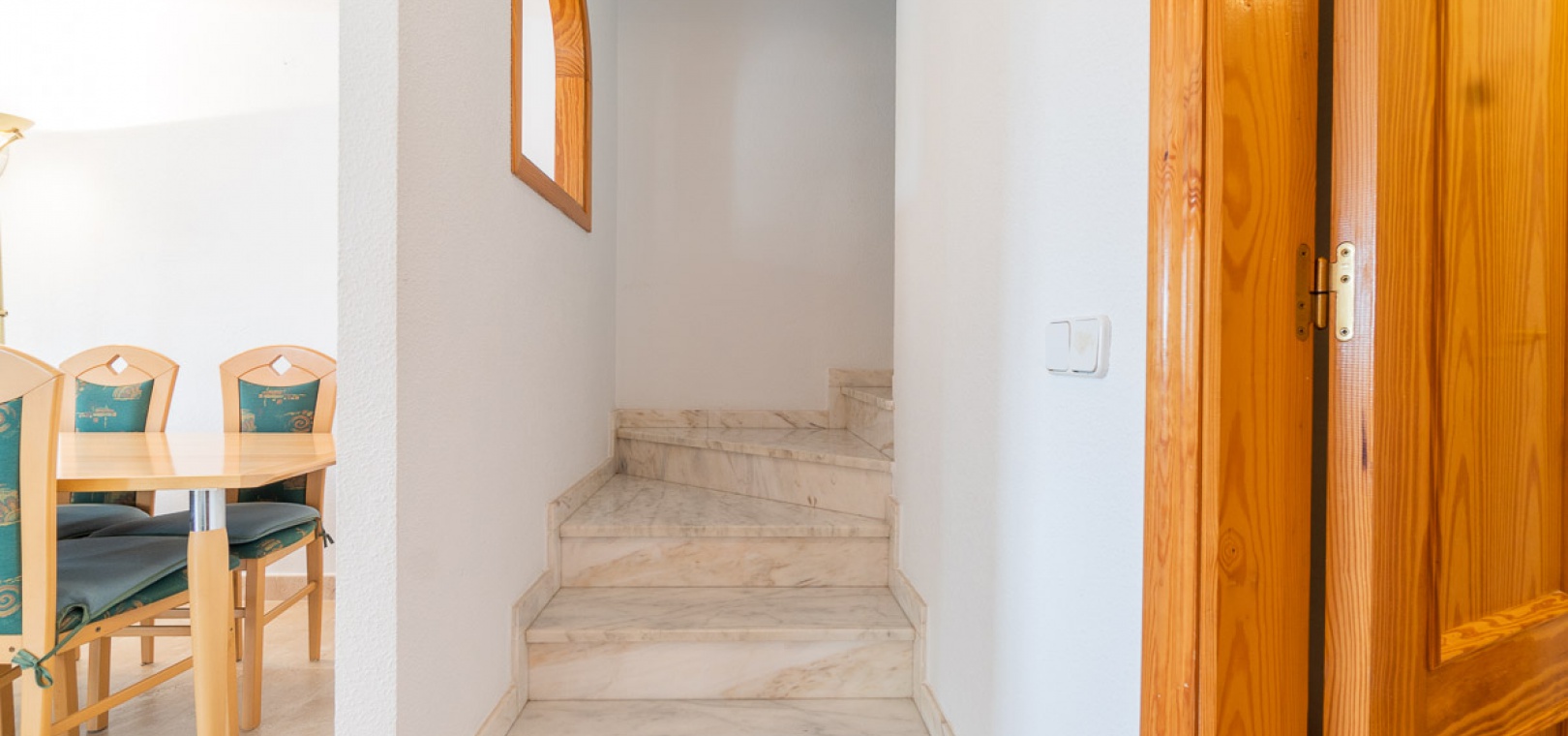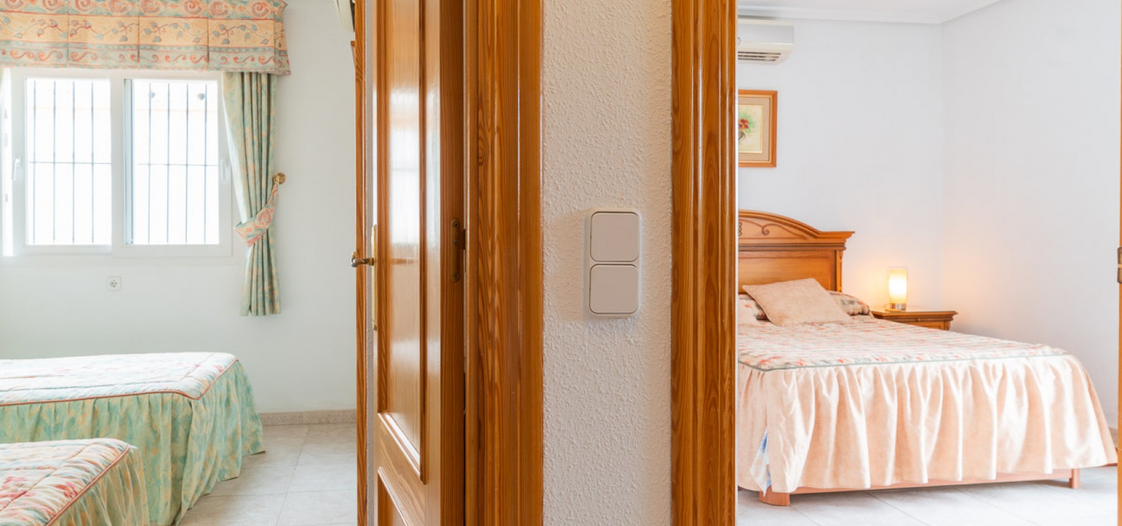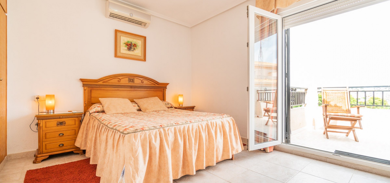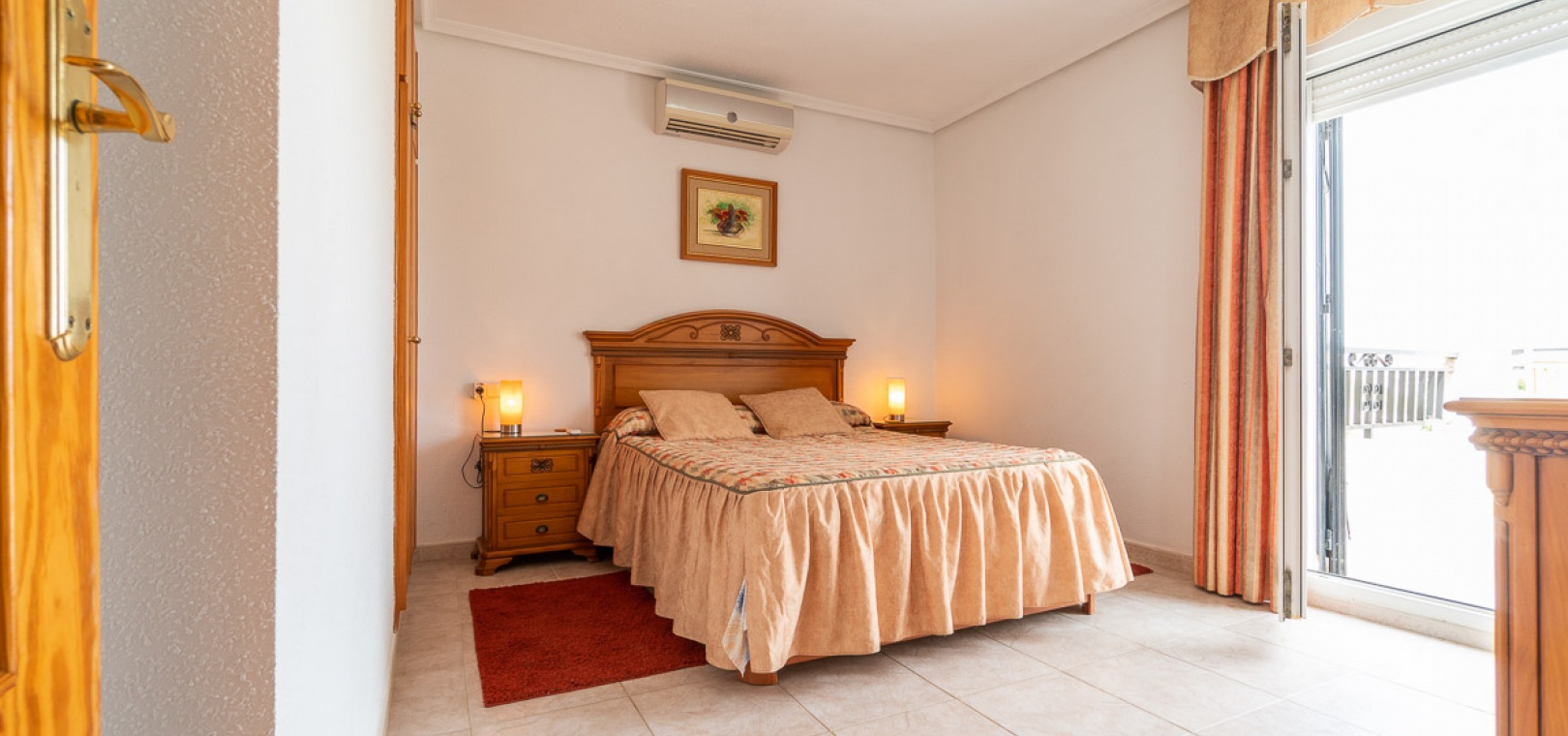 Upstairs there is a the main bedroom with a private balcony, hot and cold A/C & fitted wardrobes, 1 x double bedroom with hot and cold A/C & fitted wardrobes, 1 x family bathroom.