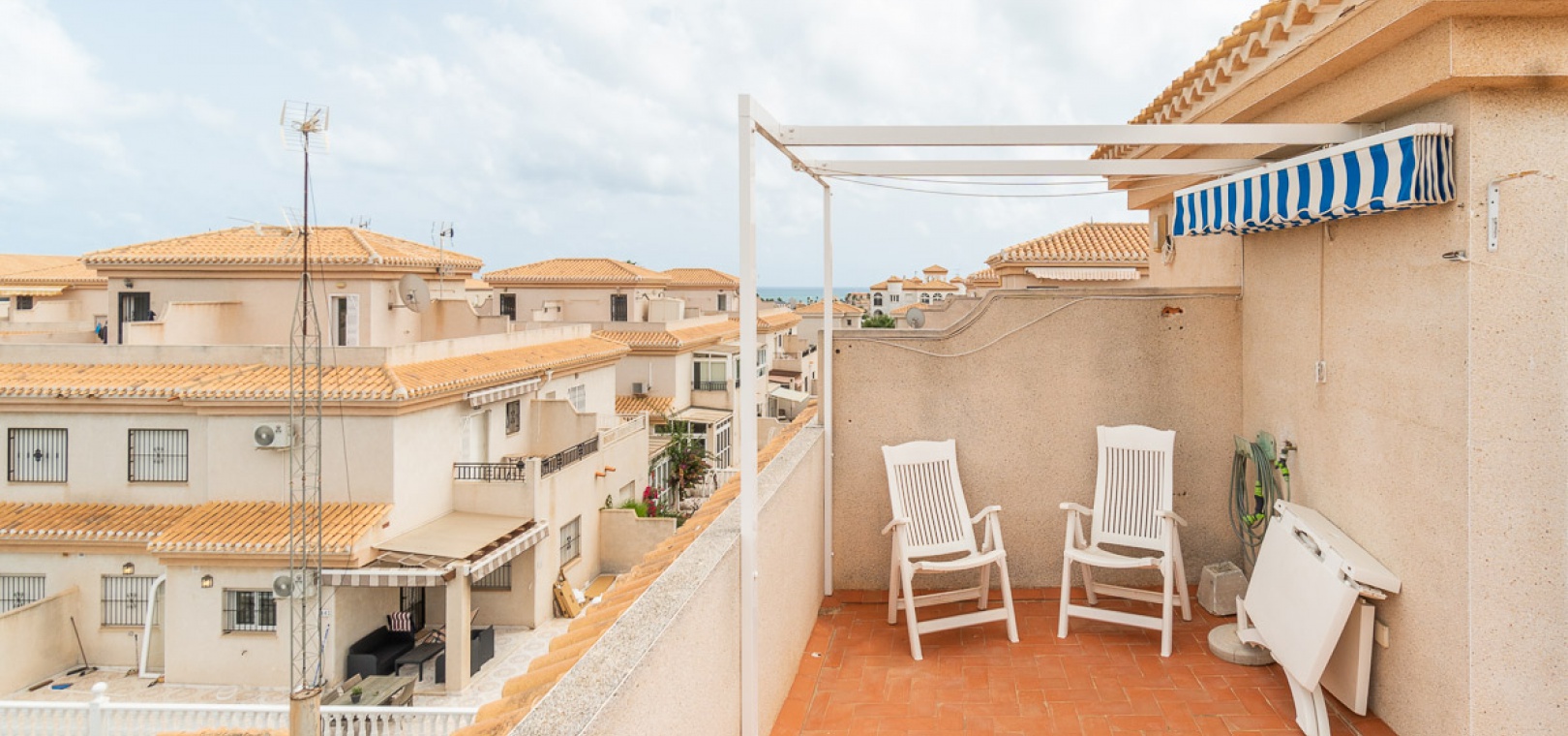 A 3 bed 1.5 bath quad house with private rooftop solarium located in El Cid III, Playa Flamenca, Costa Blanca.
