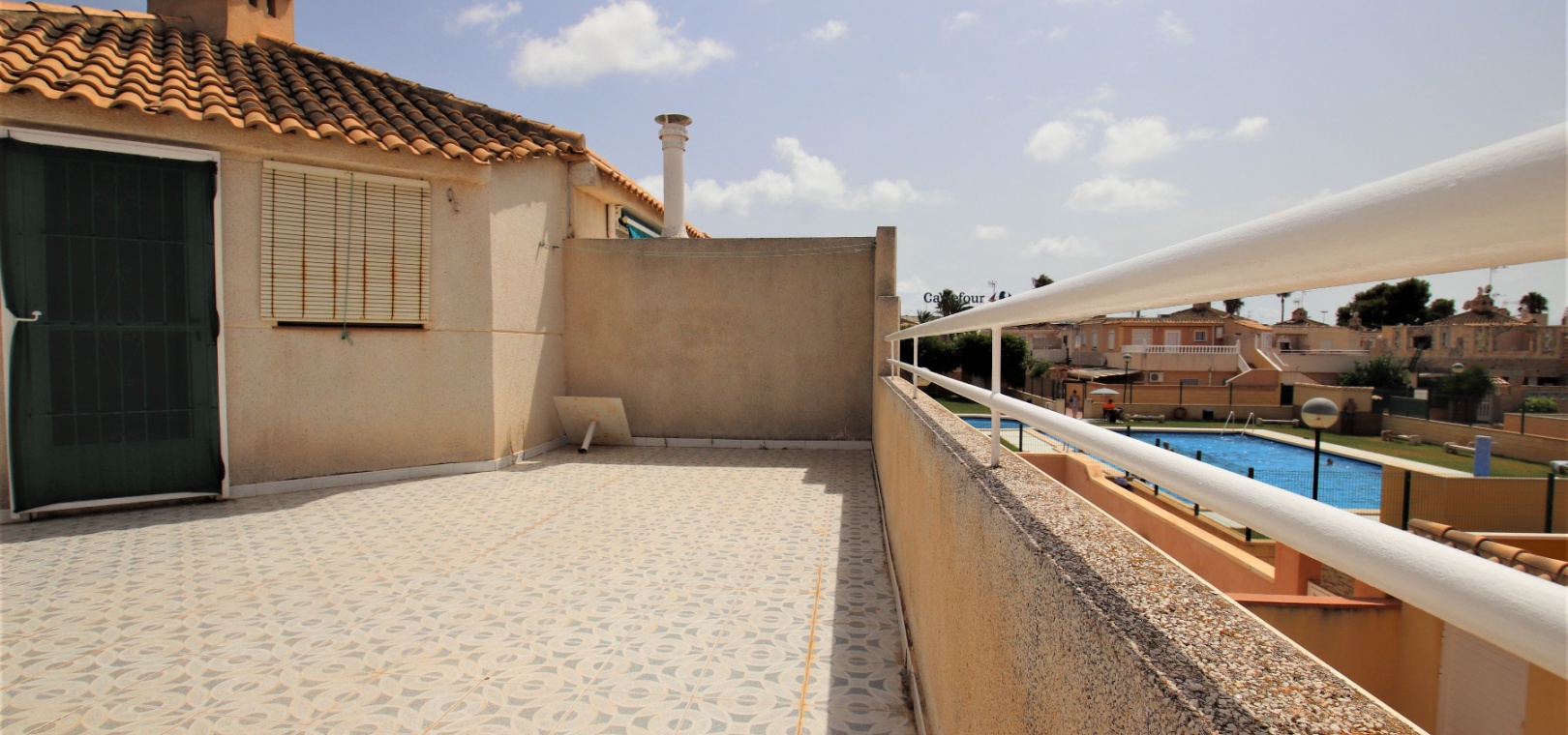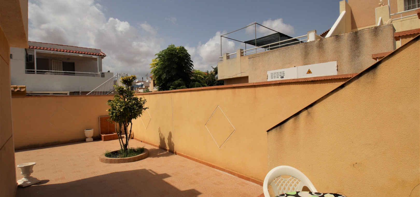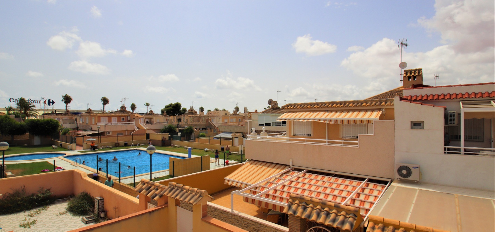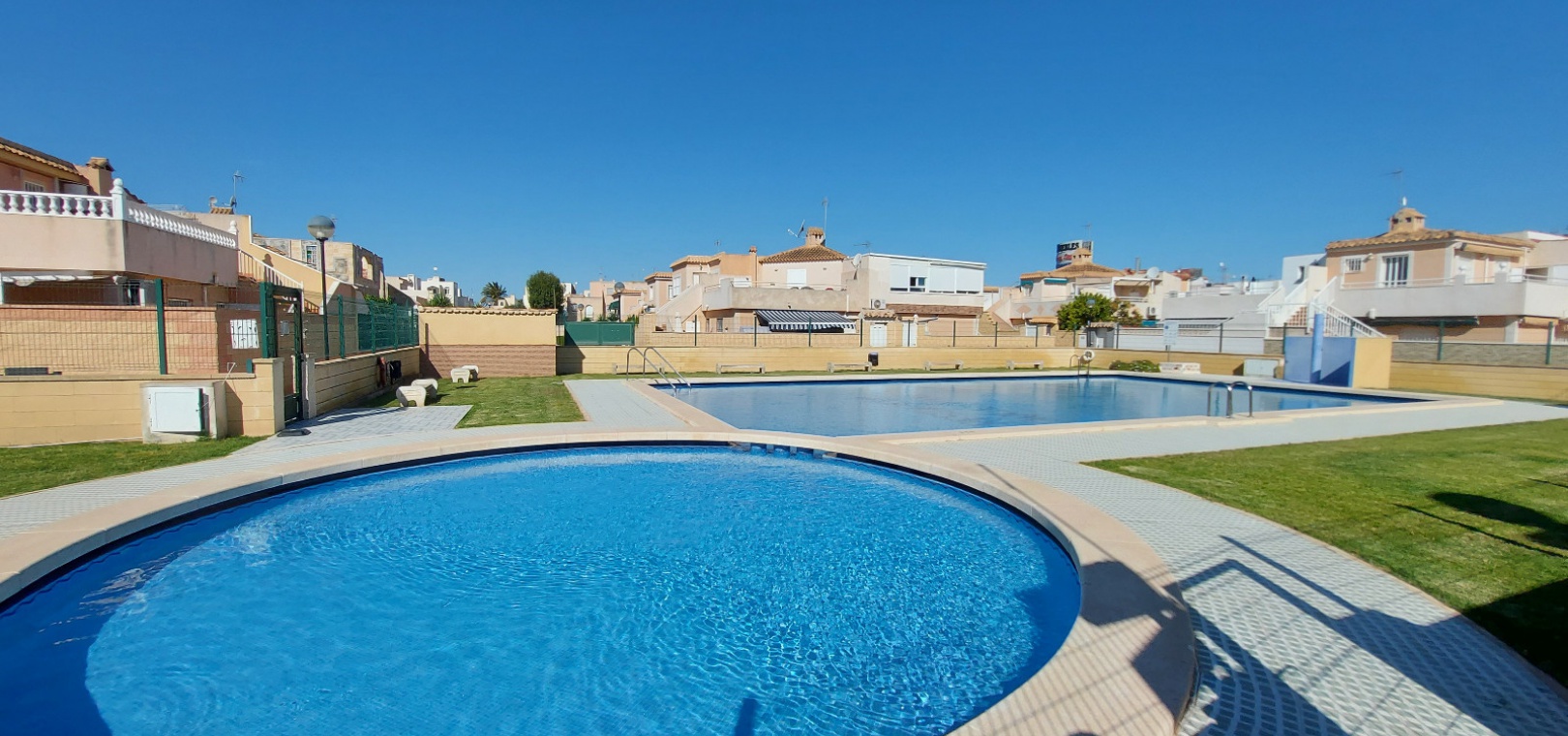 A 3 bed 1 bath quad house with a private rooftop solarium located in Res. Aquapark,Torrevieja, Costa Blanca.
