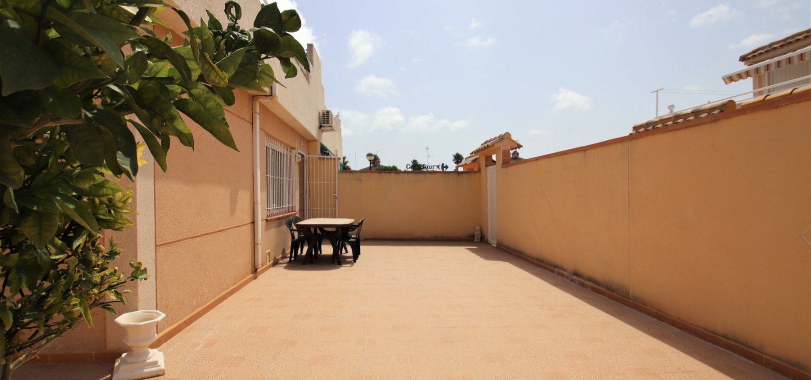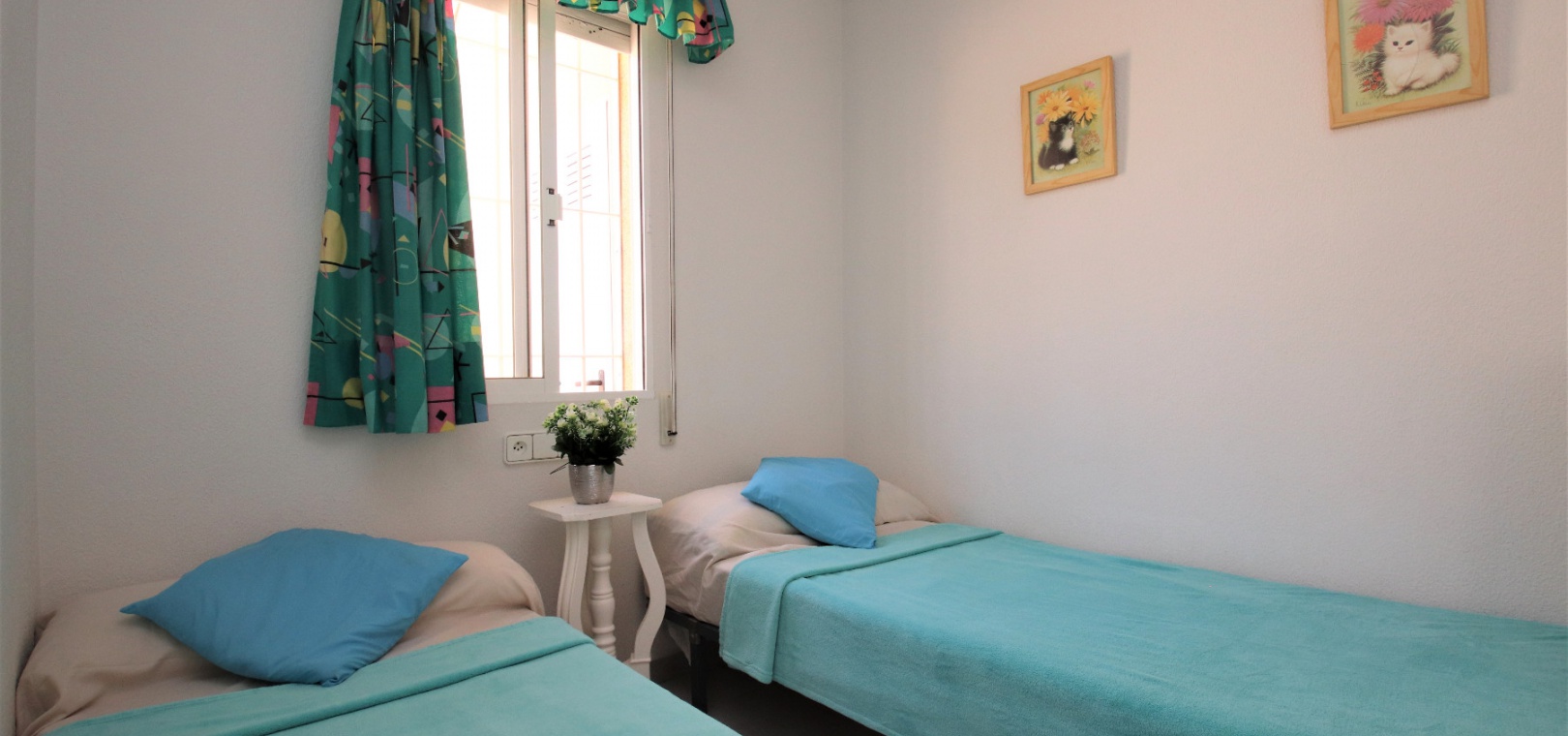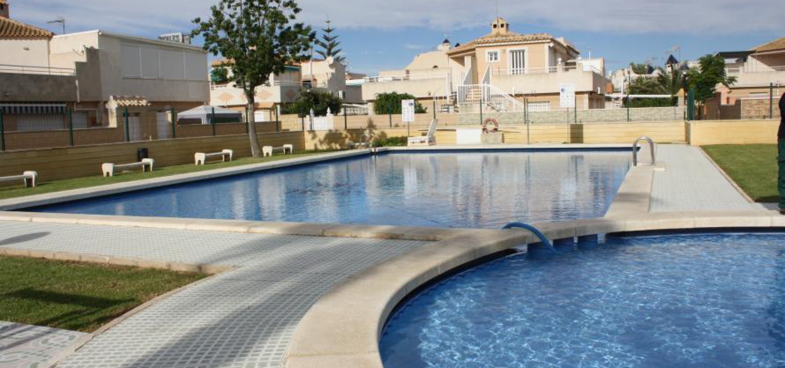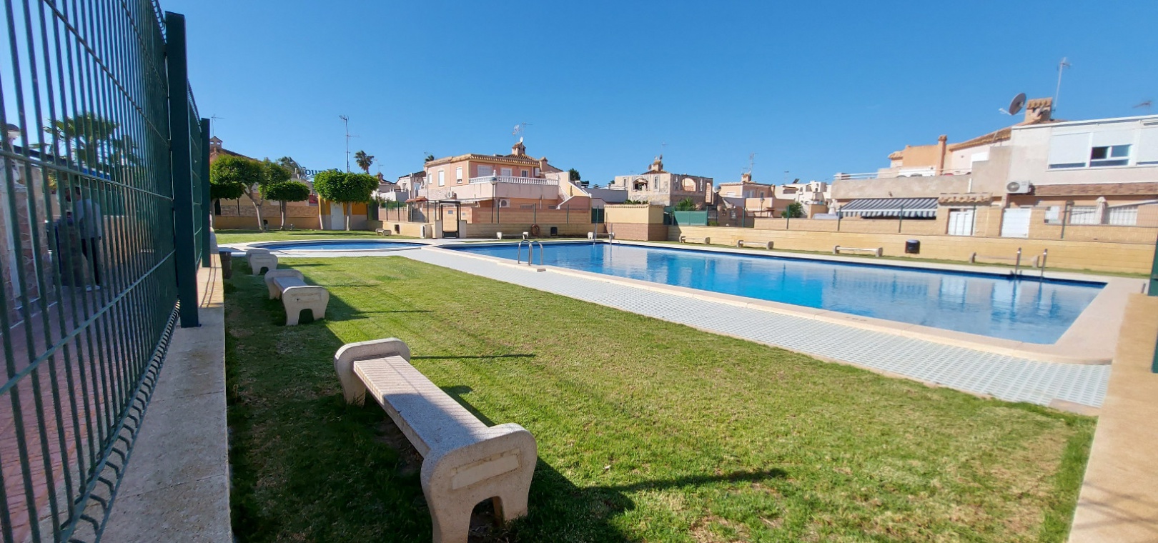 A 3 bed 1 bath quad house with a private rooftop solarium located in Res. Aquapark,Torrevieja, Costa Blanca.