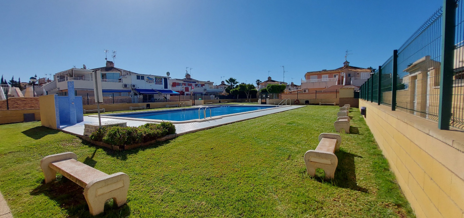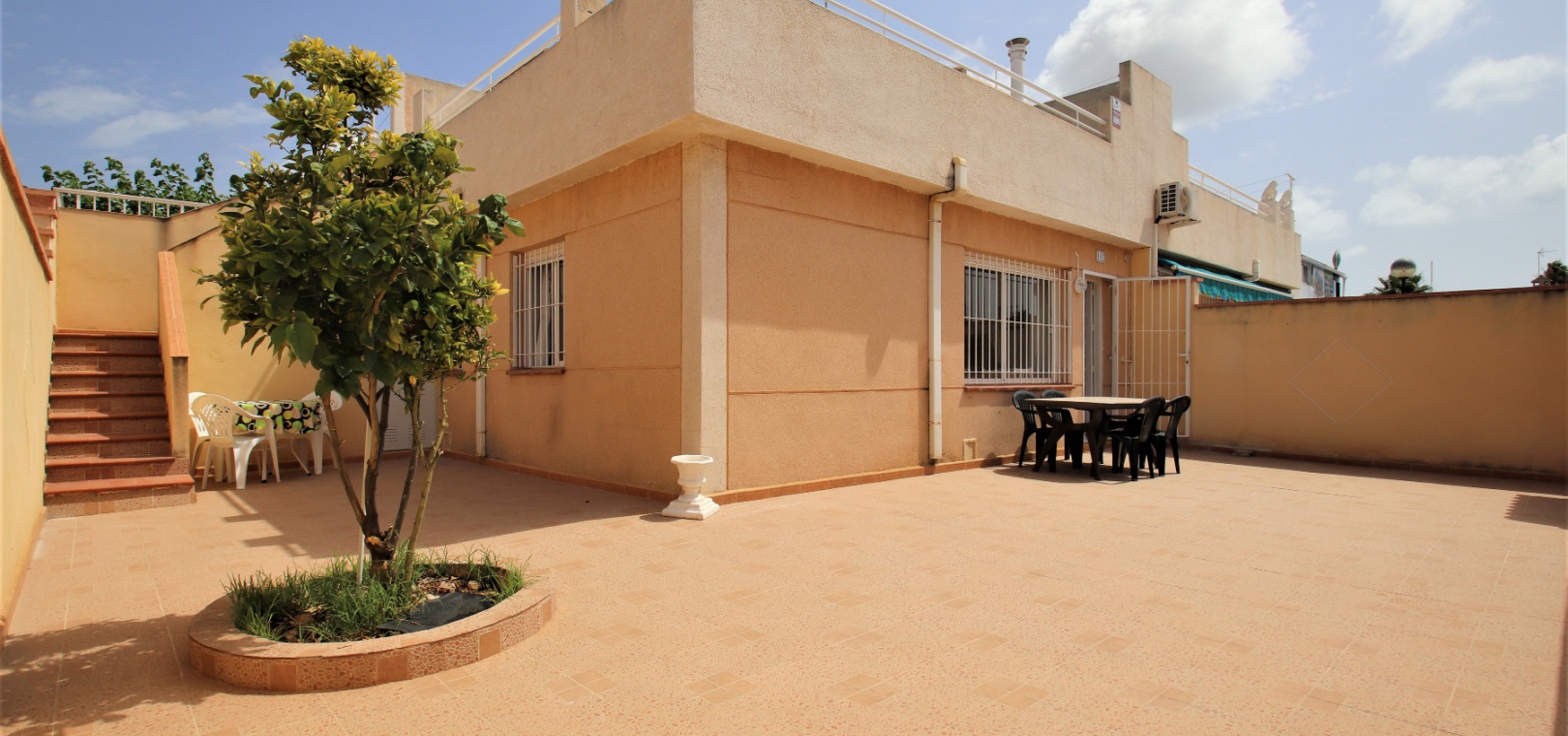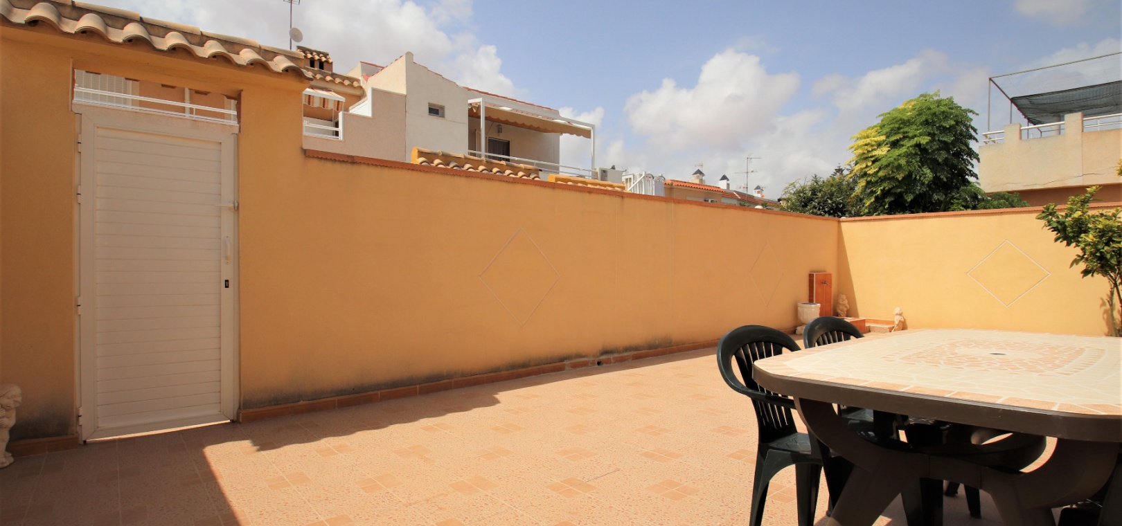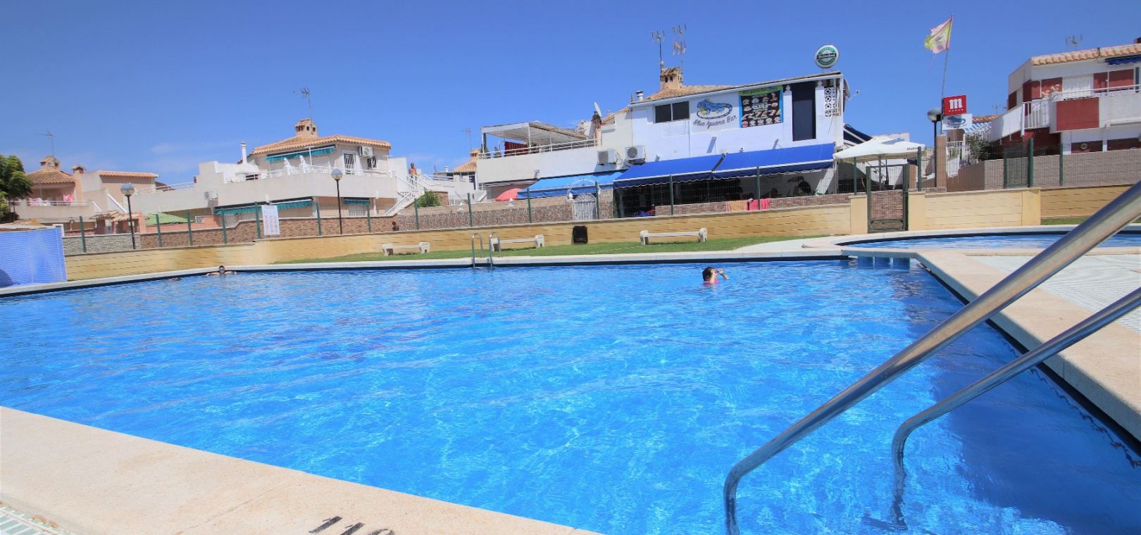 A 3 bed 1 bath quad house with a private rooftop solarium located in Res. Aquapark,Torrevieja, Costa Blanca.