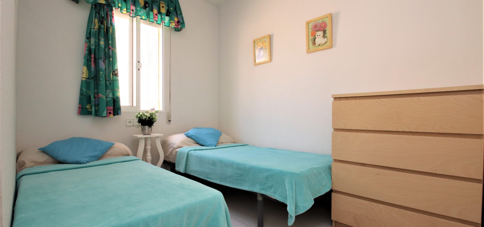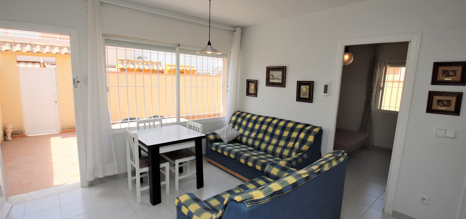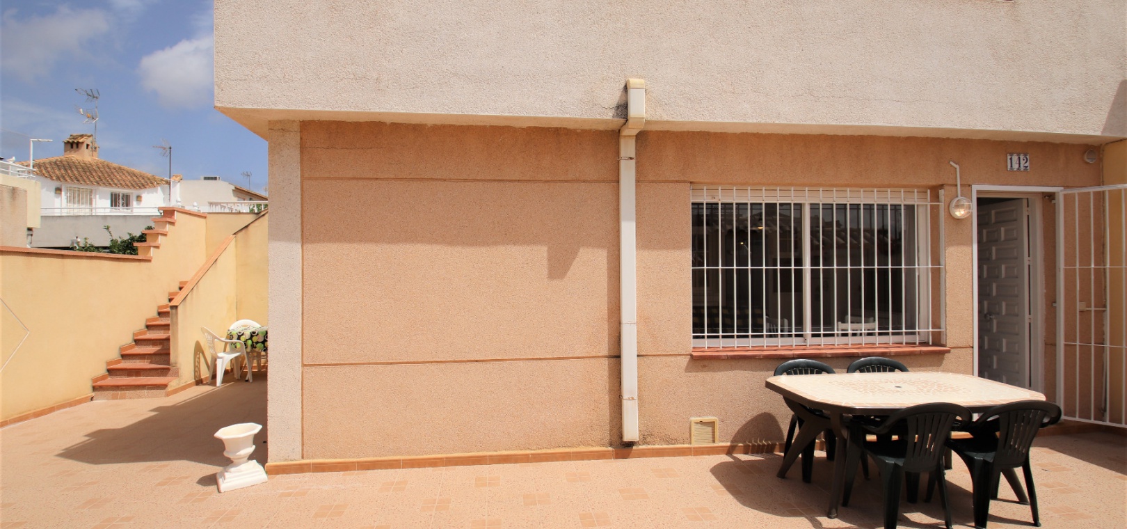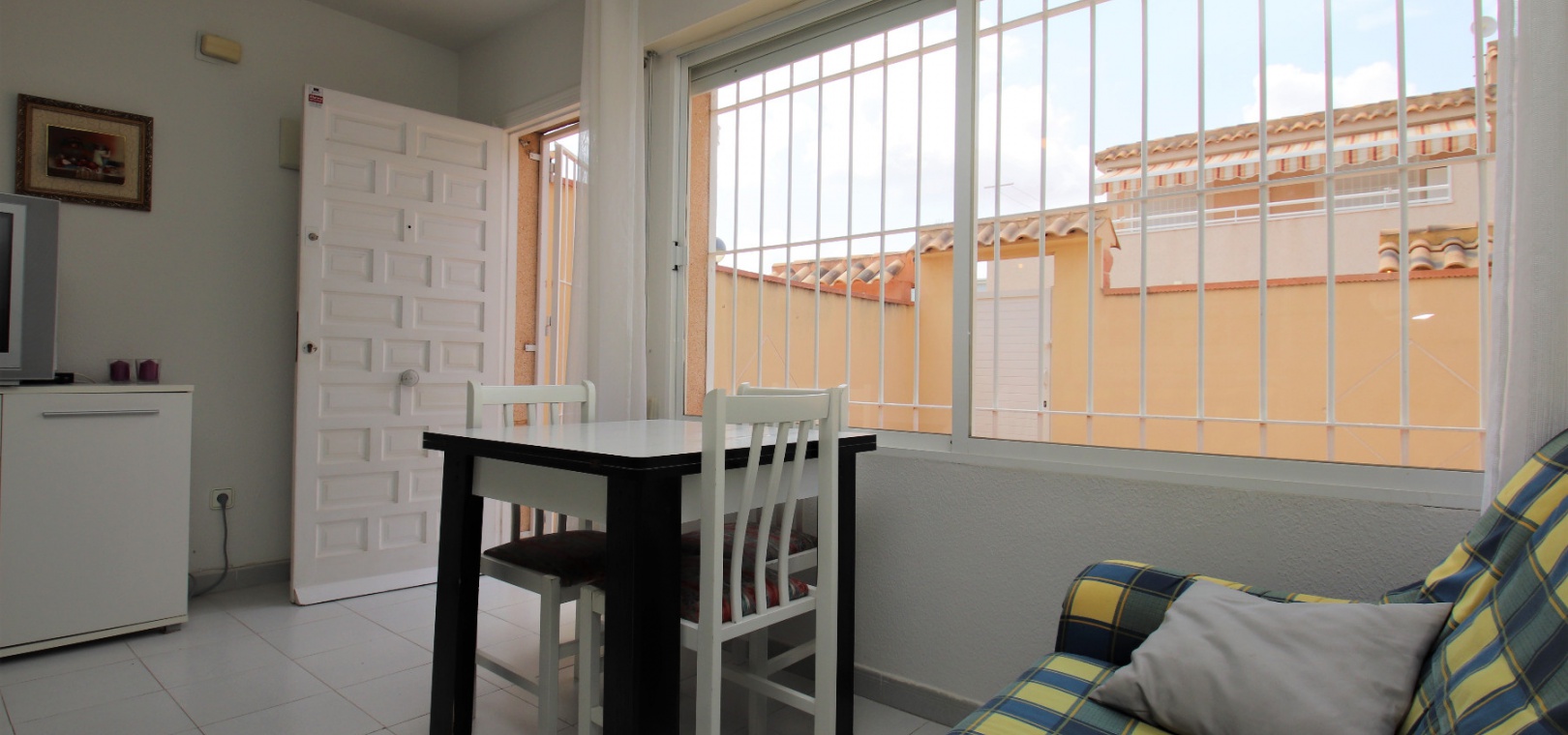 A 3 bed 1 bath quad house with a private rooftop solarium located in Res. Aquapark,Torrevieja, Costa Blanca.