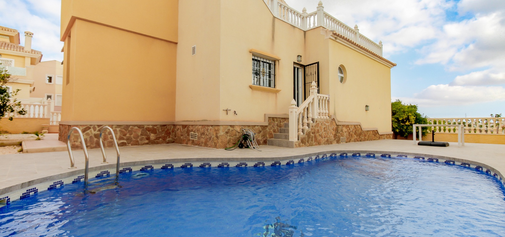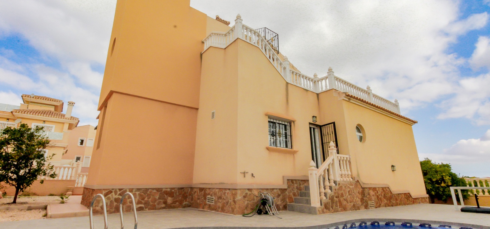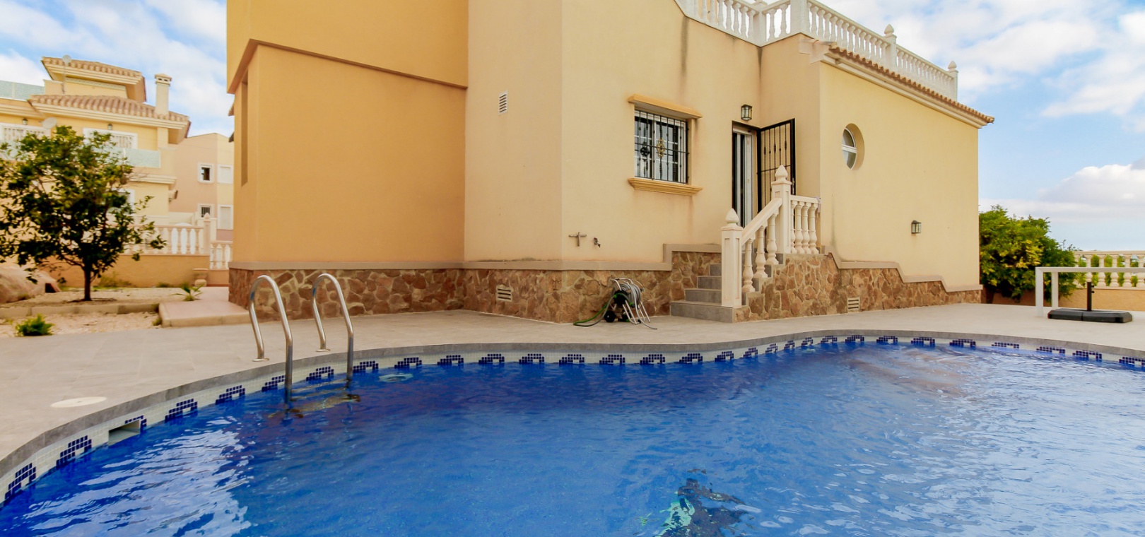 A 3 bed 2 bath detached villa on a large 350m2 corner plot located in El Galan, Villamartin, Costa Blanca.