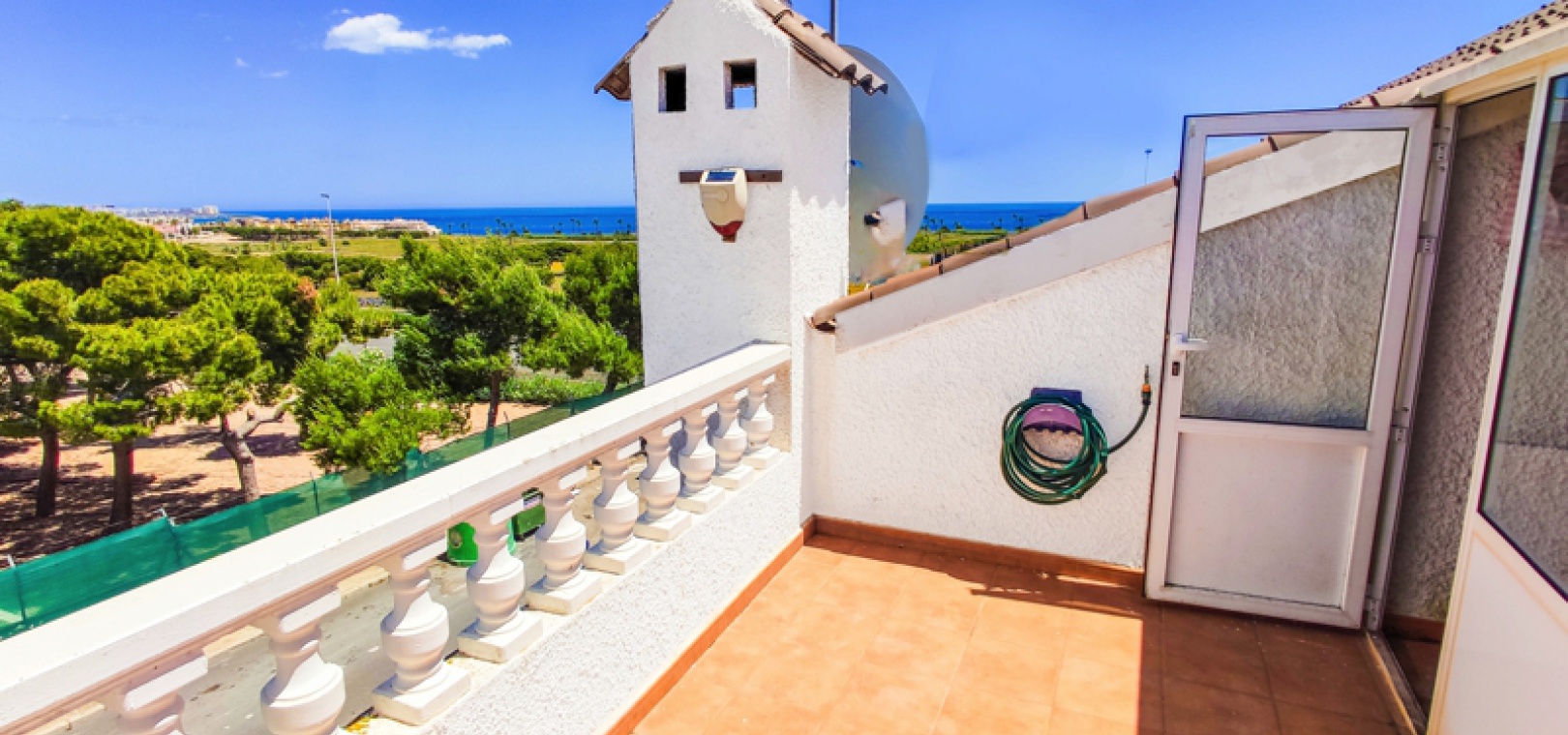 On the 1st floor there are 2 x double bedrooms with fitted wardrobes and the main bedroom has a sun balcony with sea views, 1 x family bathroom.