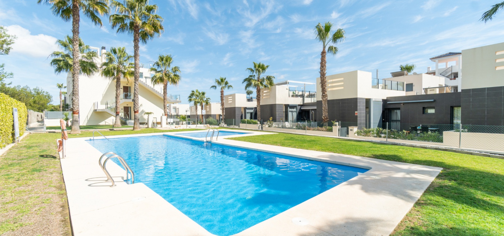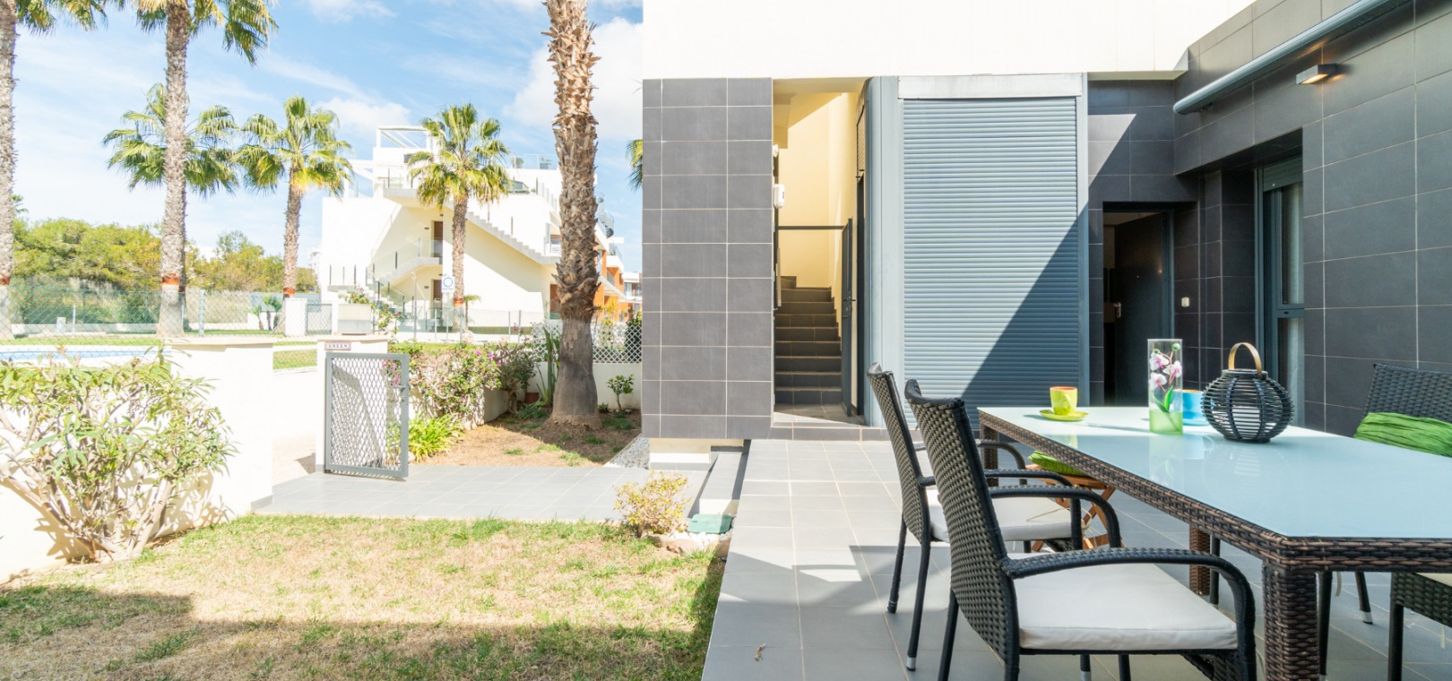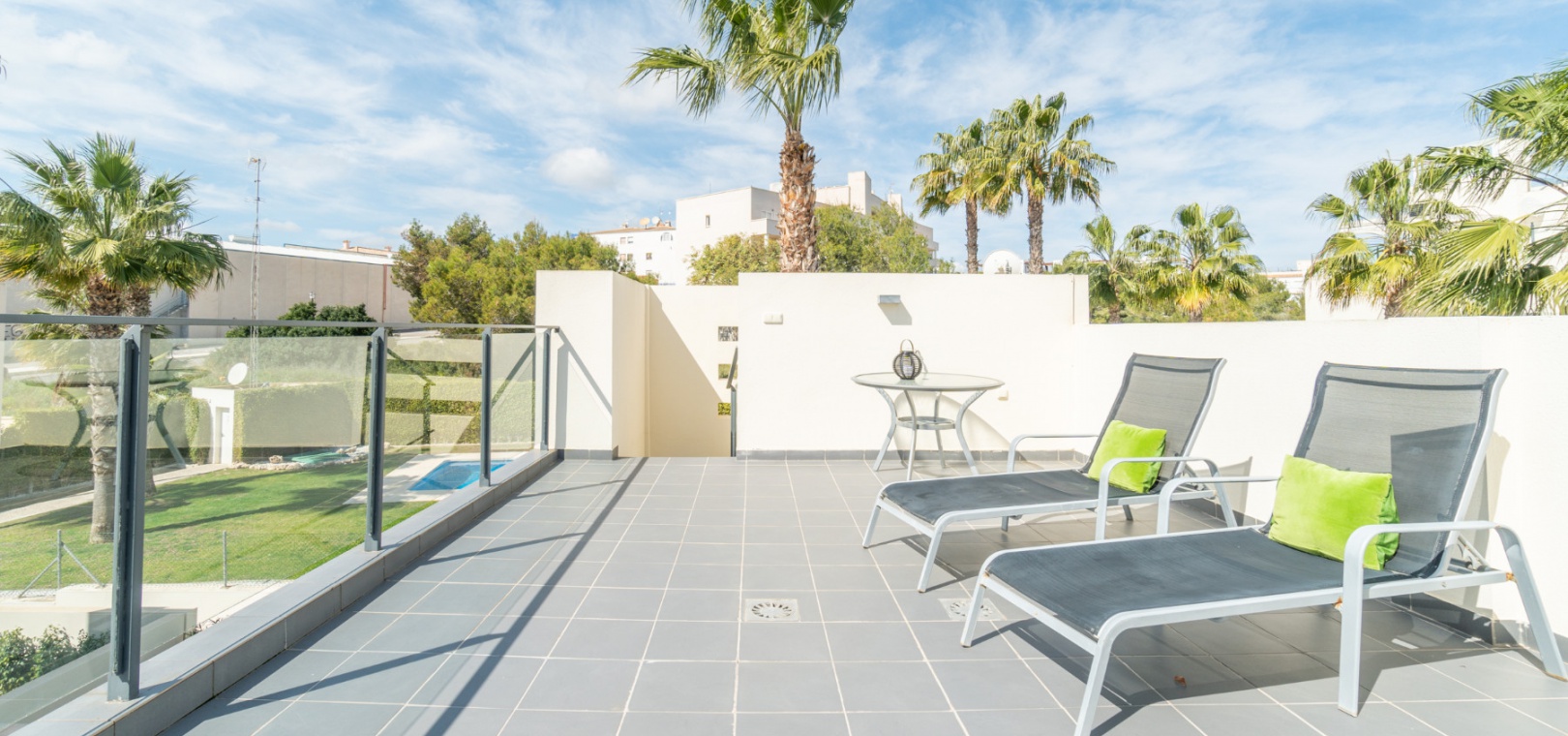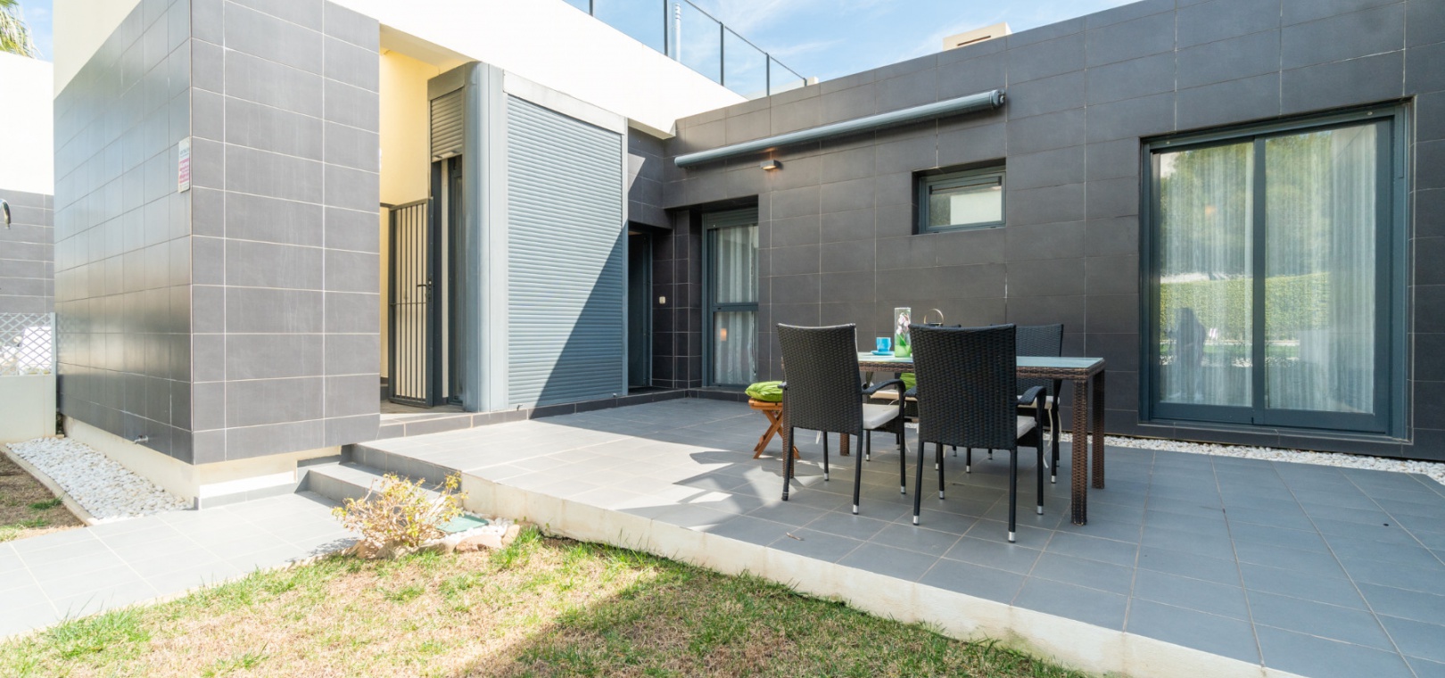 A 2 bed 2 bath modern style bungalow with a private rooftop solarium located in La Fuente, Villamartin, Costa Blanca.