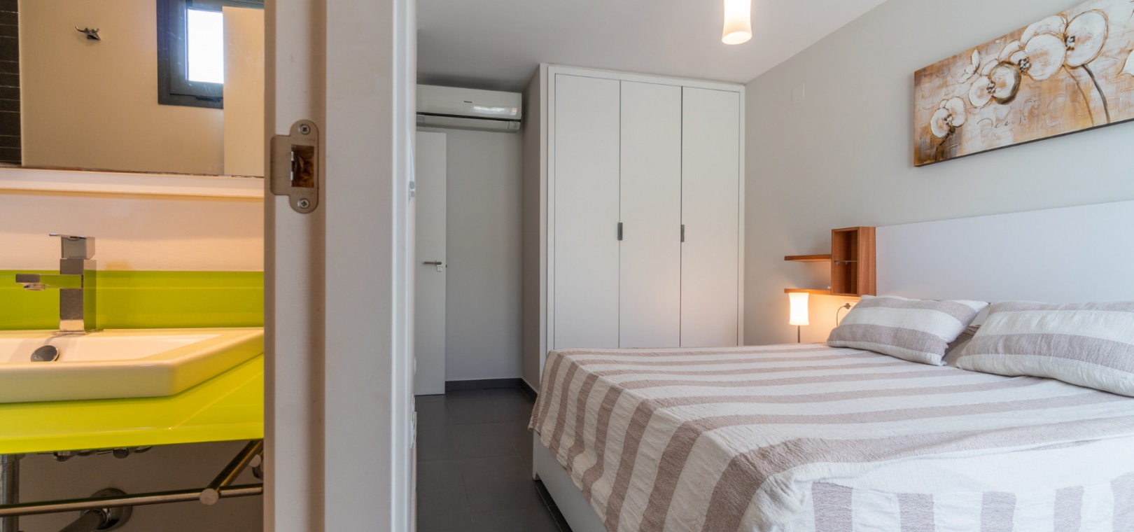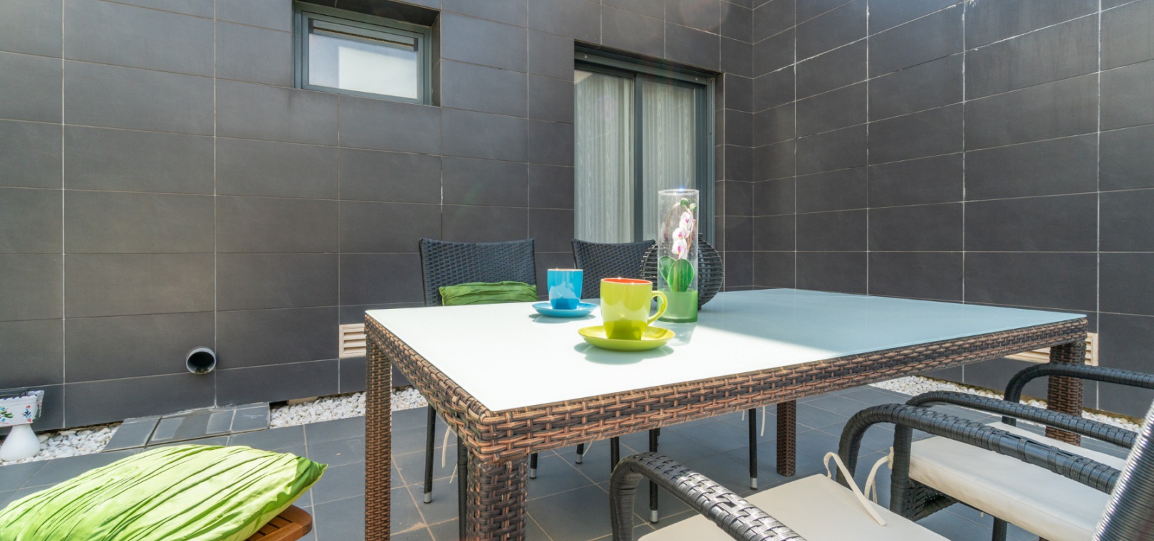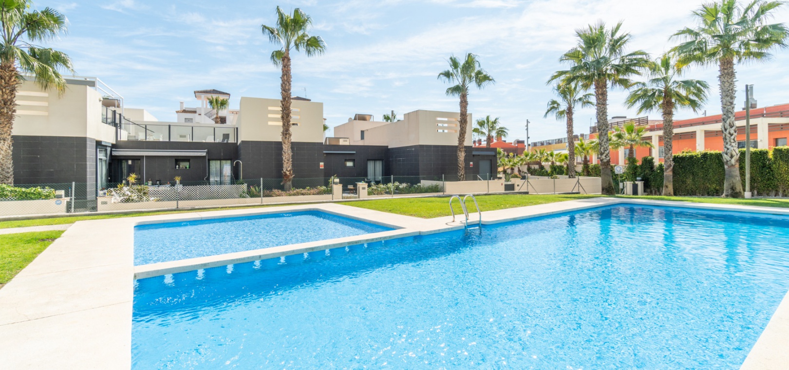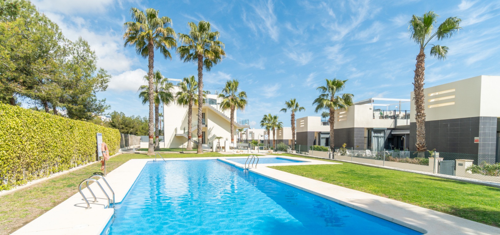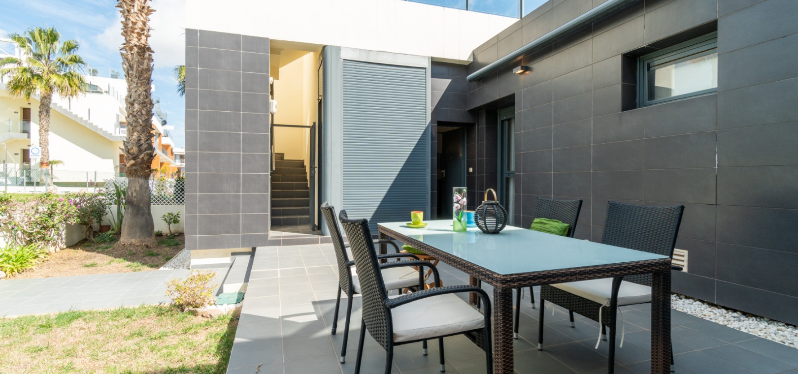 A 2 bed 2 bath modern style bungalow with a private rooftop solarium located in La Fuente, Villamartin, Costa Blanca.