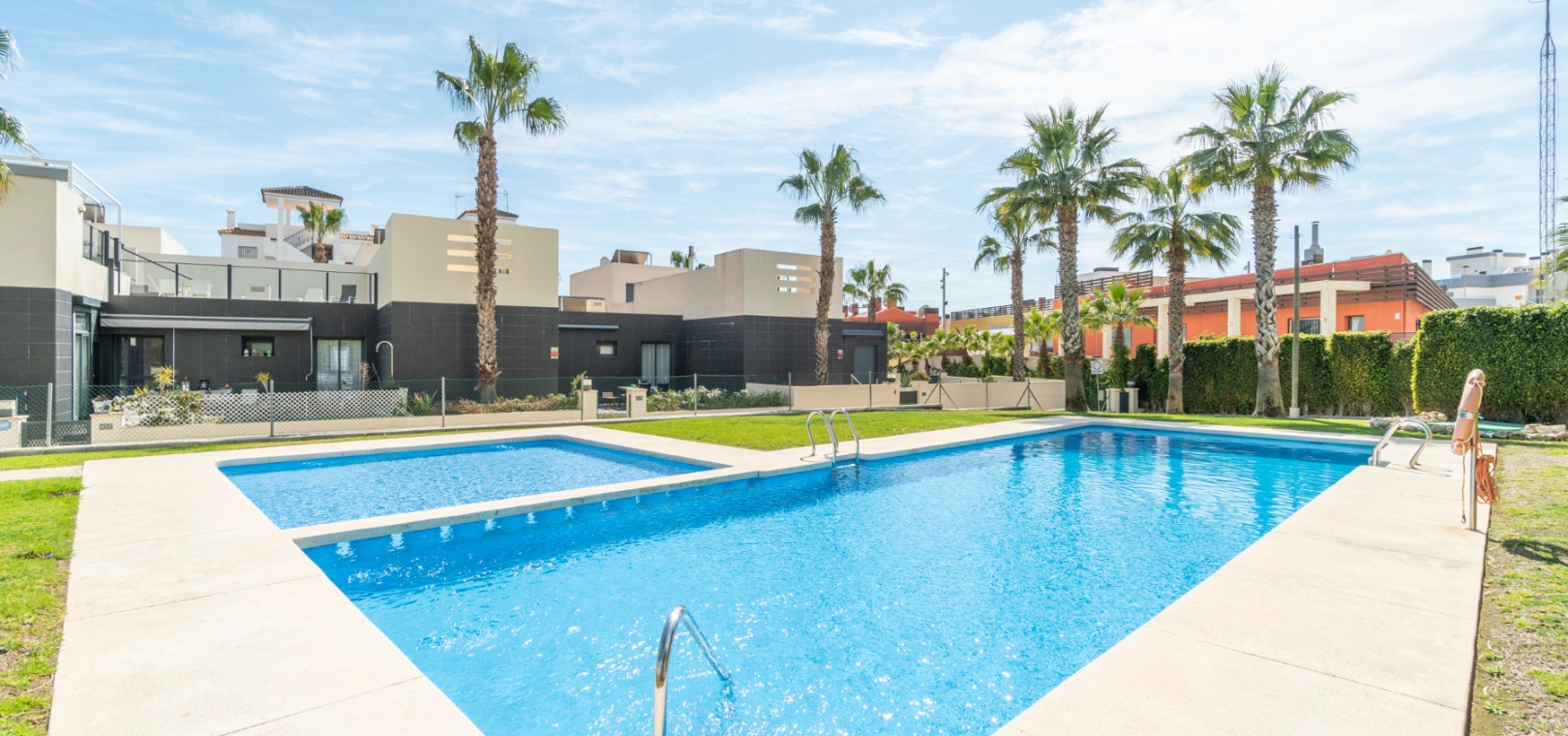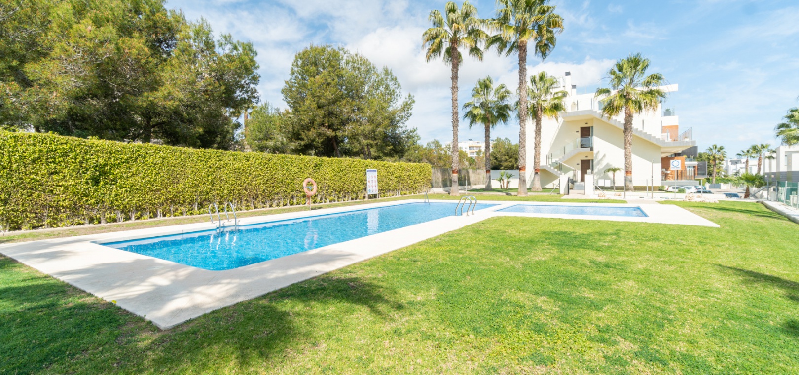 The property is located just behind the very popular La Fuente commercial centre where you will find a big selection of bars, restaurants & shops inc. a supermarket & Pharmacy. Local buses & taxis stop right outside La Funete. The lovely Orihuela Costa Blue flag beaches are just 5 minutes by car or you can hop on the local bus. Villamartin Plaza is around a 20 minutes walk. Las Ramblas, Campoamor & Villamartin golf course are all just a few minutes by car & Alicante airport is 50 minutes drive away.