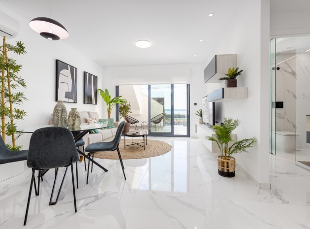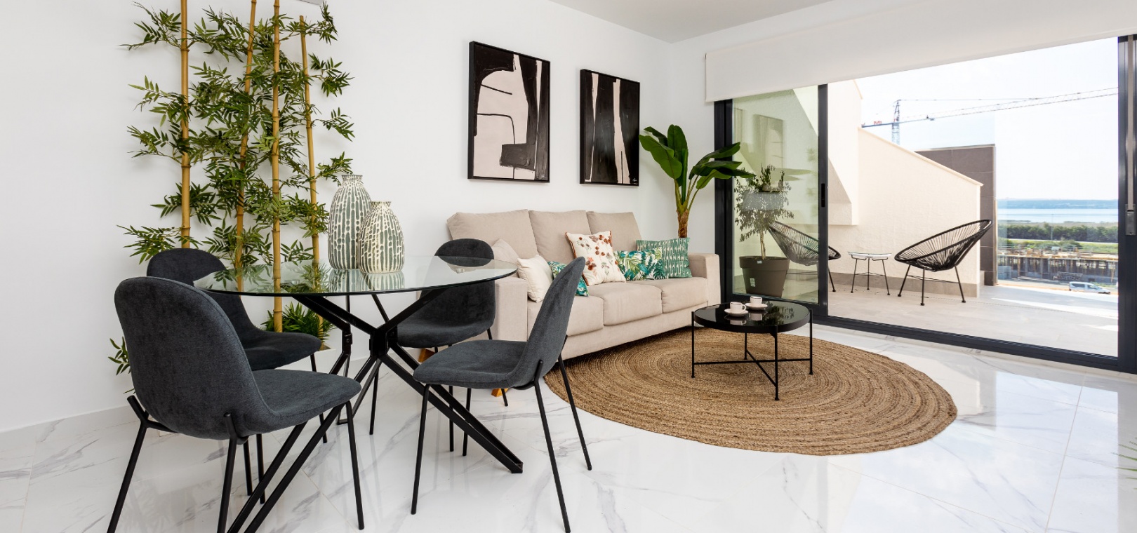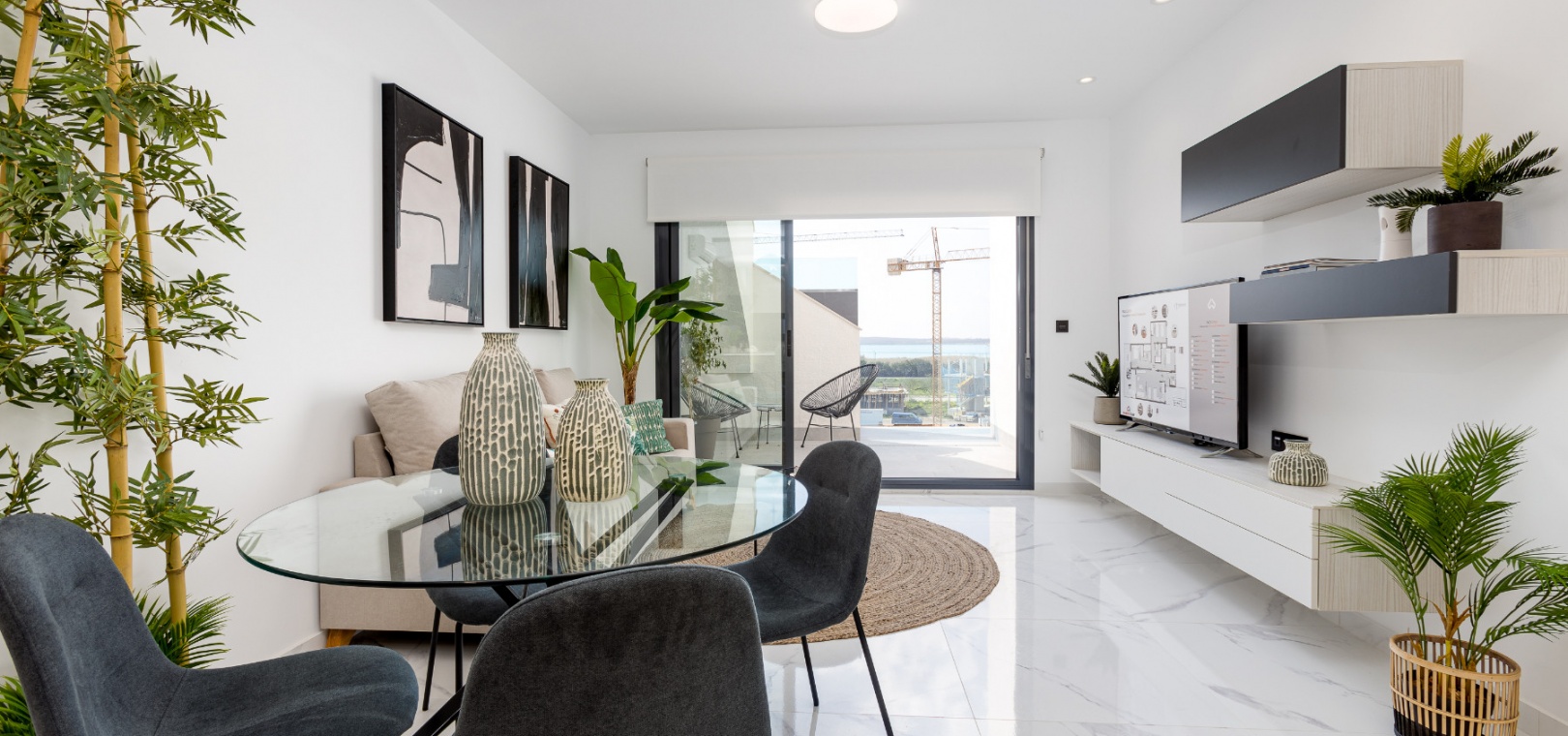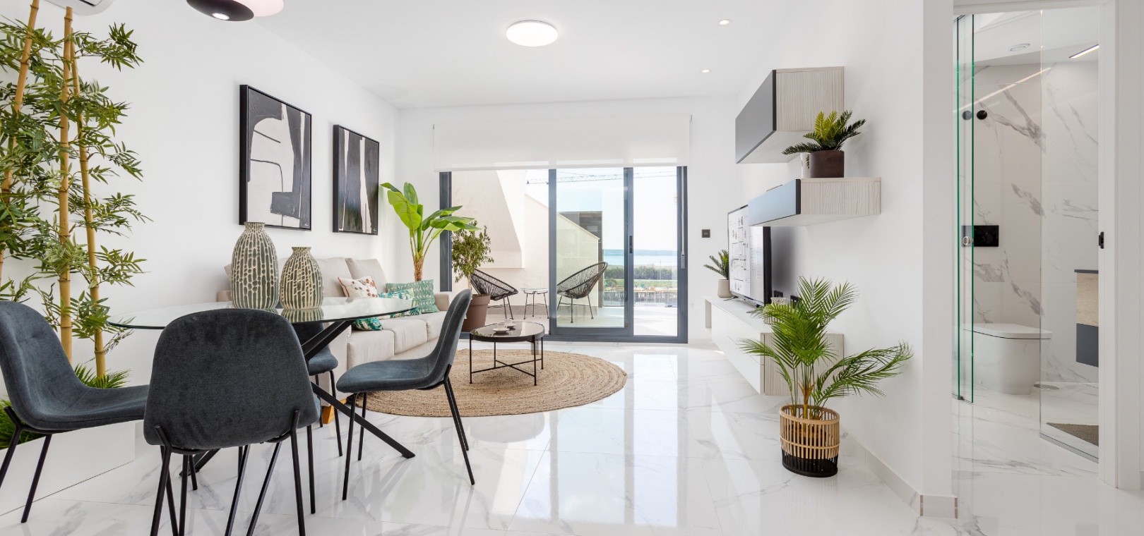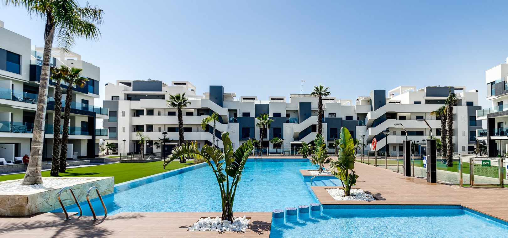 Stunning new build 2 bed 2 bath apartments over looking the communal swimming pool & located in Res. Oasis Beach XV, El Raso, Guardamar, Costa Blanca.
