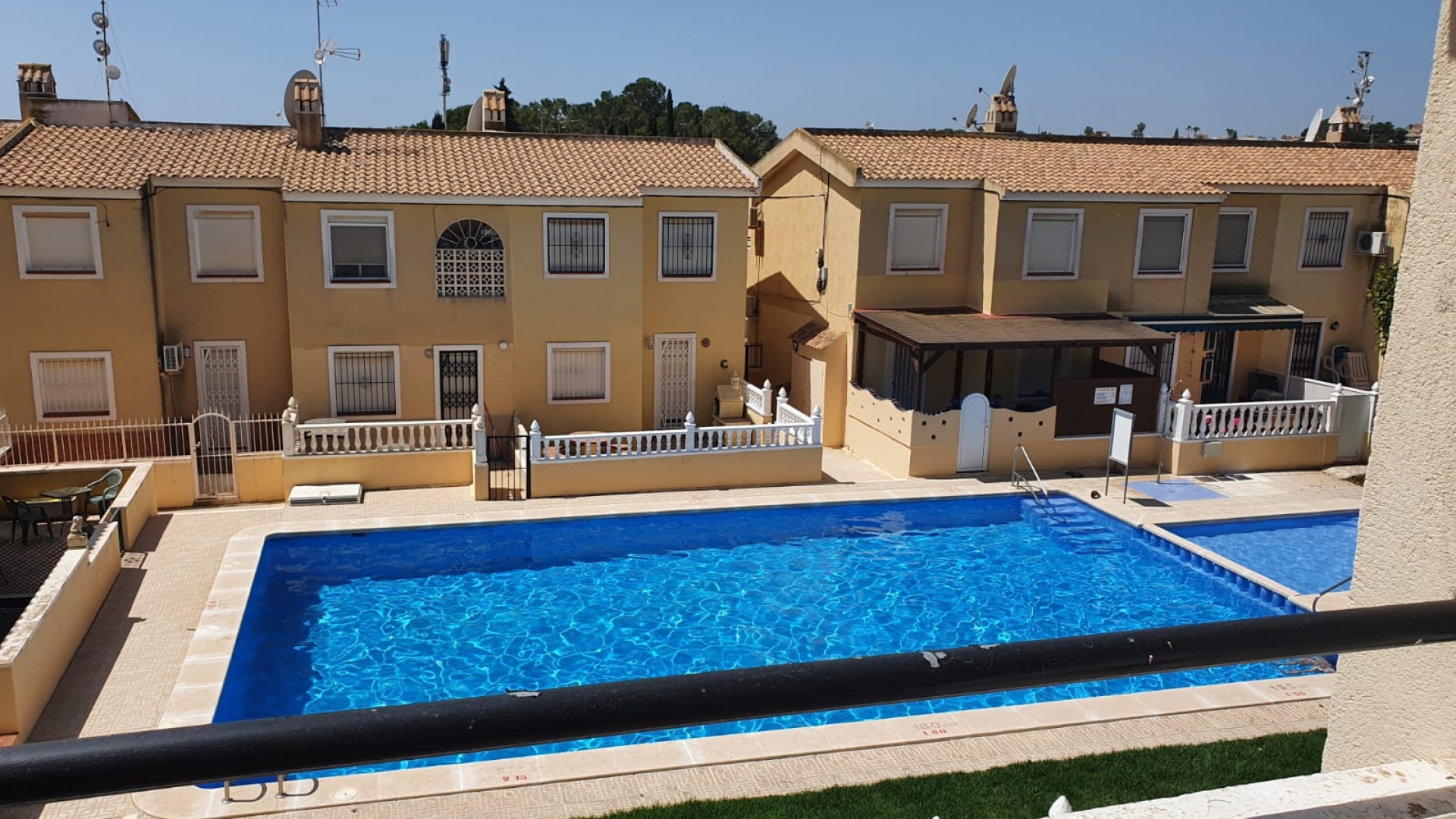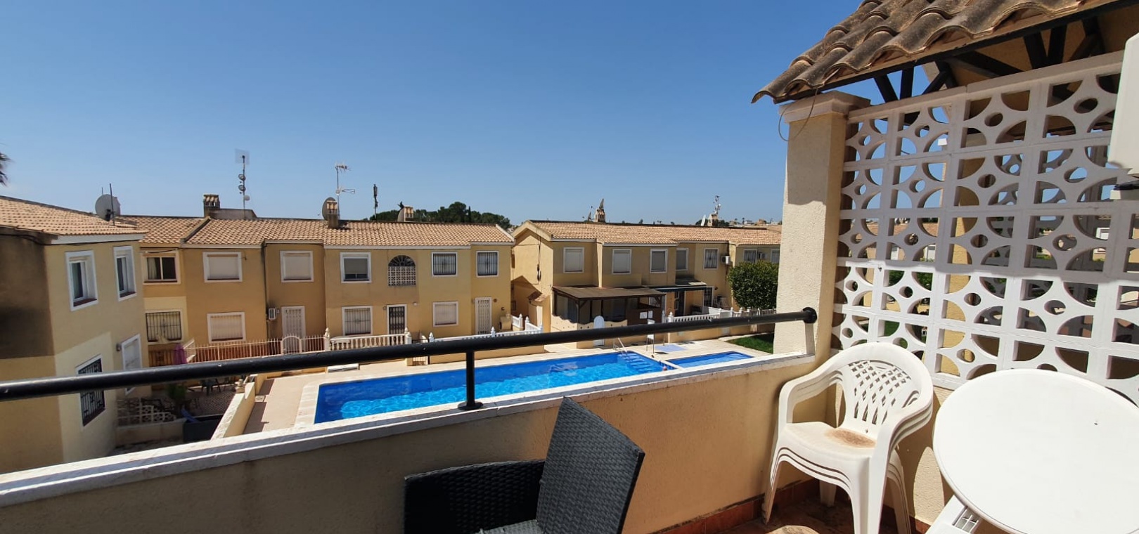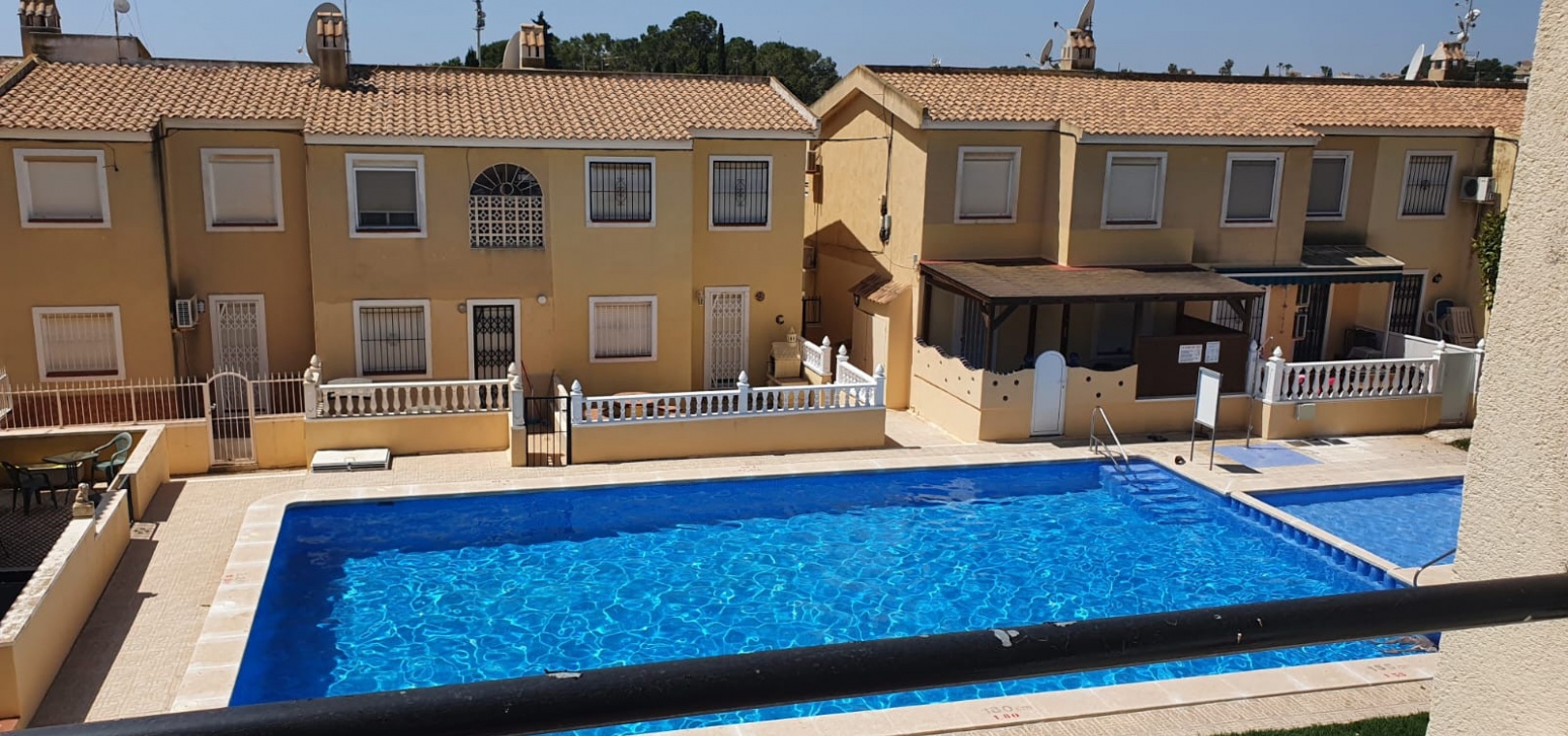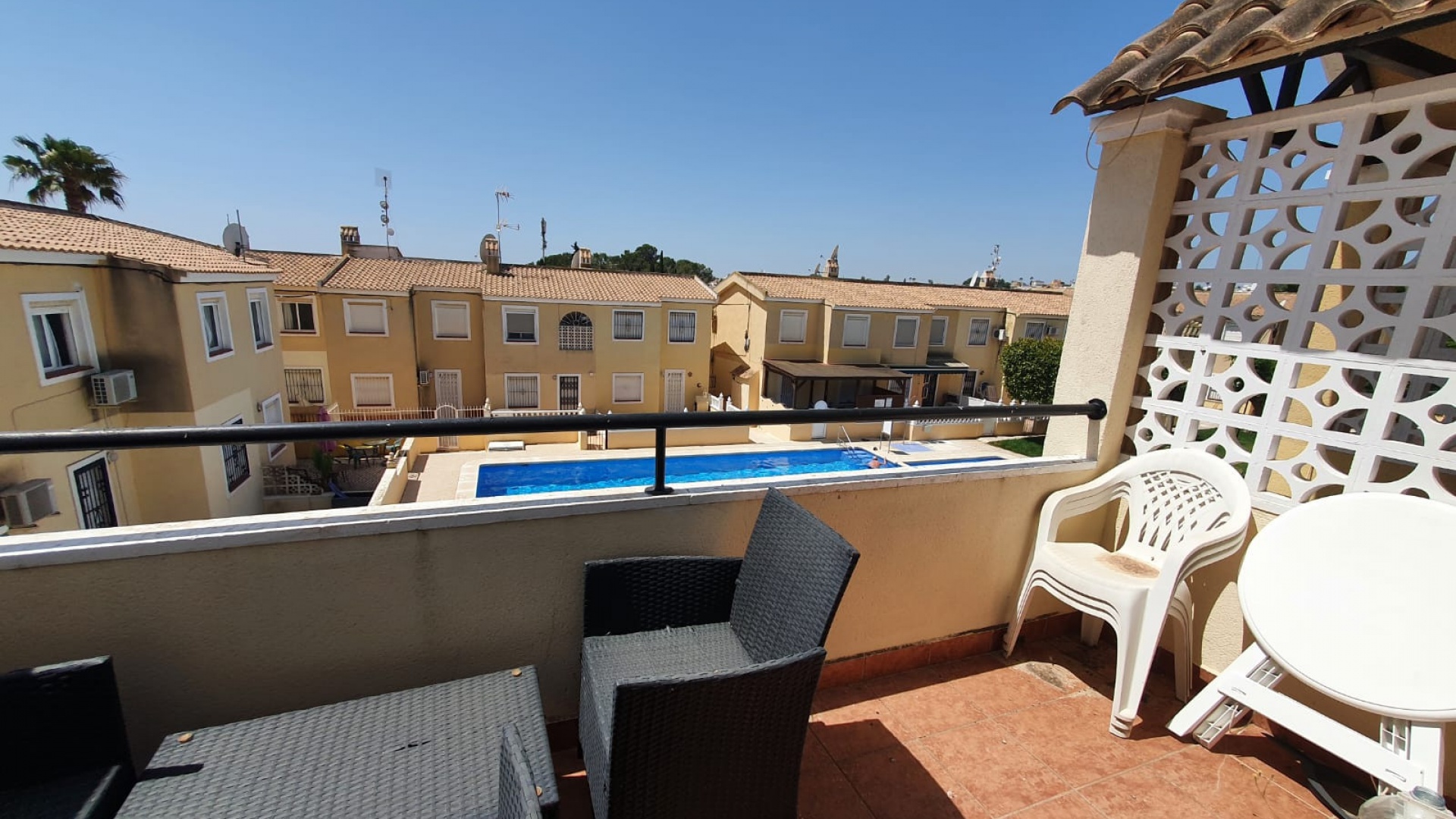 A South facing 2 bed 1 bath top floor apartment over looking the communal swimming pool located in Lomas del Golf, Villamartin, Costa Blanca South.