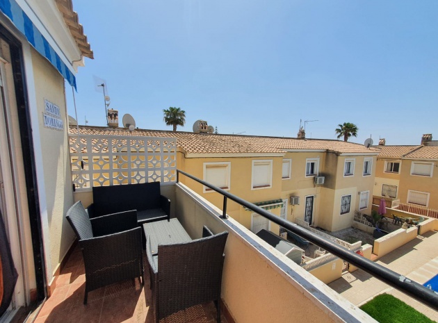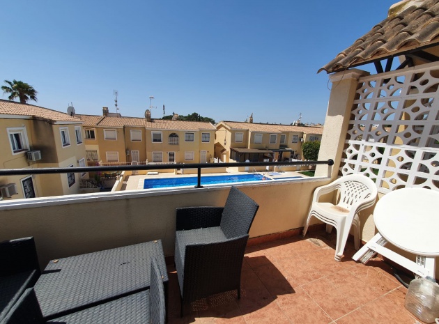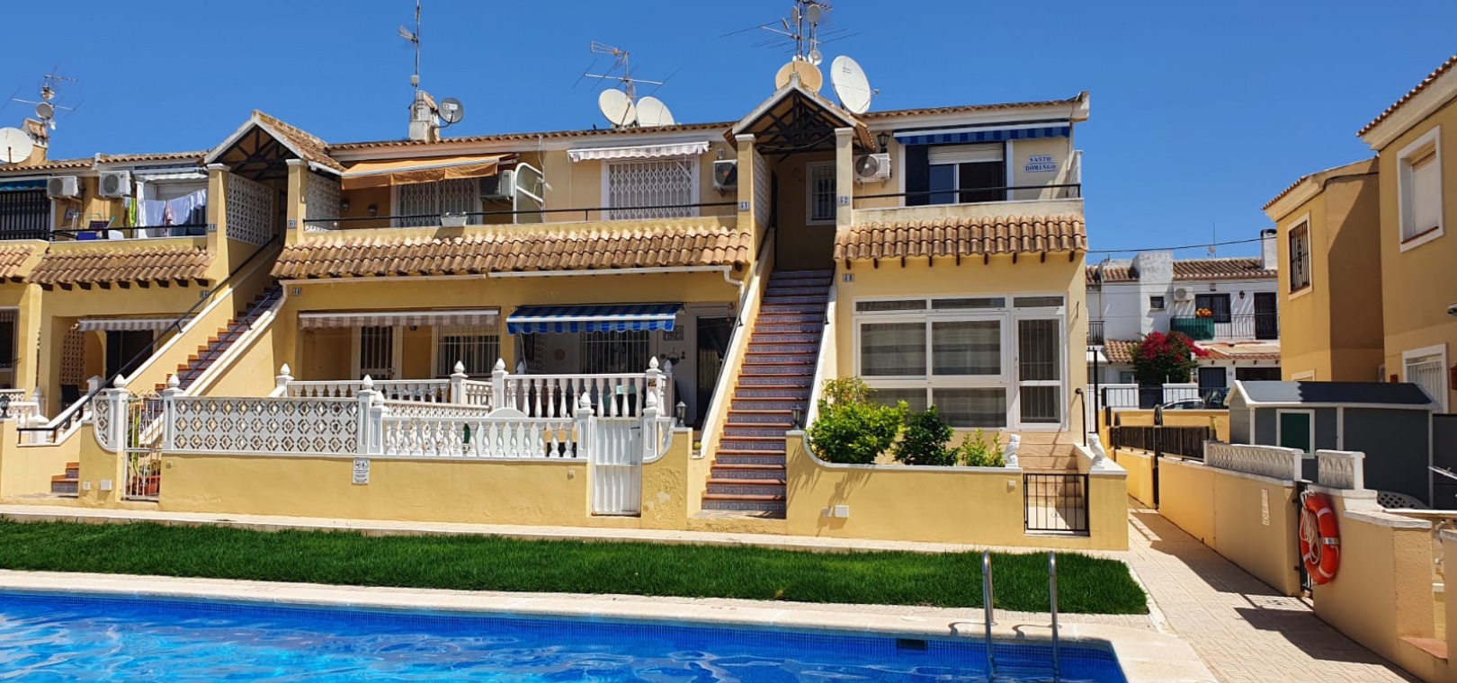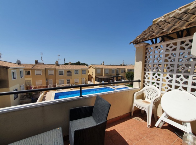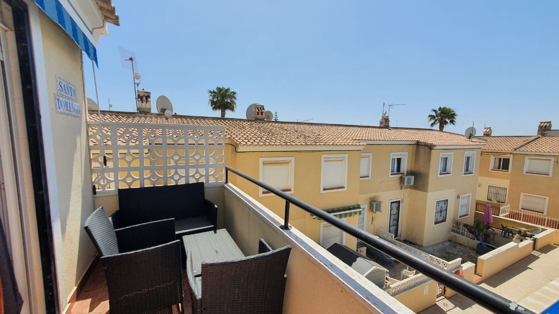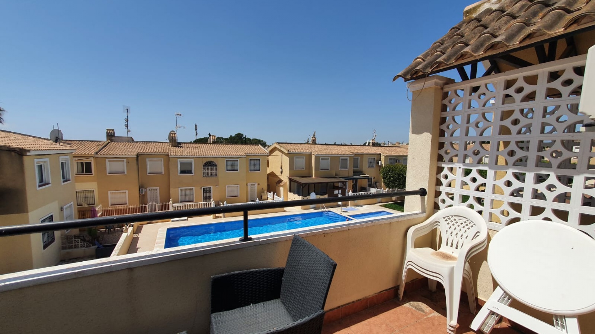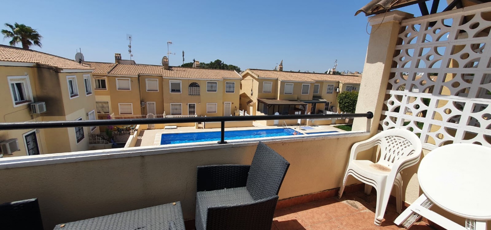 A South facing 2 bed 1 bath top floor apartment over looking the communal swimming pool located in Lomas del Golf, Villamartin, Costa Blanca South.