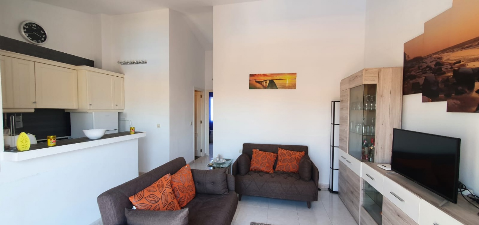 Lounge/diner with hot and cold A/C, open plan kitchen, 2 x double bedrooms, the main has fitted wardrobes & hot and cold A/C, 1 x newly fitted shower room, balcony with views to the communal swimming pool and gardens, 24 hour security, secure gated community and much more.
