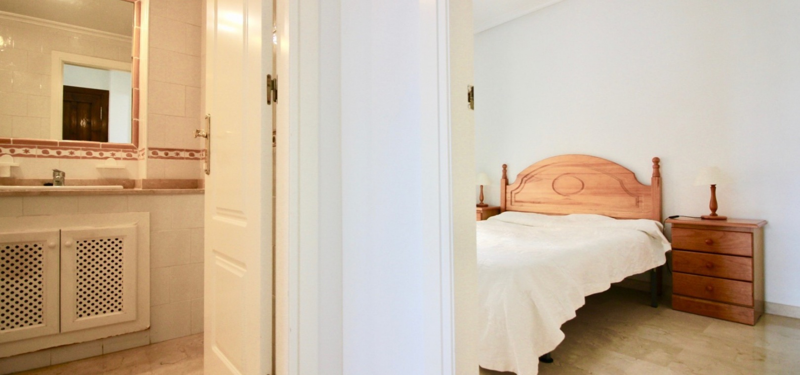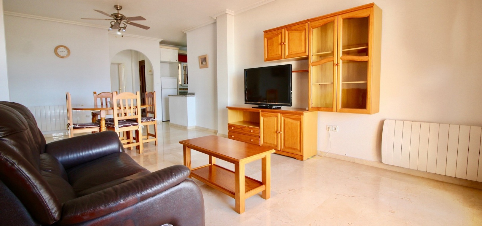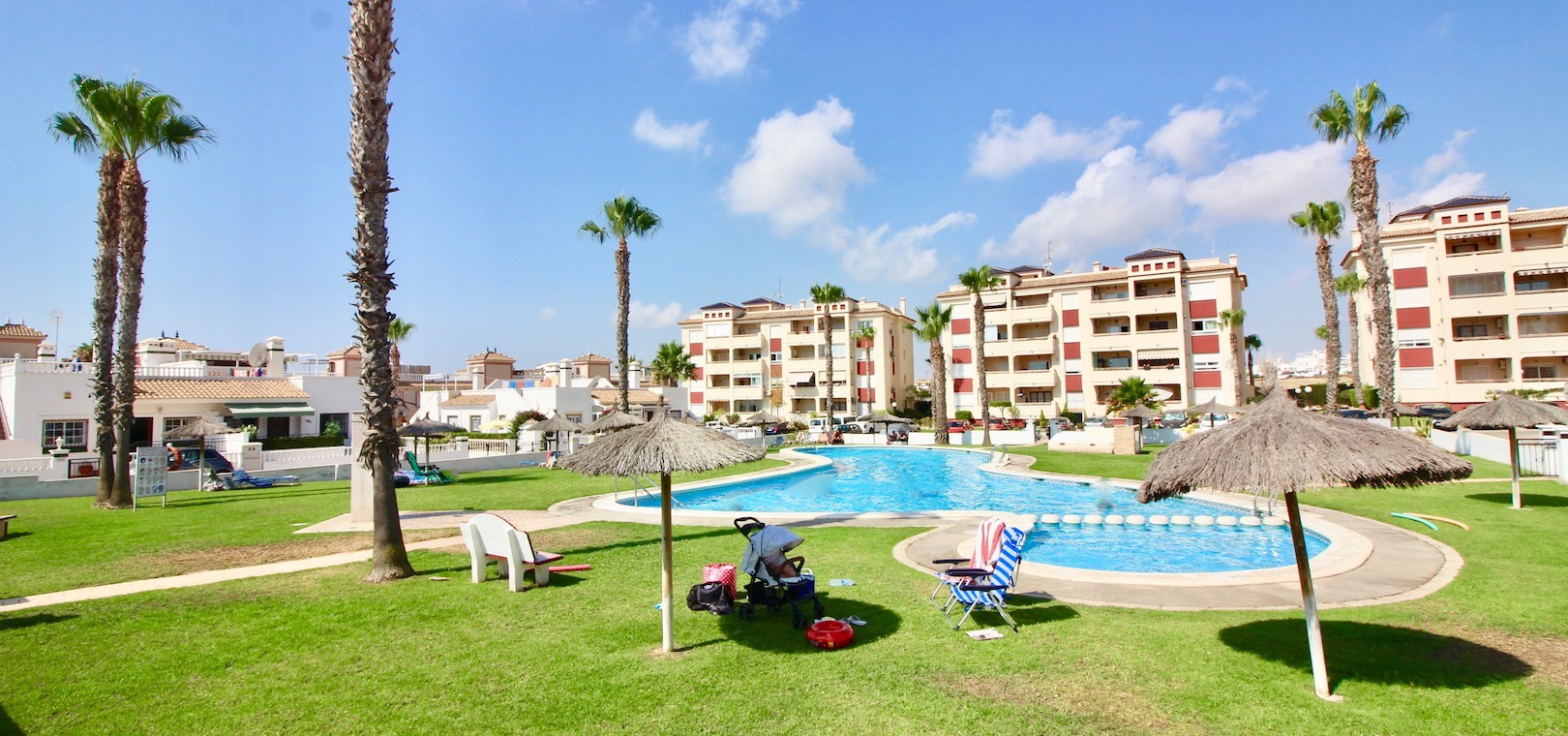 A South West facing 2 bed 2 bath 2nd floor apartment located in Res. Jumilla II, Playa Flamenca, Costa Blanca.