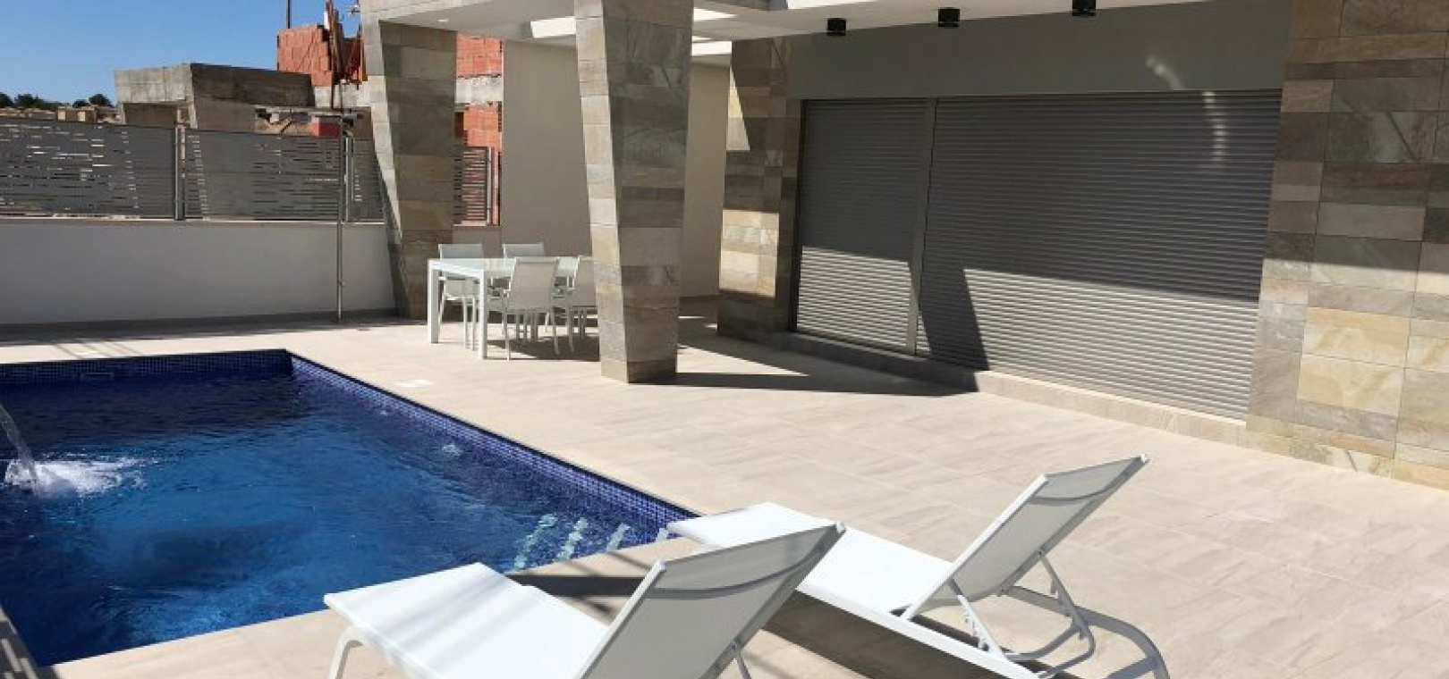 New Build 3 bed 3 bath detached villa with a private swimming pool located in Res Villas de Don Tomas, El Galan, Villamartin, Costa Blanca.
