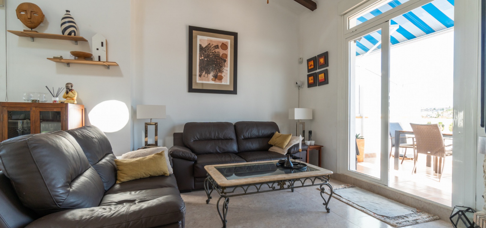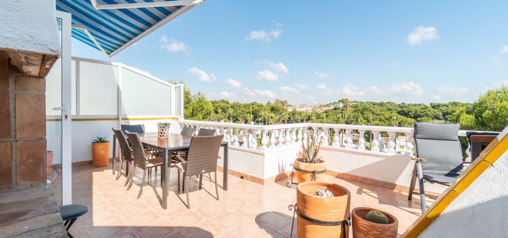 Across the living room you have two big sliding doors, leading to the main 24m2 terrace with some of the best views you will find over the Villamartin golf course. An outside staircase leads up to the 24m2 solarium with even better views of the golf course and surrounding area.