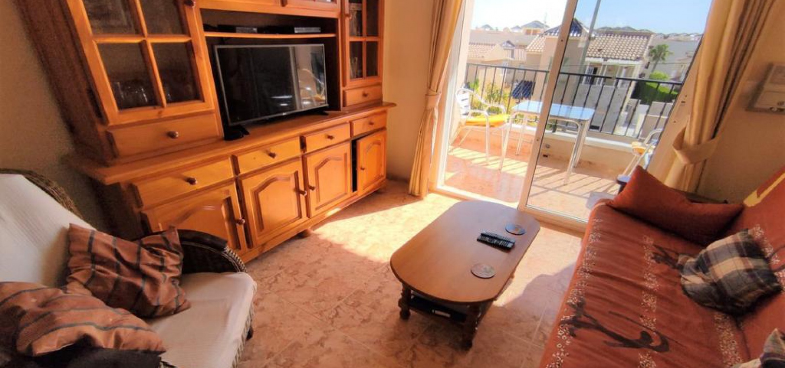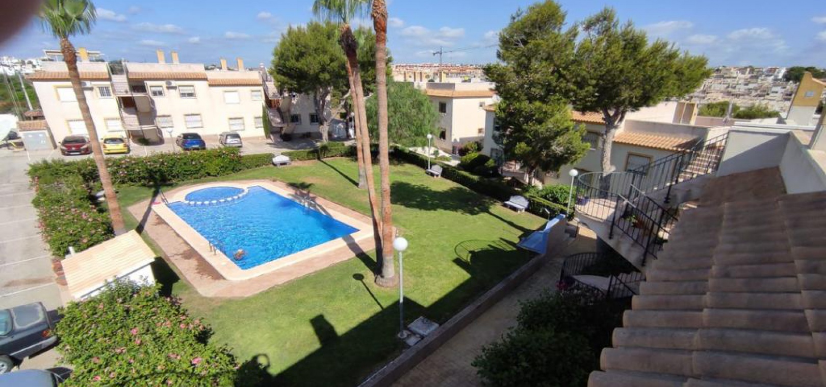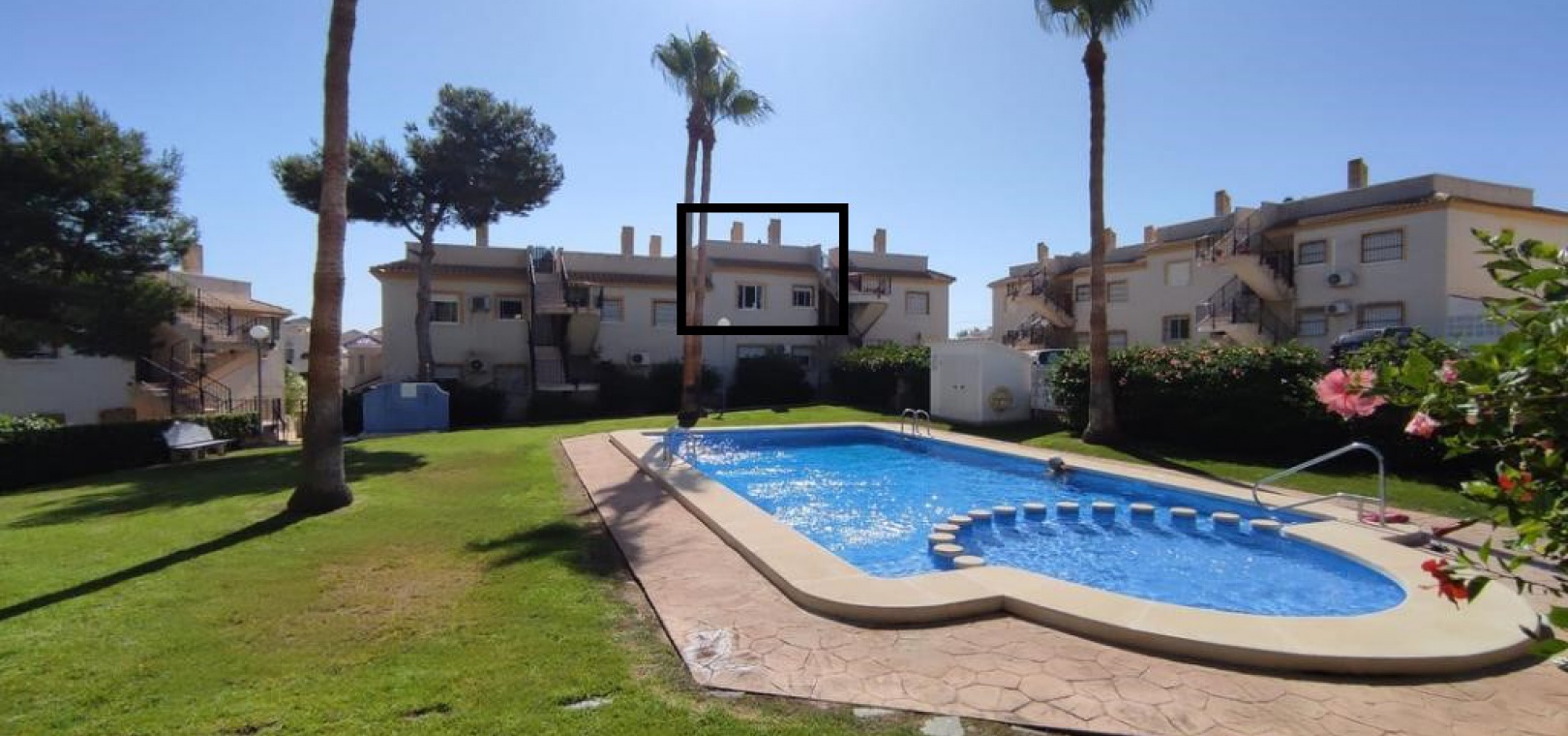 An East facing 2 bed 1 bath top floor apartment with a private solarium located in St James Park, Villamartin, Costa Blanca.