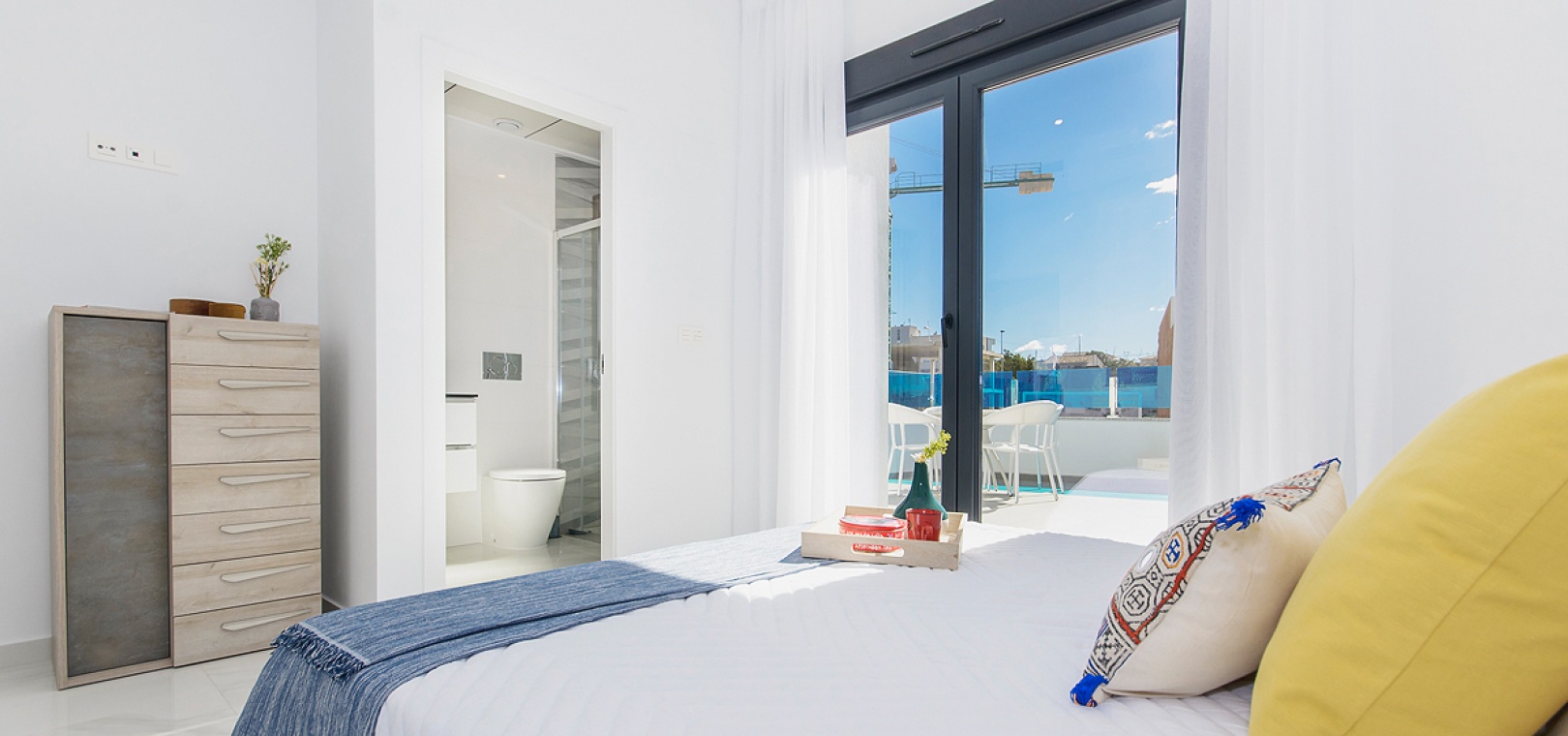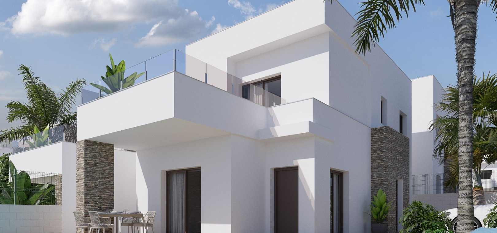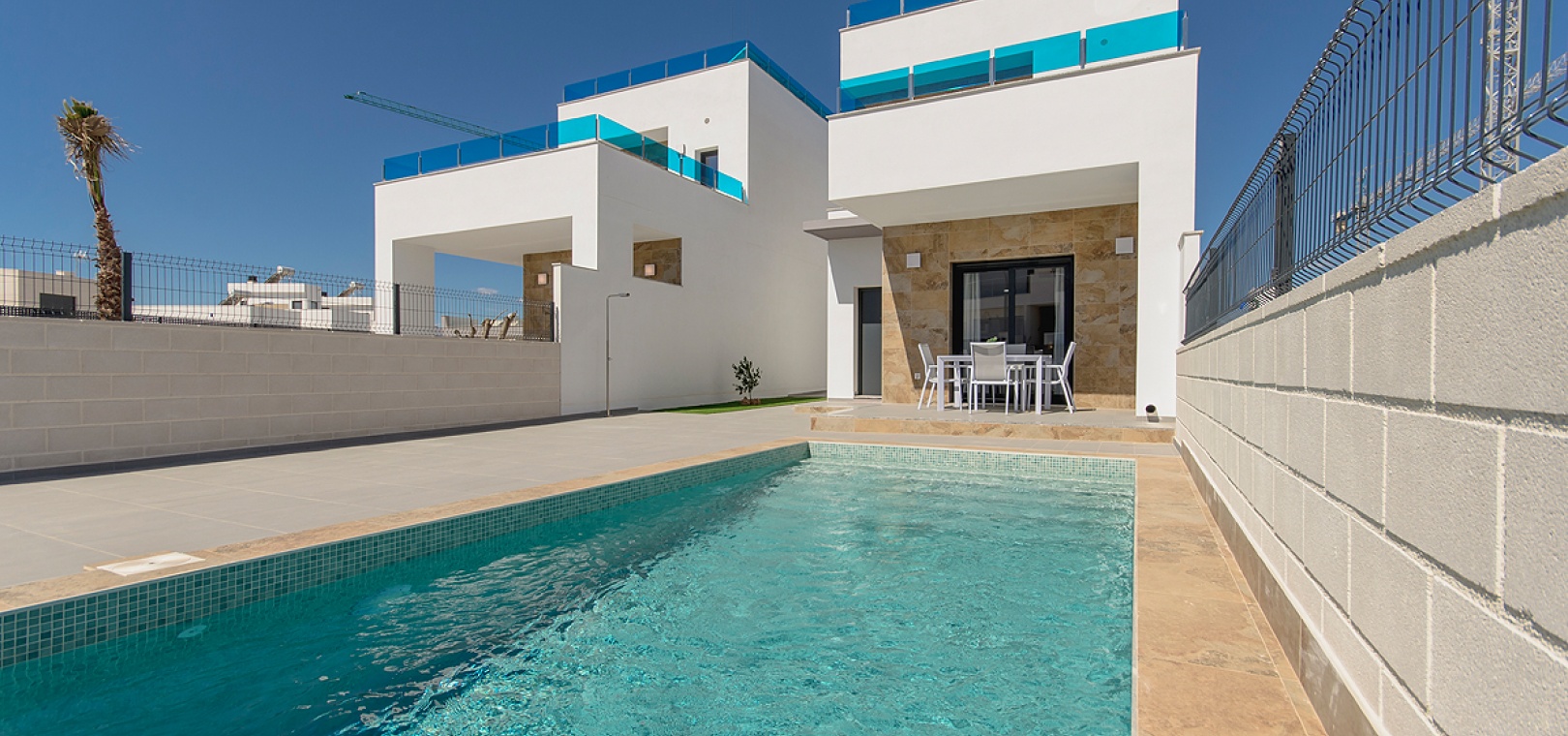New Build Modern Design 3 bedroom 3 bathroom detached villas with private swimming pool located in Res. Casas Blanca de Vistabella, Vistabella Golf, Costa Blanca South.