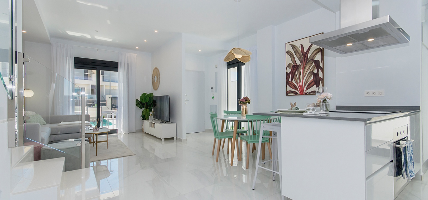 Large lounge, large open plan fully fitted kitchen, 3 x bedrooms, master with en-suite shower room with underfloor heating, 2 x family shower rooms with underfloor heating, large terrace, optional large private solarium, driveway for off road parking, private swimming pool, electric window blinds, pre-installation for air conditioning & much more.