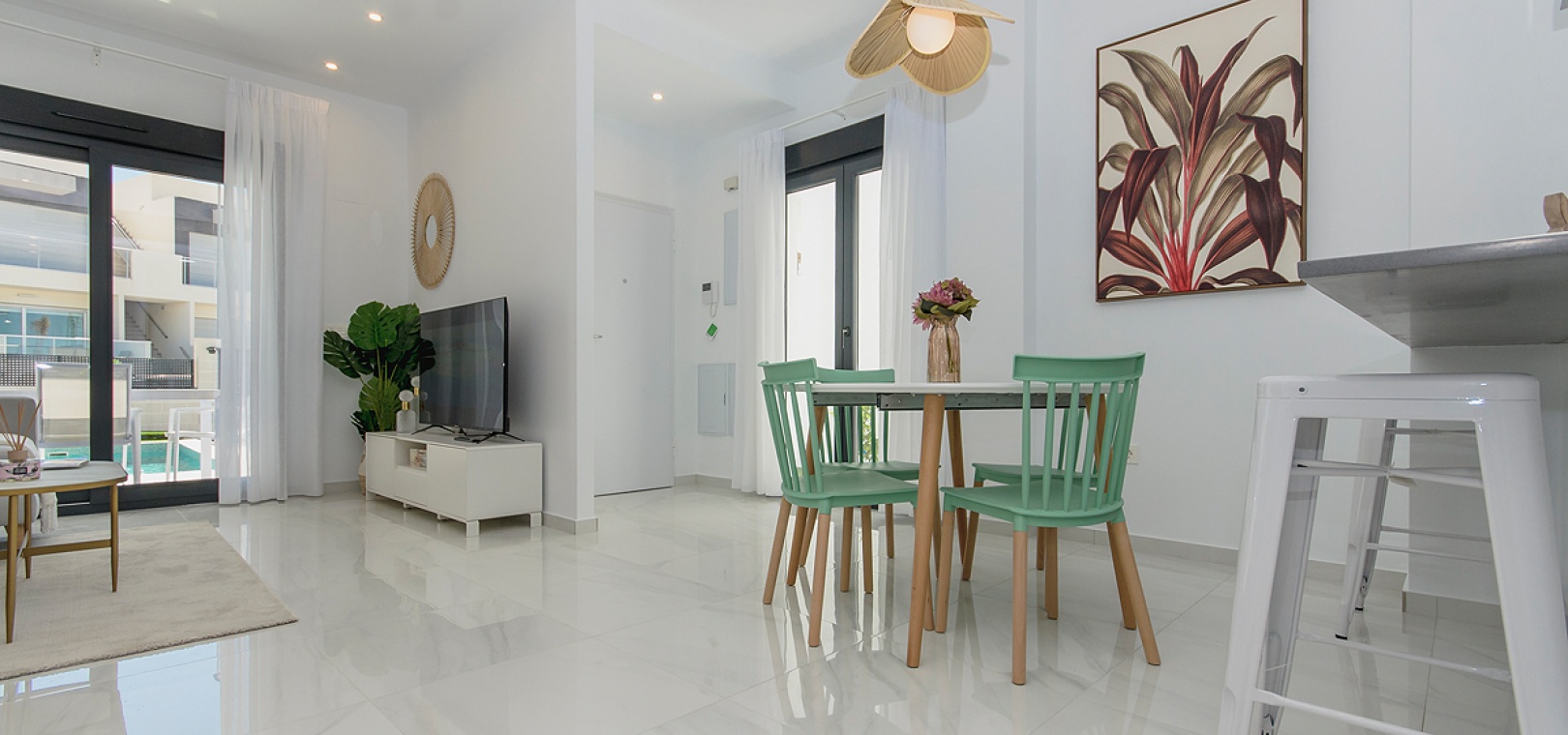The Vistabella Golf club house & restaurant & local bars & shops are within 5 minutes walk. The busy town of San Miguel de Salinas & Los Montesinos are 5 minutes drive away & the lovely Blue flag beaches at Guardamar are just 15 minutes drive away. Alicante airport is 35 minutes away & the new Corvera Murcia airport is 45 minutes away.