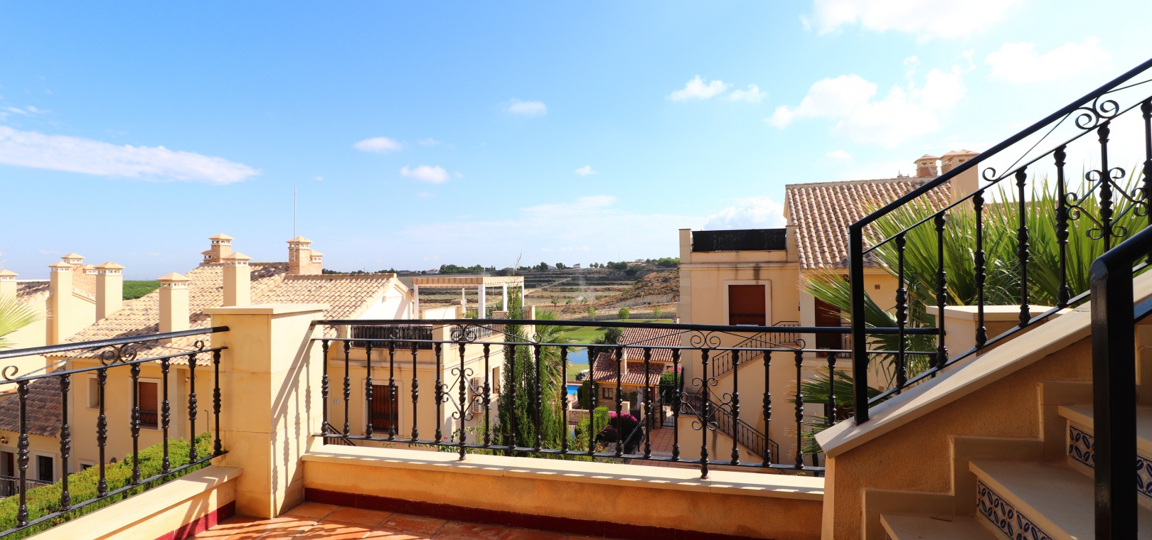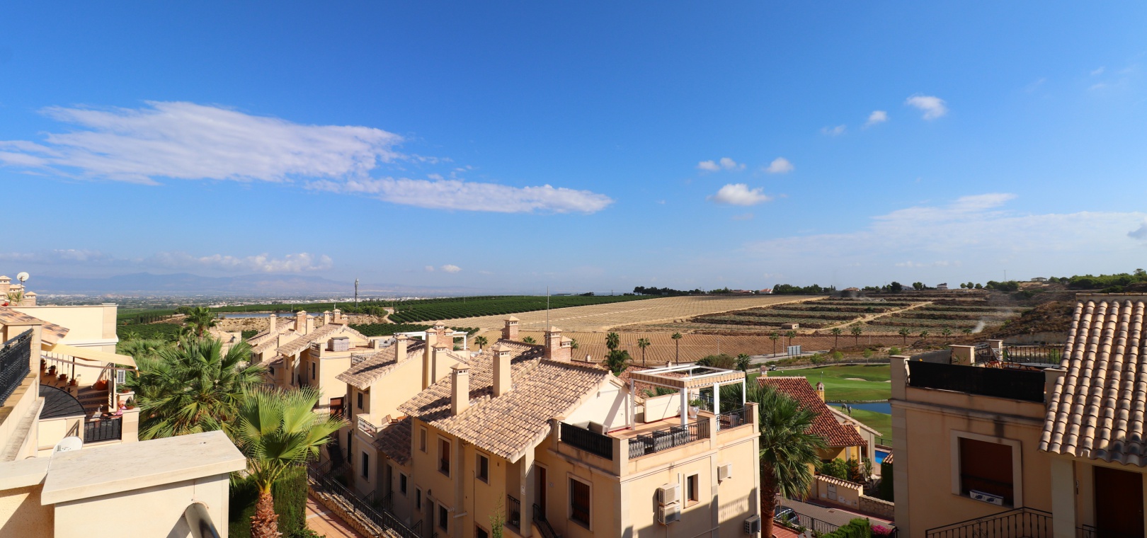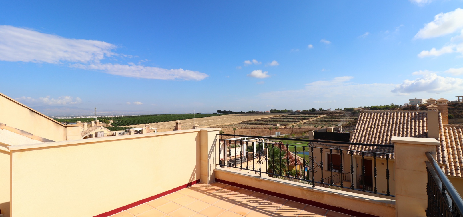 This Spectacular, South-East Facing, Two Bedroom Top Floor Apartment in La Finca Golf Resort, is located within a Secure Gated Community on a 5* Golf, Hotel & Spa Resort, just outside the village of Algorfa. Situated within a 2 minute drive to the commercial centre, with lots of amenities and of course the facilities of the golf course. Just a 15 minute drive to the nearest beaches at Guardamar del Segura. This fantastic property comprises of an open plan, updated and modernized fully fitted kitchen with feature worktop; lounge/dining room with feature vaulted ceiling and double sliding doors out to the sunny terrace with open community + some golf views; two double bedrooms, the master with en suite shower room; and a family bathroom. External stairs from the terrace leads to the sun drenched private roof top solarium, with amazing surrounding area, community and golf views, an ideal space to entertain! There is a beautiful communal swimming pool and many extras included with this well priced property such as fitted wardrobes, air conditioning in the bedrooms, gated community parking, open fireplace and more... Simply amazing!!! Don’t miss out and be TOO LATE!