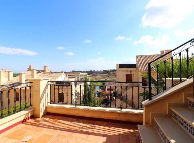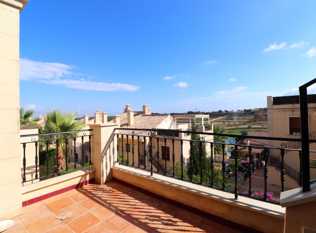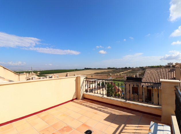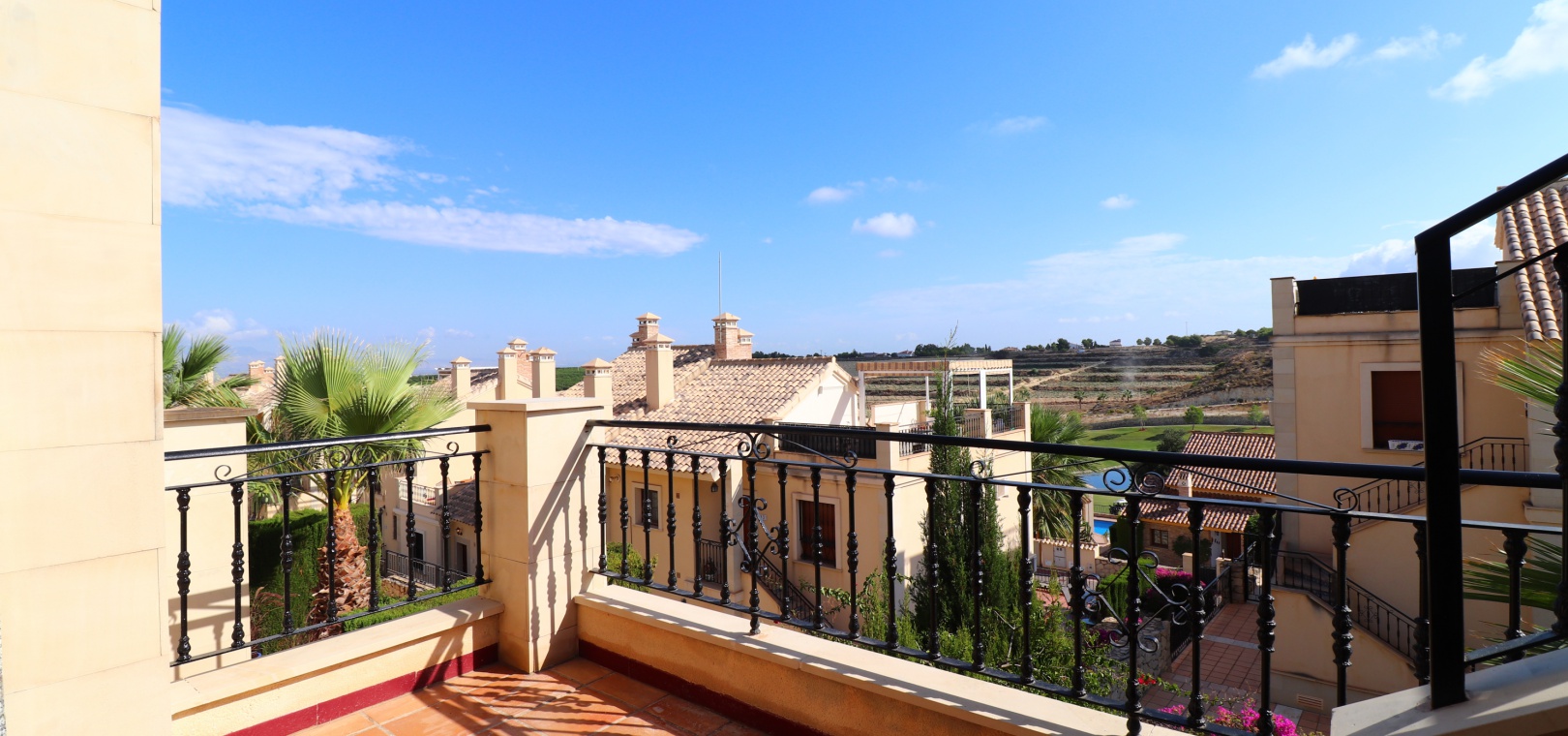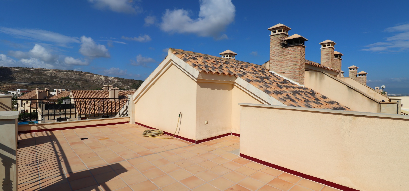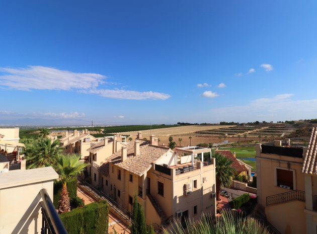 This Spectacular, South-East Facing, Two Bedroom Top Floor Apartment in La Finca Golf Resort, is located within a Secure Gated Community on a 5* Golf, Hotel & Spa Resort, just outside the village of Algorfa. Situated within a 2 minute drive to the commercial centre, with lots of amenities and of course the facilities of the golf course. Just a 15 minute drive to the nearest beaches at Guardamar del Segura. This fantastic property comprises of an open plan, updated and modernized fully fitted kitchen with feature worktop; lounge/dining room with feature vaulted ceiling and double sliding doors out to the sunny terrace with open community + some golf views; two double bedrooms, the master with en suite shower room; and a family bathroom. External stairs from the terrace leads to the sun drenched private roof top solarium, with amazing surrounding area, community and golf views, an ideal space to entertain! There is a beautiful communal swimming pool and many extras included with this well priced property such as fitted wardrobes, air conditioning in the bedrooms, gated community parking, open fireplace and more... Simply amazing!!! Don’t miss out and be TOO LATE!