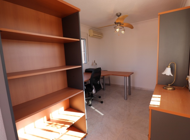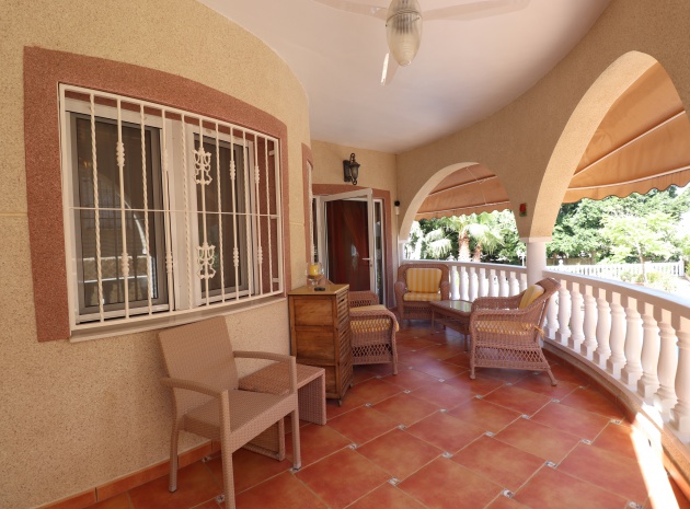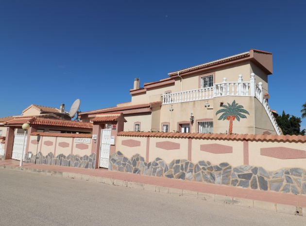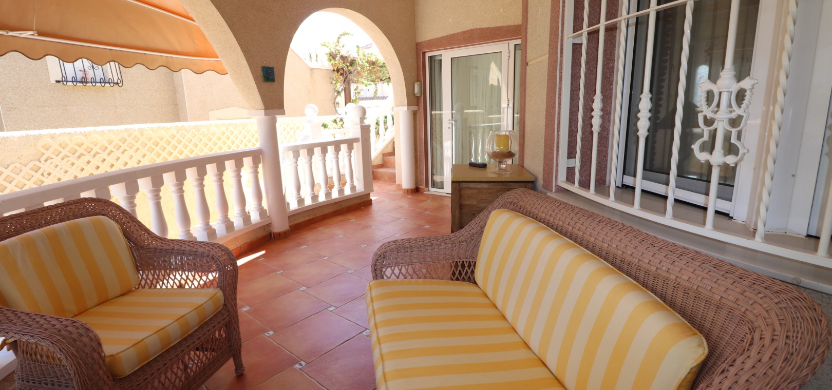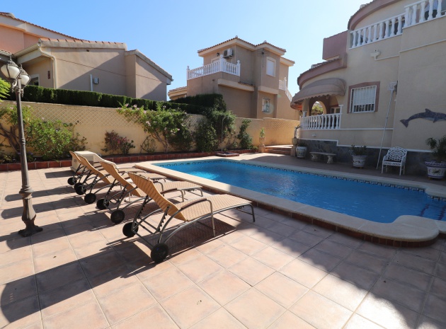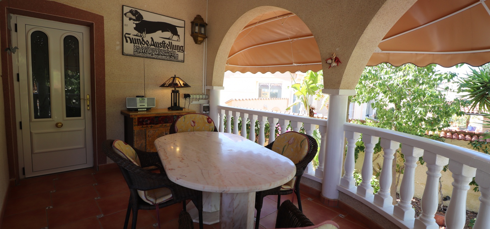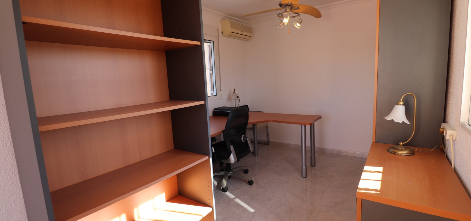 This Beautiful & Traditional Four Bedroom Detached Villa in La Marquesa is located in a prominent position on a desirable golf course, between Rojales and Ciudad Quesada. Within a few minutes drive of the nearest amenities on the course itself, bars, restaurants, shops, supermarkets and more... Guardamar beach is also just a 10/15 minutes drive away. This extremely spacious property of some 234m2 comprises on the ground floor of a lovely entrance via the first covered terrace, great for eating al fresco; main family lounge/dining room; second living space, currently used as a TV room with access out to the second covered terrace, overlooking the private pool; a separate fully fitted kitchen with breakfast bar and direct access out to the terrace; one double master bedroom with en suite corner bath and shower room; and a cloakroom. External stairs from the terrace leads to the first floor, which has two independent rooms, both with access to a Jack & Jill shower room; and an office... Outside set across this fantastic 800m2 plot is a beautifully landscaped garden, mainly tiled with a good variety of plants and trees throughout, ample off road parking, to include a permanent car port, plenty of outdoor dining room, sunbathing space, 10 x 4 swimming pool and an outside toilet, a true garden to enjoy the Spanish lifestyle! Extras included are fitted wardrobes, air conditioning throughout, grills, ceiling fans, separate utility room, central heating, electric gates and storage room... Great property for a great price!