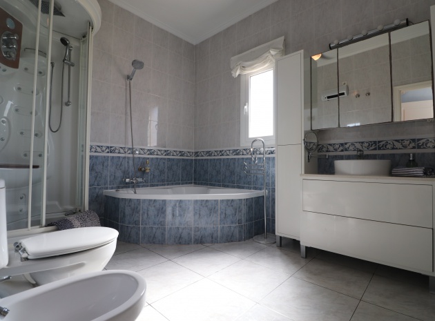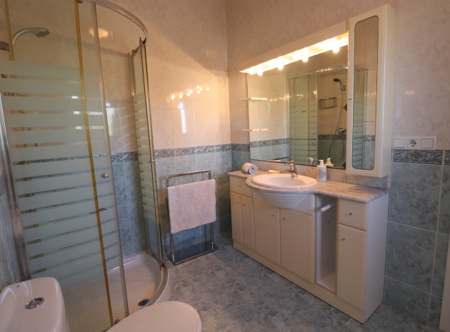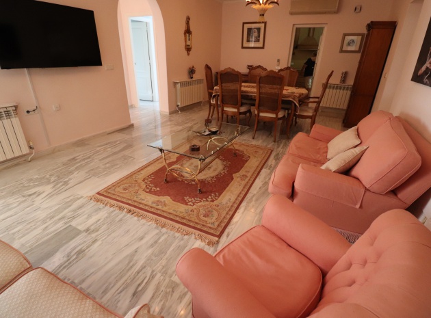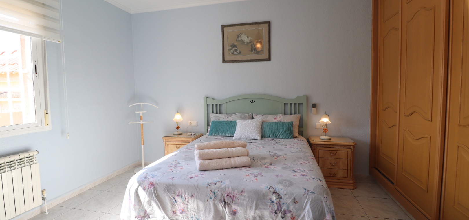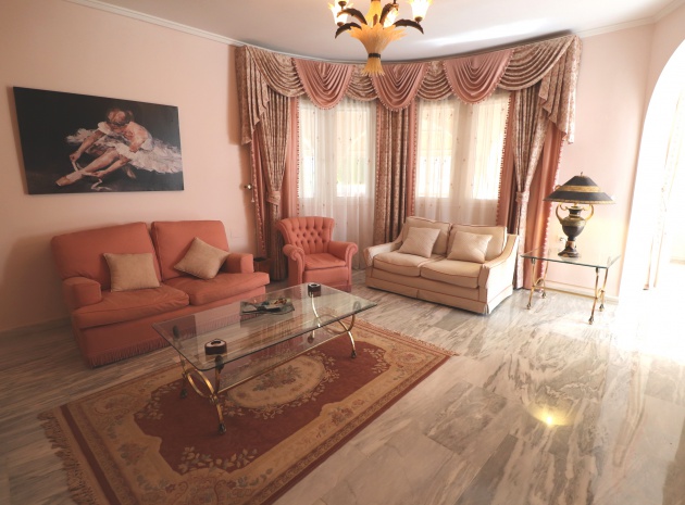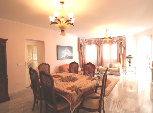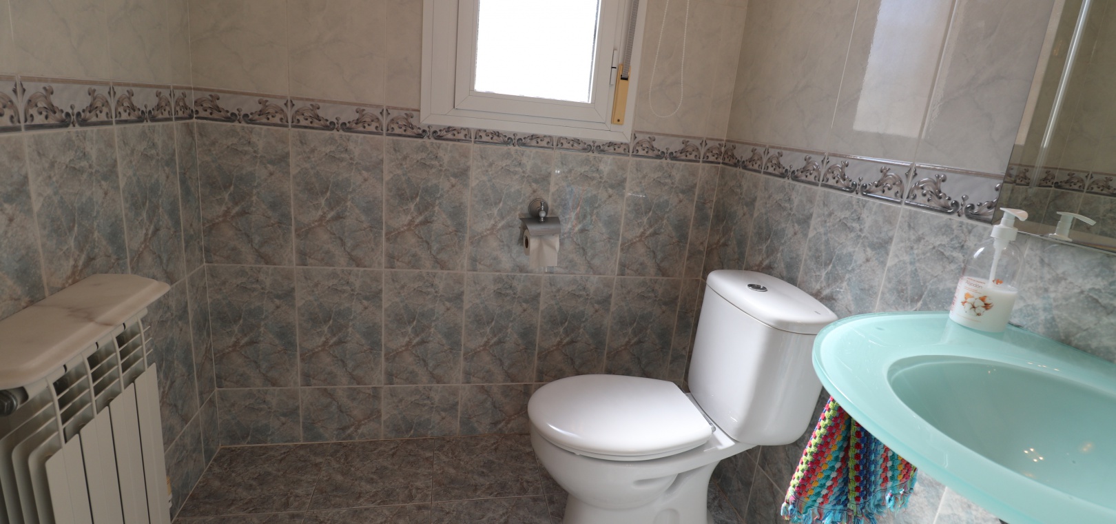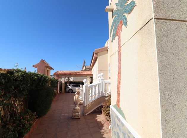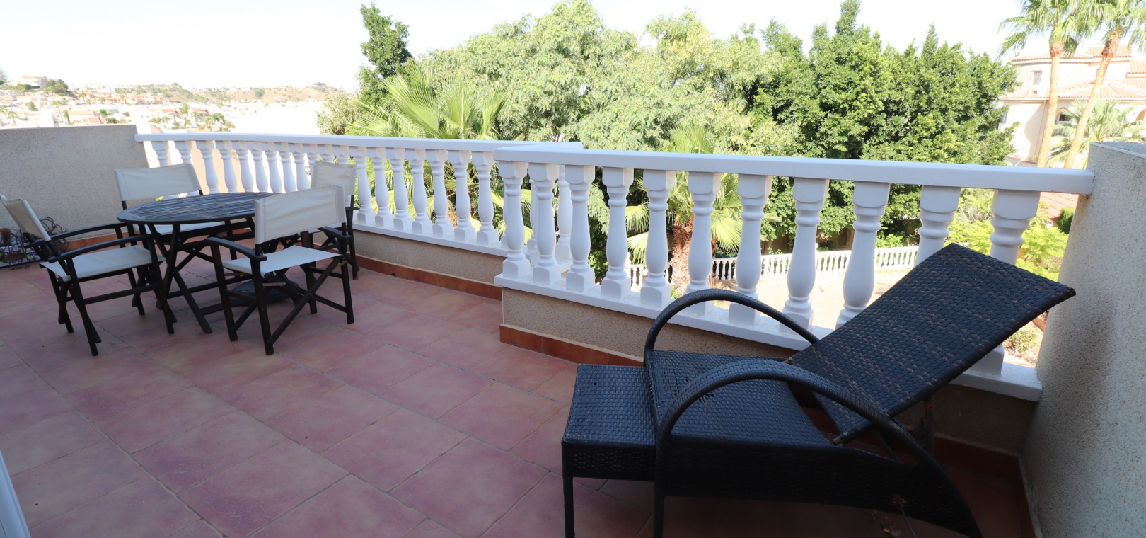 This Beautiful & Traditional Four Bedroom Detached Villa in La Marquesa is located in a prominent position on a desirable golf course, between Rojales and Ciudad Quesada. Within a few minutes drive of the nearest amenities on the course itself, bars, restaurants, shops, supermarkets and more... Guardamar beach is also just a 10/15 minutes drive away. This extremely spacious property of some 234m2 comprises on the ground floor of a lovely entrance via the first covered terrace, great for eating al fresco; main family lounge/dining room; second living space, currently used as a TV room with access out to the second covered terrace, overlooking the private pool; a separate fully fitted kitchen with breakfast bar and direct access out to the terrace; one double master bedroom with en suite corner bath and shower room; and a cloakroom. External stairs from the terrace leads to the first floor, which has two independent rooms, both with access to a Jack & Jill shower room; and an office... Outside set across this fantastic 800m2 plot is a beautifully landscaped garden, mainly tiled with a good variety of plants and trees throughout, ample off road parking, to include a permanent car port, plenty of outdoor dining room, sunbathing space, 10 x 4 swimming pool and an outside toilet, a true garden to enjoy the Spanish lifestyle! Extras included are fitted wardrobes, air conditioning throughout, grills, ceiling fans, separate utility room, central heating, electric gates and storage room... Great property for a great price!