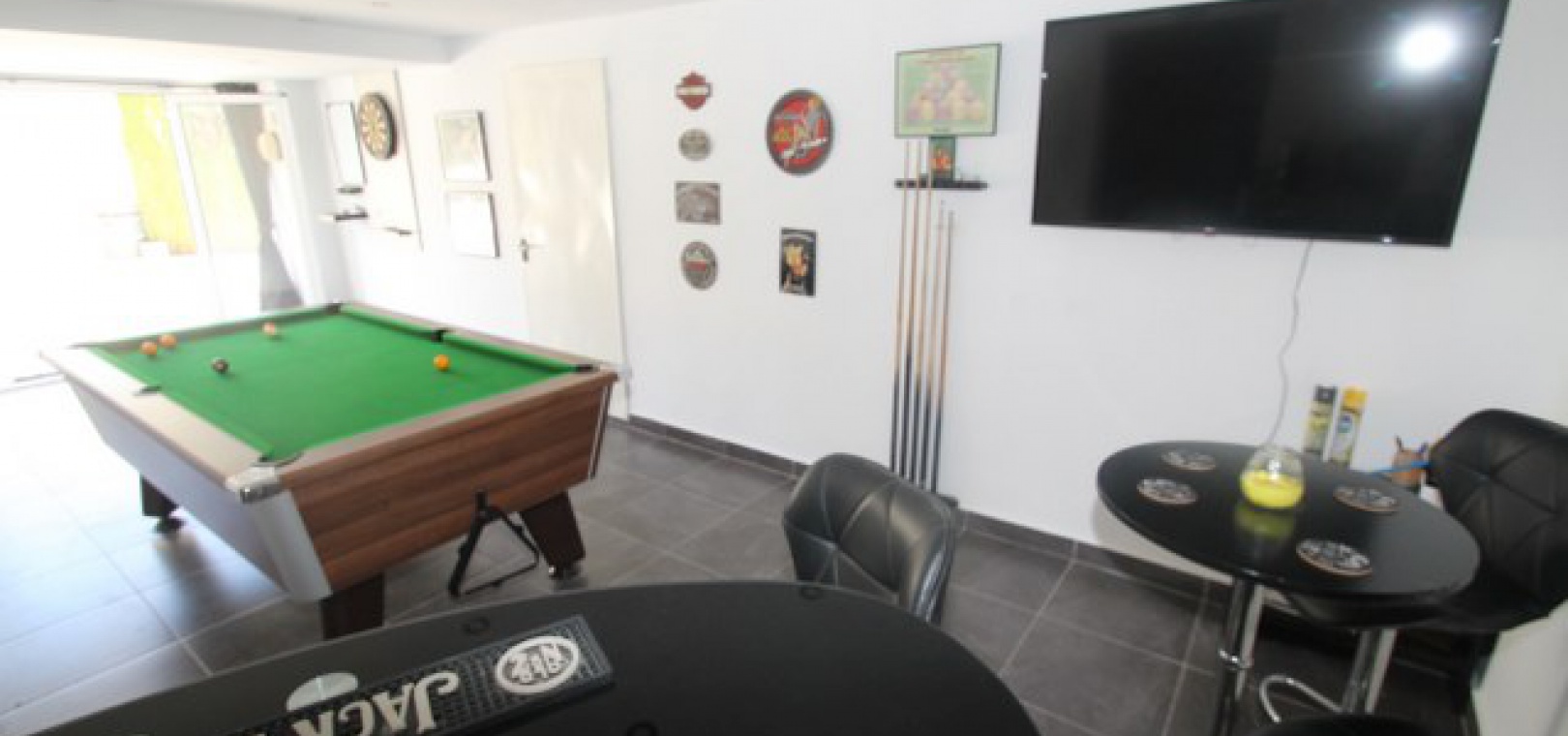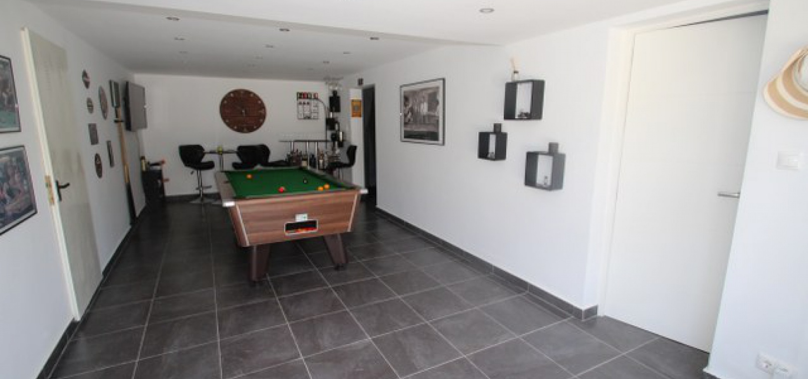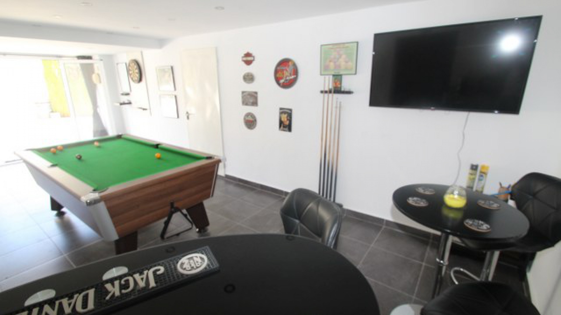 On the ground floor there are glazed doors from the garden leading into a games room with a shower room and bedroom area with hot and cold A/C, This could be easily converted into a completely self contained apartment.