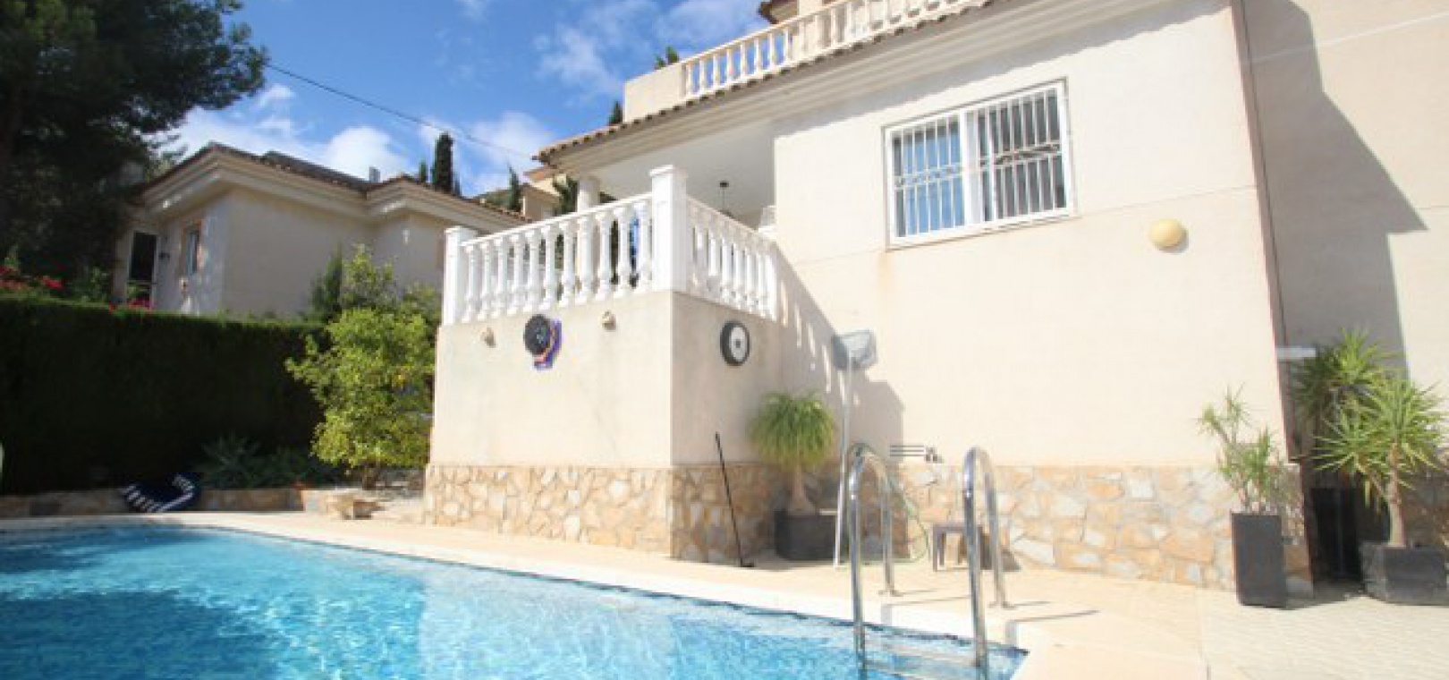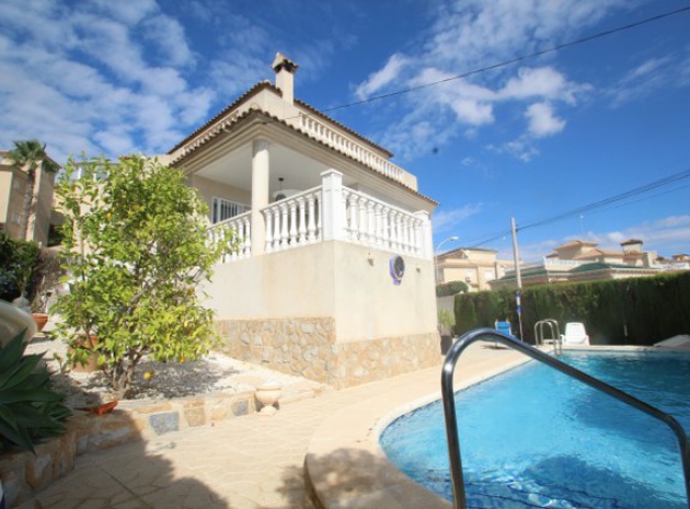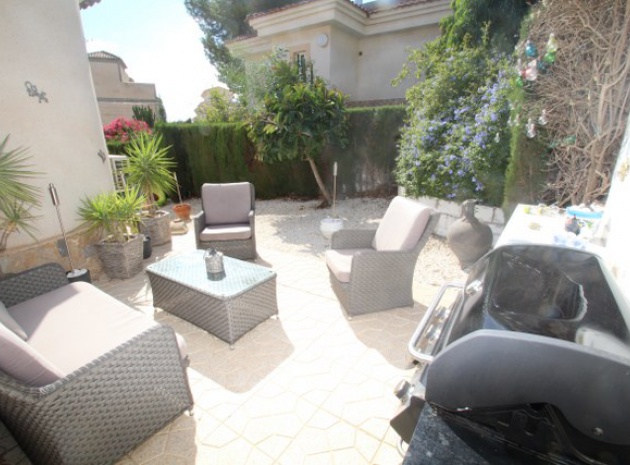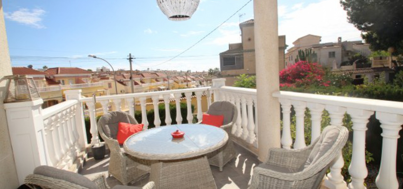A 2/3 bed 2.5 bath detached villa with a private swimming pool on a large corner plot located in El Galan, Villamartin, Costa Blanca.