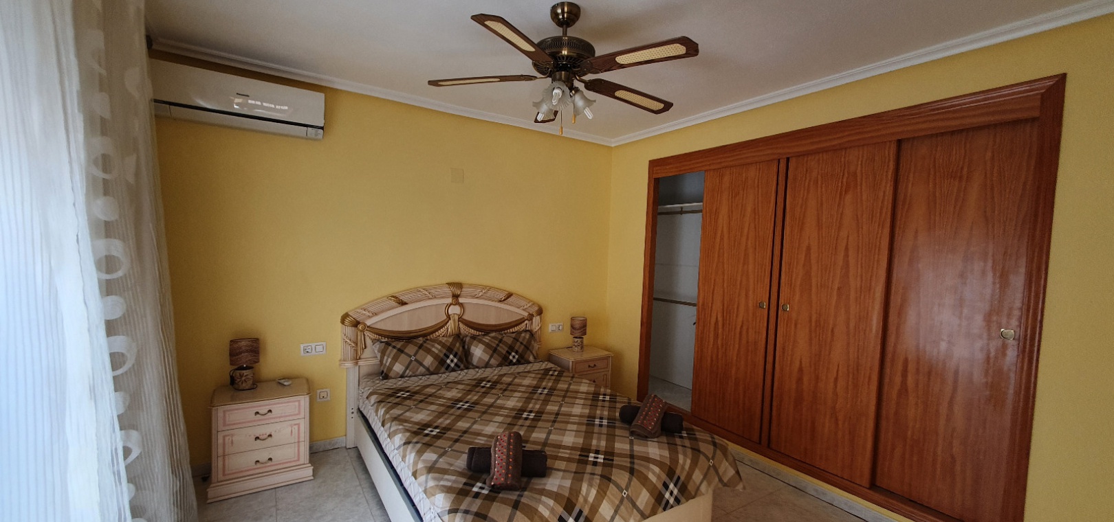 On the ground floor there is an entrance hallway, a lounge/diner with a feature fire place, hot and cold A/C and patio doors onto a large terrace overlooking the pool, a separate fully fitted kitchen, 2 x double bedrooms both with fitted wardrobes and 1 x bathroom.