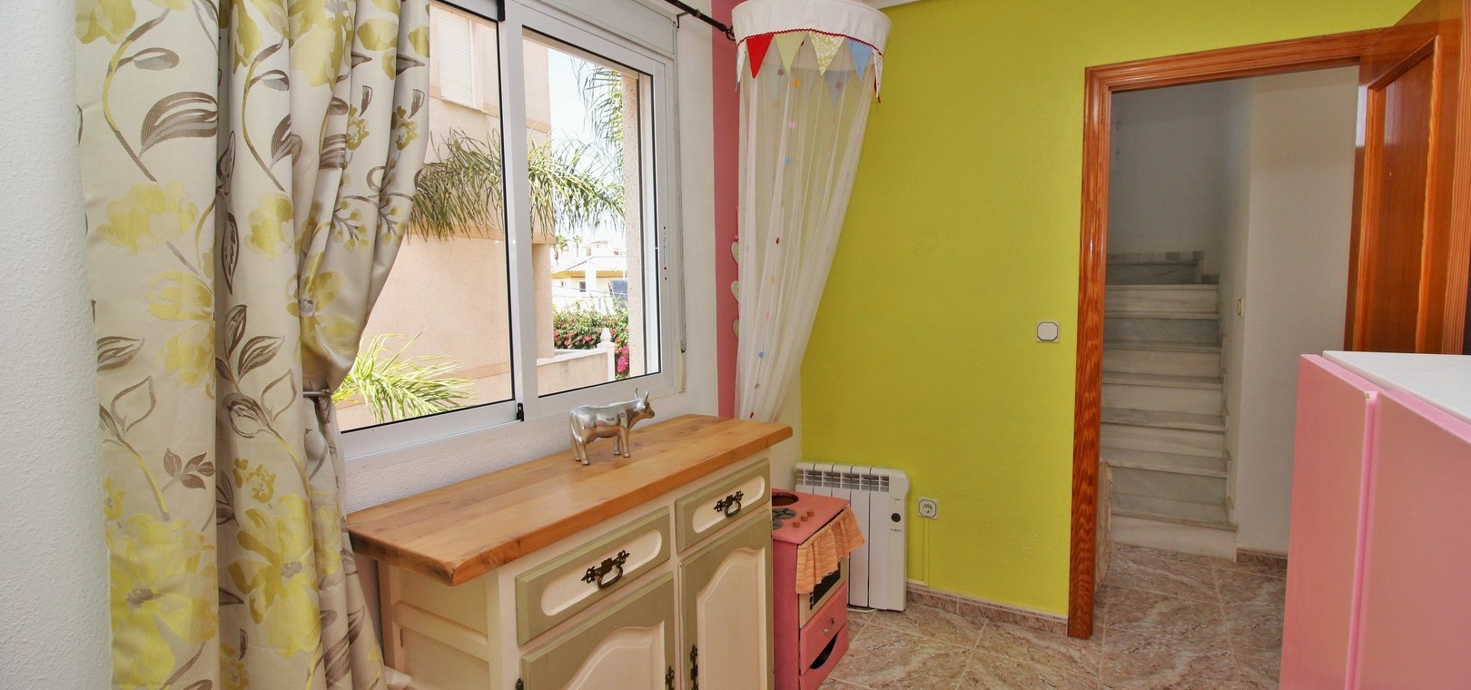 This property is located a few minutes from El Galan & La Fuente commercial centres. La Zenia beach is less than 10 minutes drive or you can use the local bus service. The new Zenia Boulevard shopping mall (largest shopping mall in Alicante province with the largest Primark clothing store in Europe) is also just 5 minutes drive. There are 4 golf courses all within a 5 minute drive. This property is located 50 minutes to Alicante airport & 35 minutes to Murcia Corvera airport.