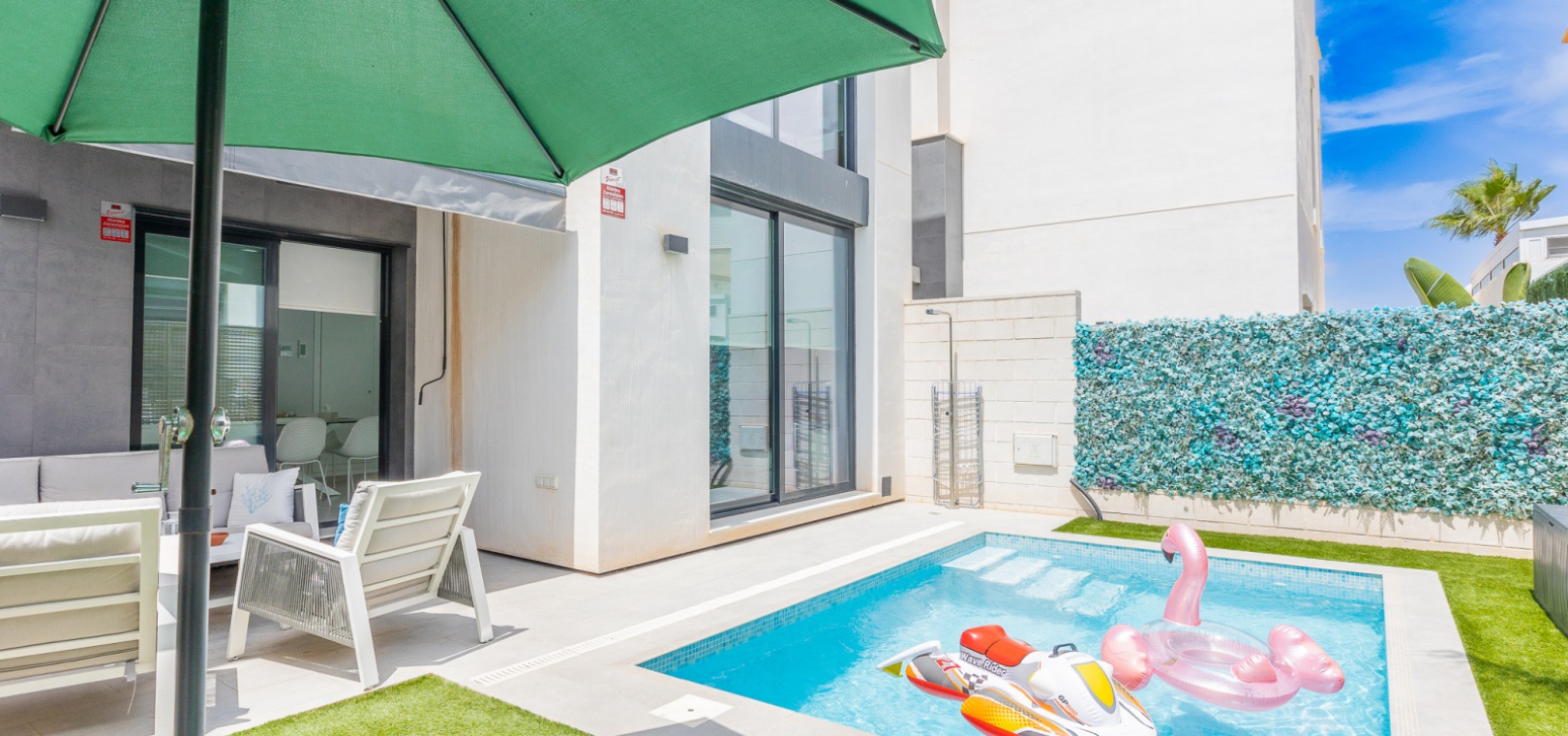 Outside there is a front terrace, private swimming pool, driveway for off road parking, 1st floor balcony, private rooftop solarium & much more.