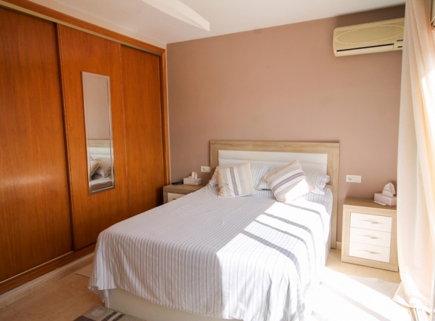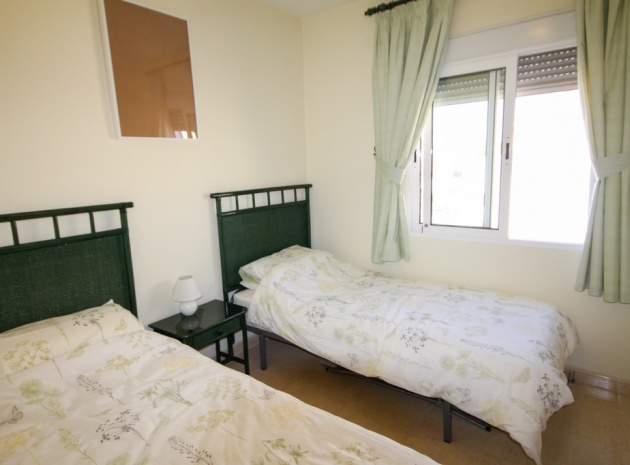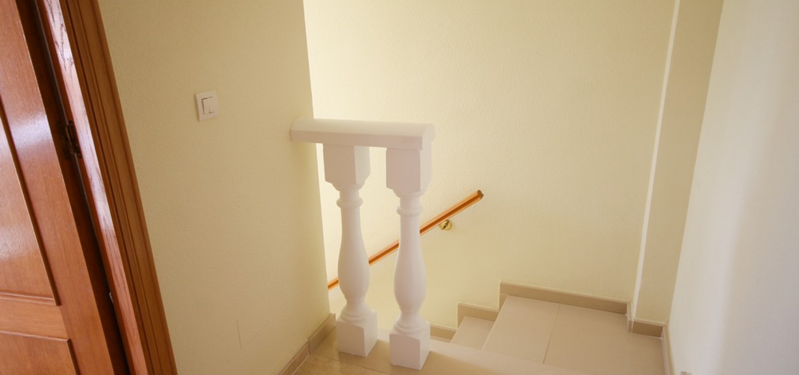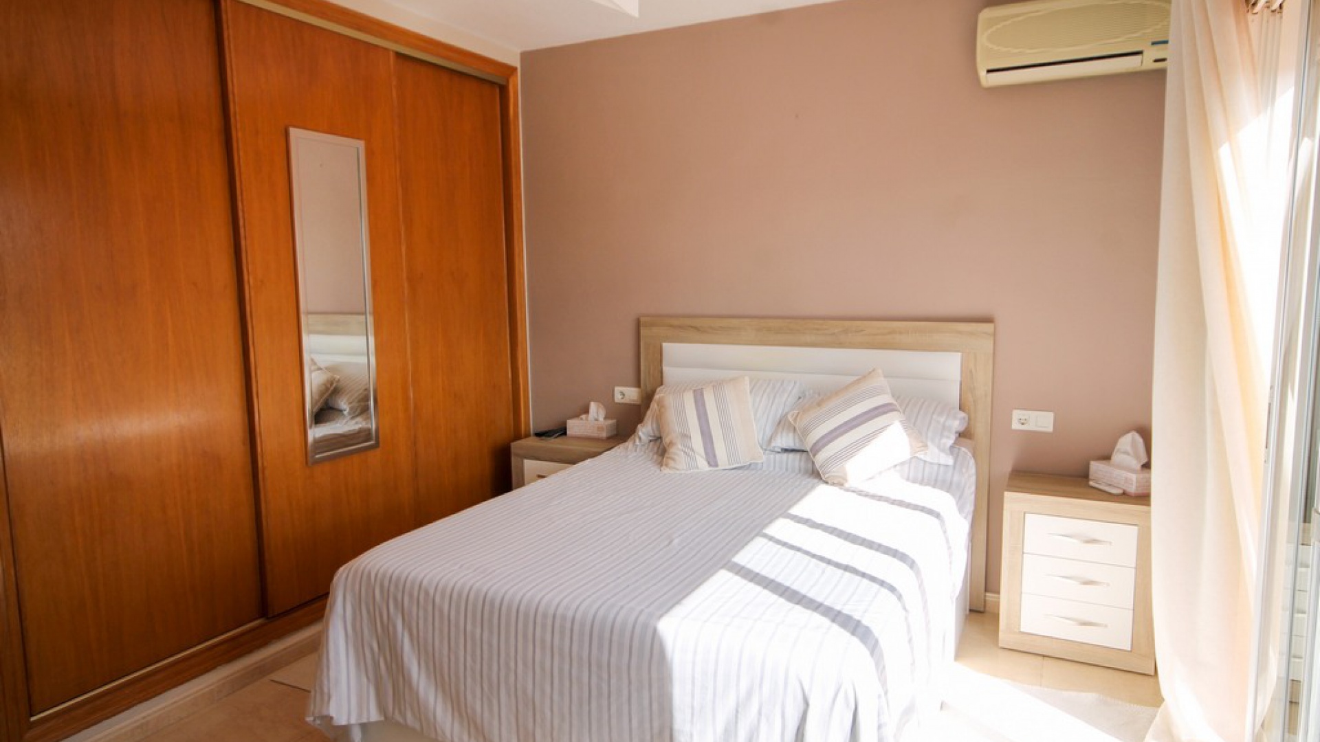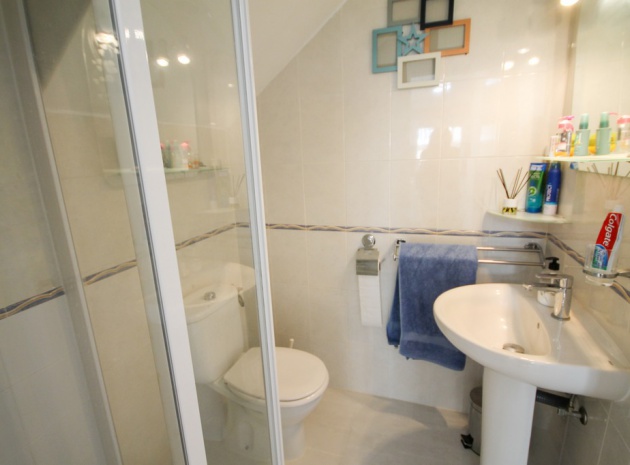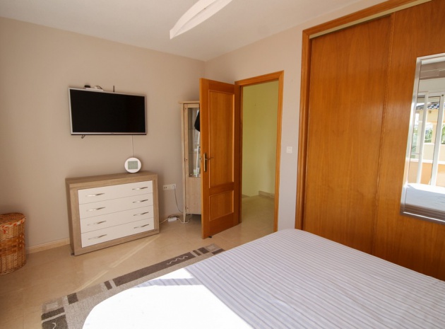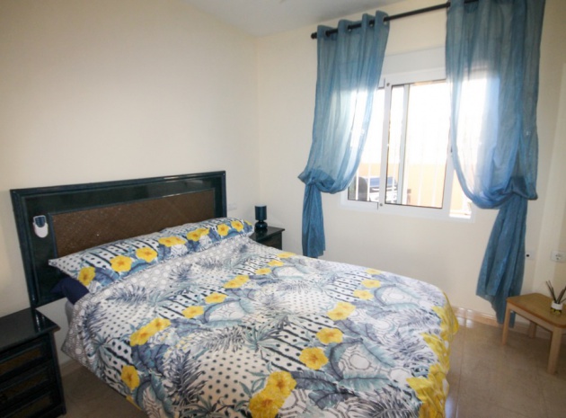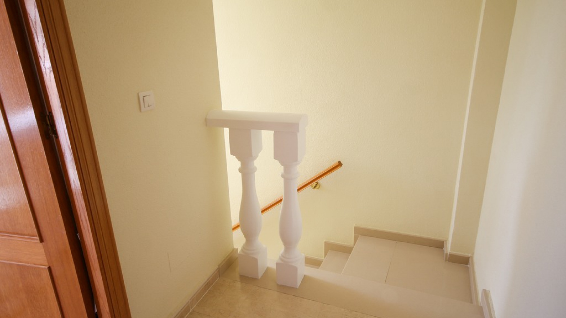 On the first floor there is a modern shower room and two double bedrooms, both with fitted wardrobes. The maib bedroom is particularly spacious with patio doors onto a private terrace with some lovely distant views of the salt lake, the sea and towards La Manga.