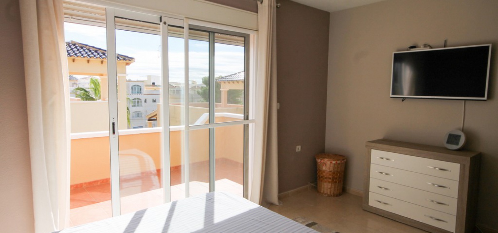 This property has easy access to the four top class golf-courses in the area: Villamartin, Campoamor, Las Ramblas & Las Colinas. The Golden Orihuela Costa beaches are less than 10 minutes drive away as is the Zenia Boulevard shopping Mall (largest shopping mall in Alicante province). Local bars, shops, restaurants, supermarket etc. are just a few minutes away. There are tennis courts & tennis coaching available at the nearby Campoamor hotel. Alicante airport is 45 minutes & Murcia Corvera airport is 35 minutes drive.