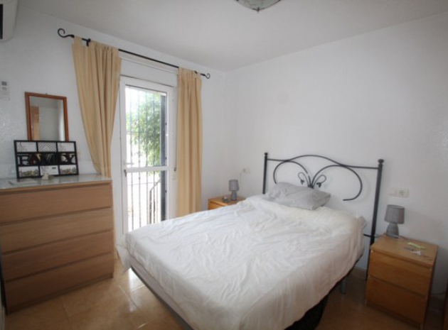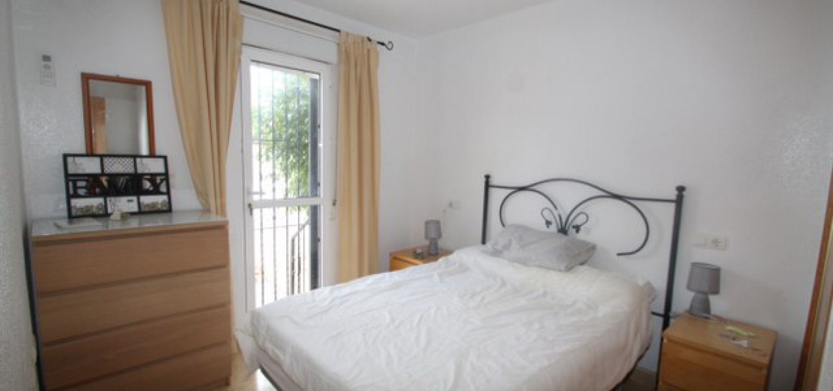 Lounge/diner with hot and cold A/C, open plan kitchen, utility area, 2 x double bedrooms with hot and cold A/C, the main bedroom has fitted wardrobes, 1 x bathroom, covered front terrace with a sun awning, front & rear garden, communal swimming pool and gardens, 24 hour security and much more.