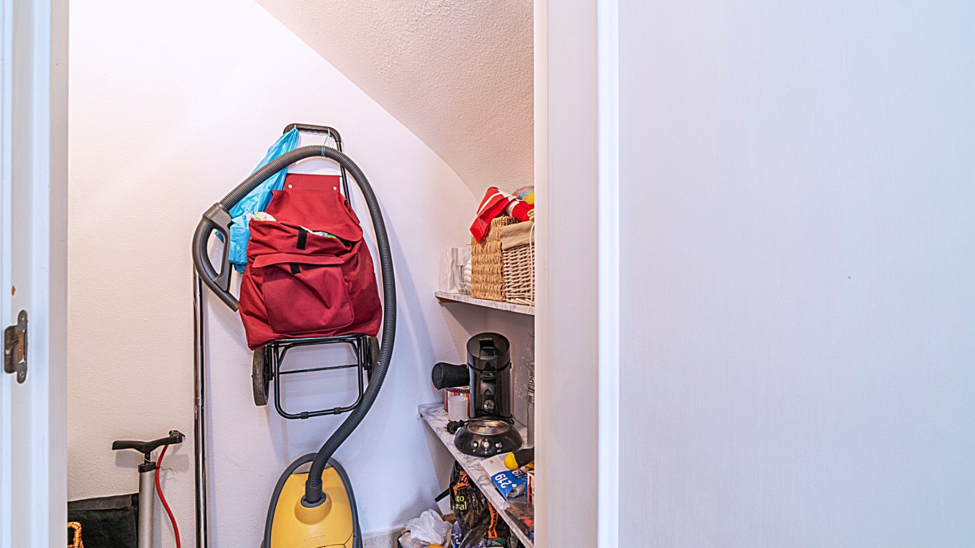 Lounge/diner with hot and cold A/C, an open plan fully fitted kitchen, a separate utility area, 1 x double bedroom with fitted wardrobes & a ceiling fan, 1 x shower room, a partly glazed in balcony off the lounge & an under stair storage cupboard.