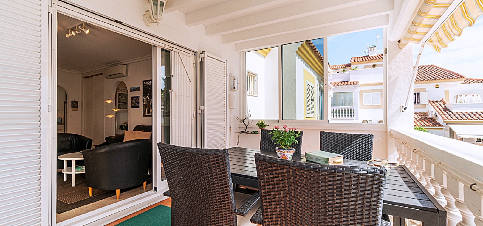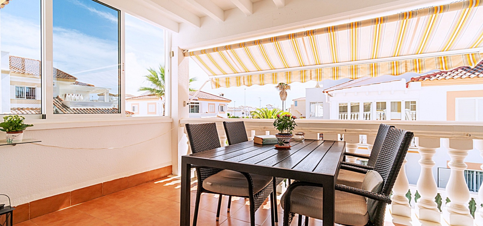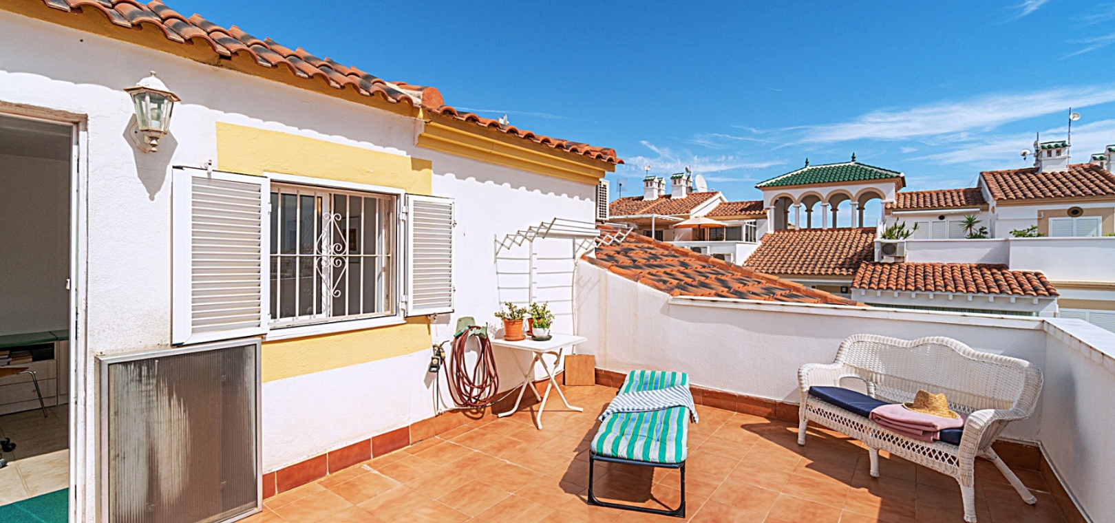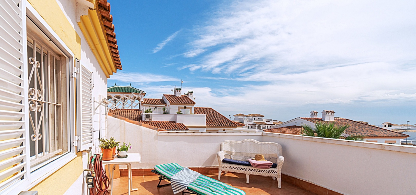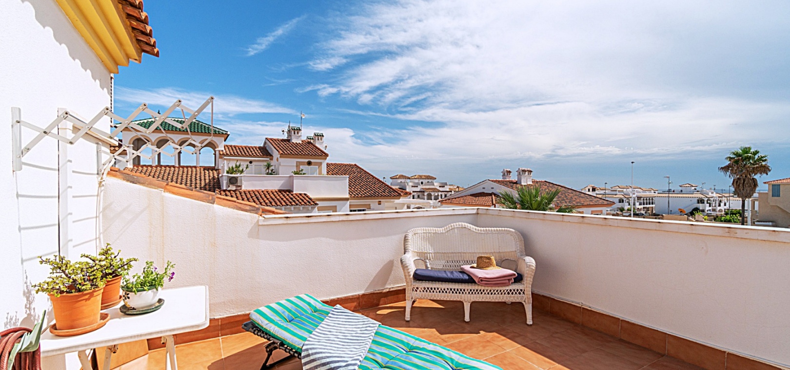 An East facing 2 bed 1 bath top floor apartment with a private rooftop solarium located in Zeniamar III, Playa Flamenca, Costa Blanca South