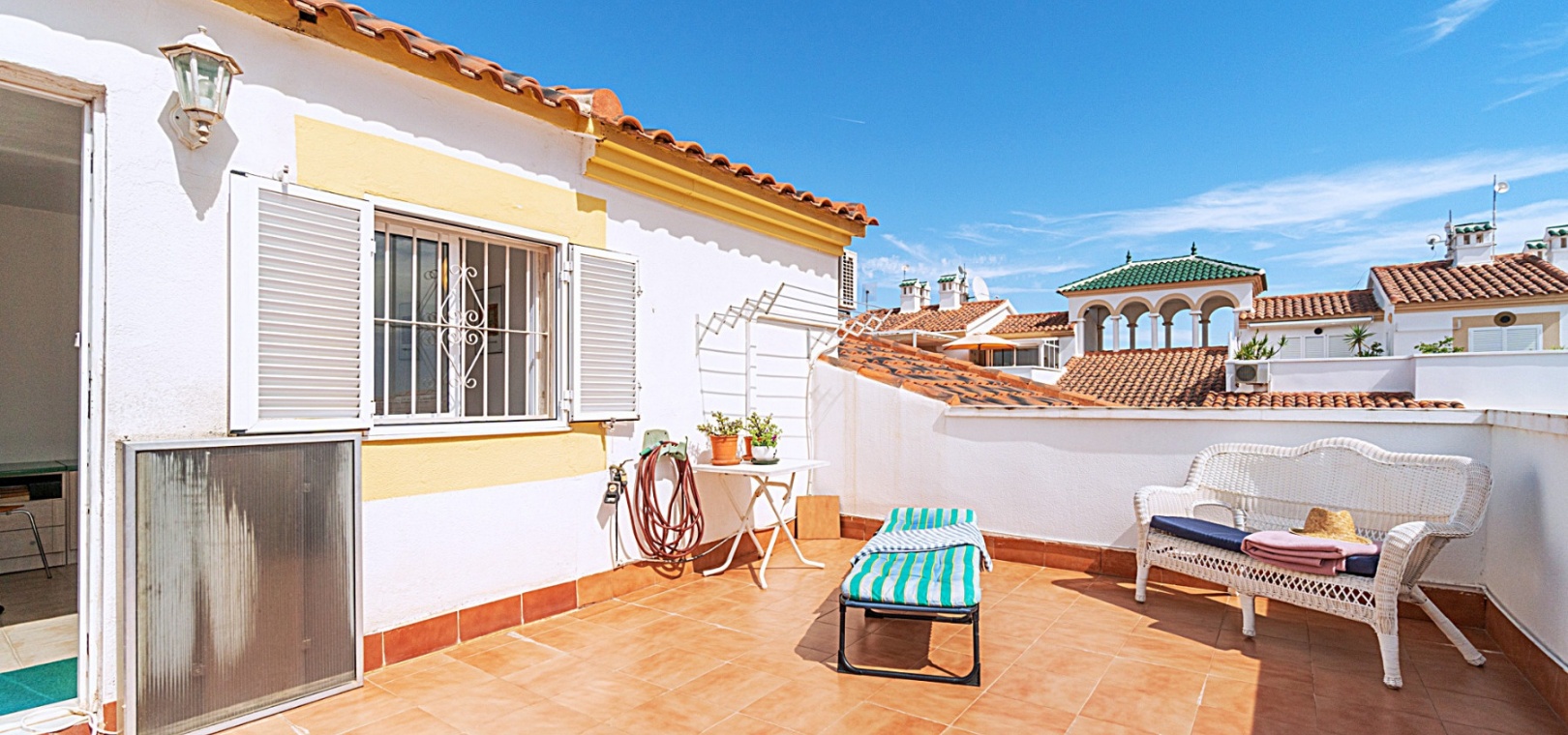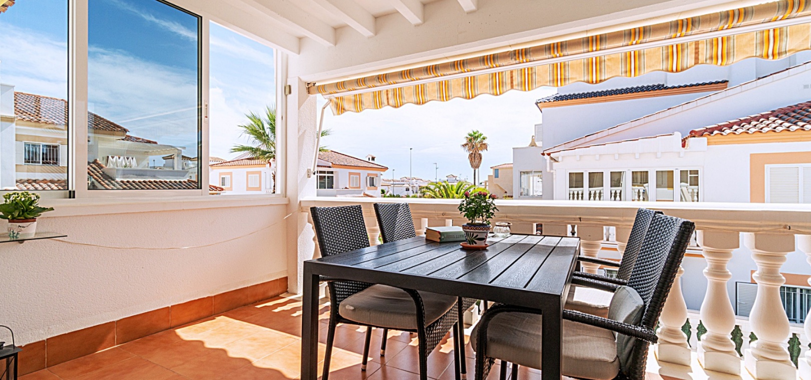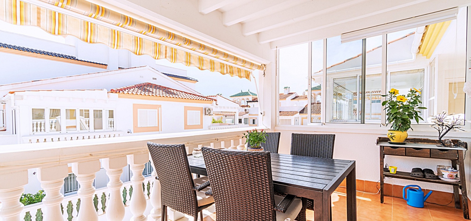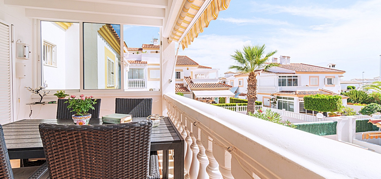 An East facing 2 bed 1 bath top floor apartment with a private rooftop solarium located in Zeniamar III, Playa Flamenca, Costa Blanca South