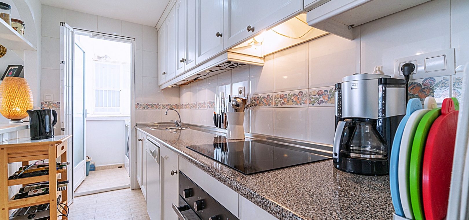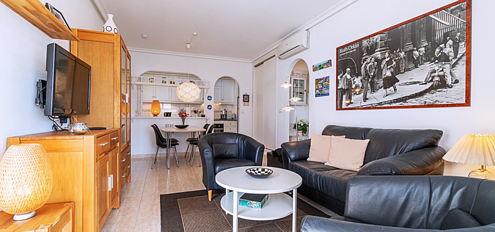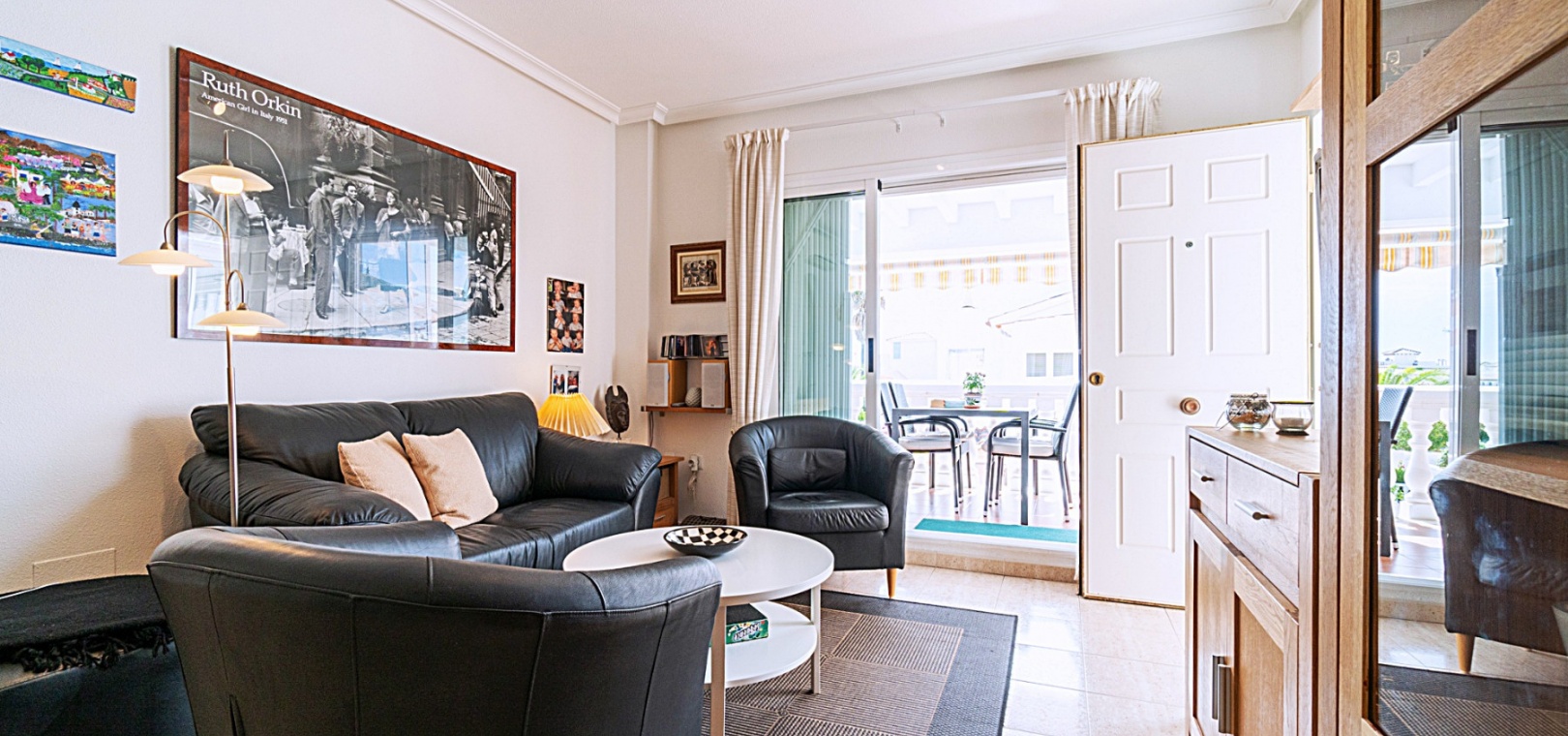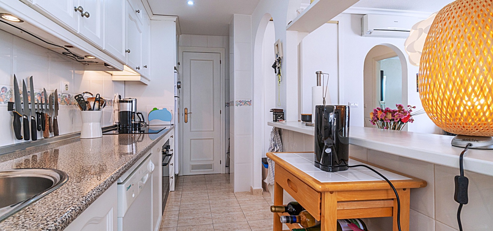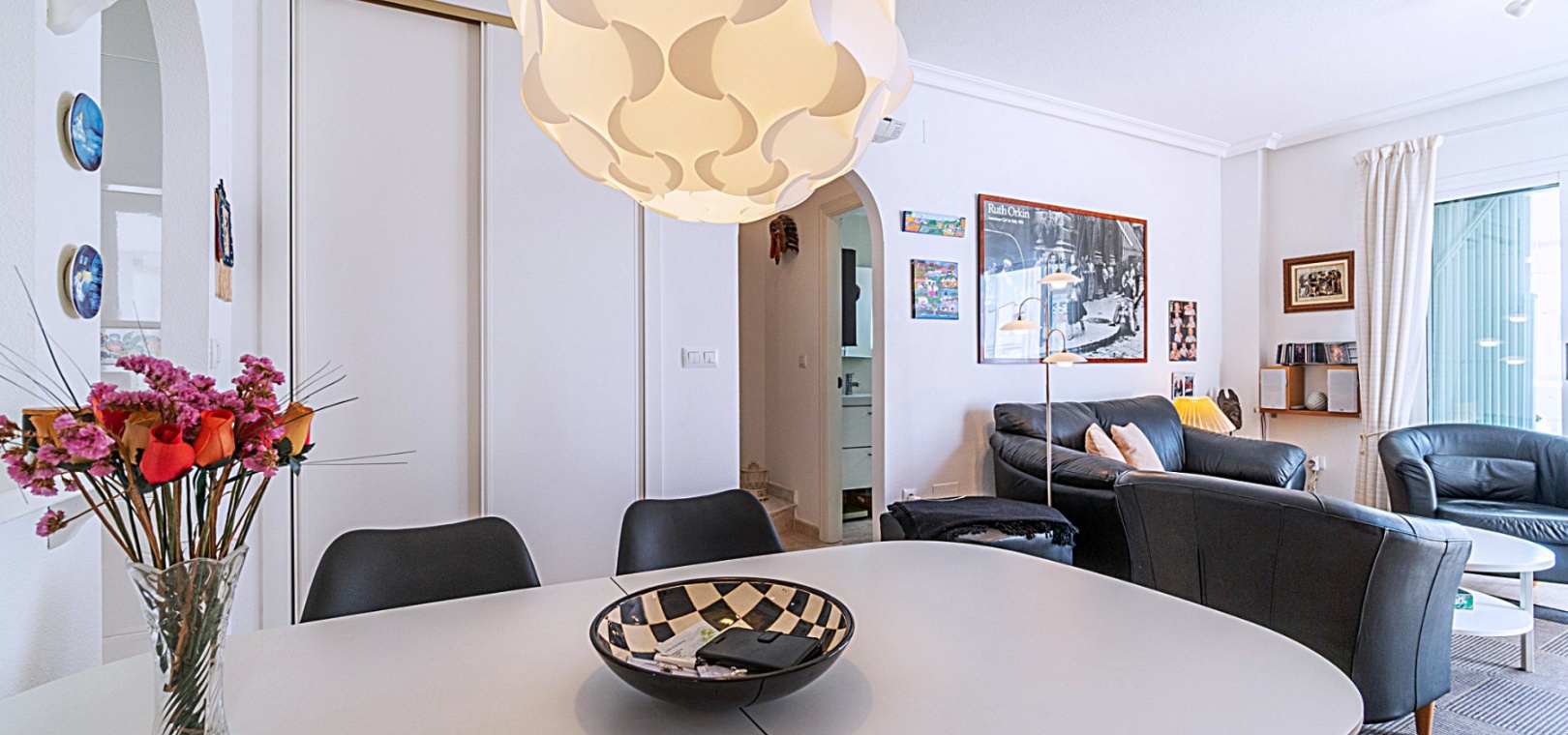 An East facing 2 bed 1 bath top floor apartment with a private rooftop solarium located in Zeniamar III, Playa Flamenca, Costa Blanca South