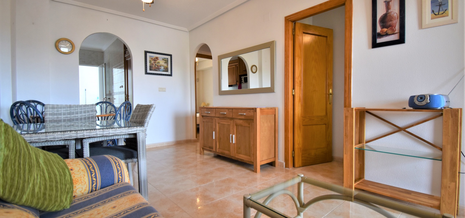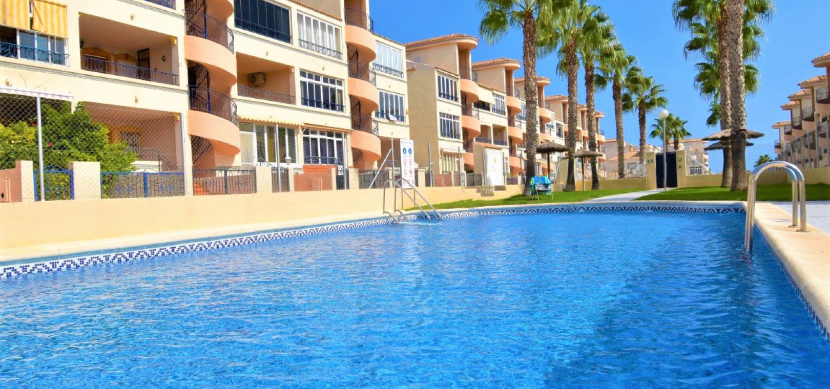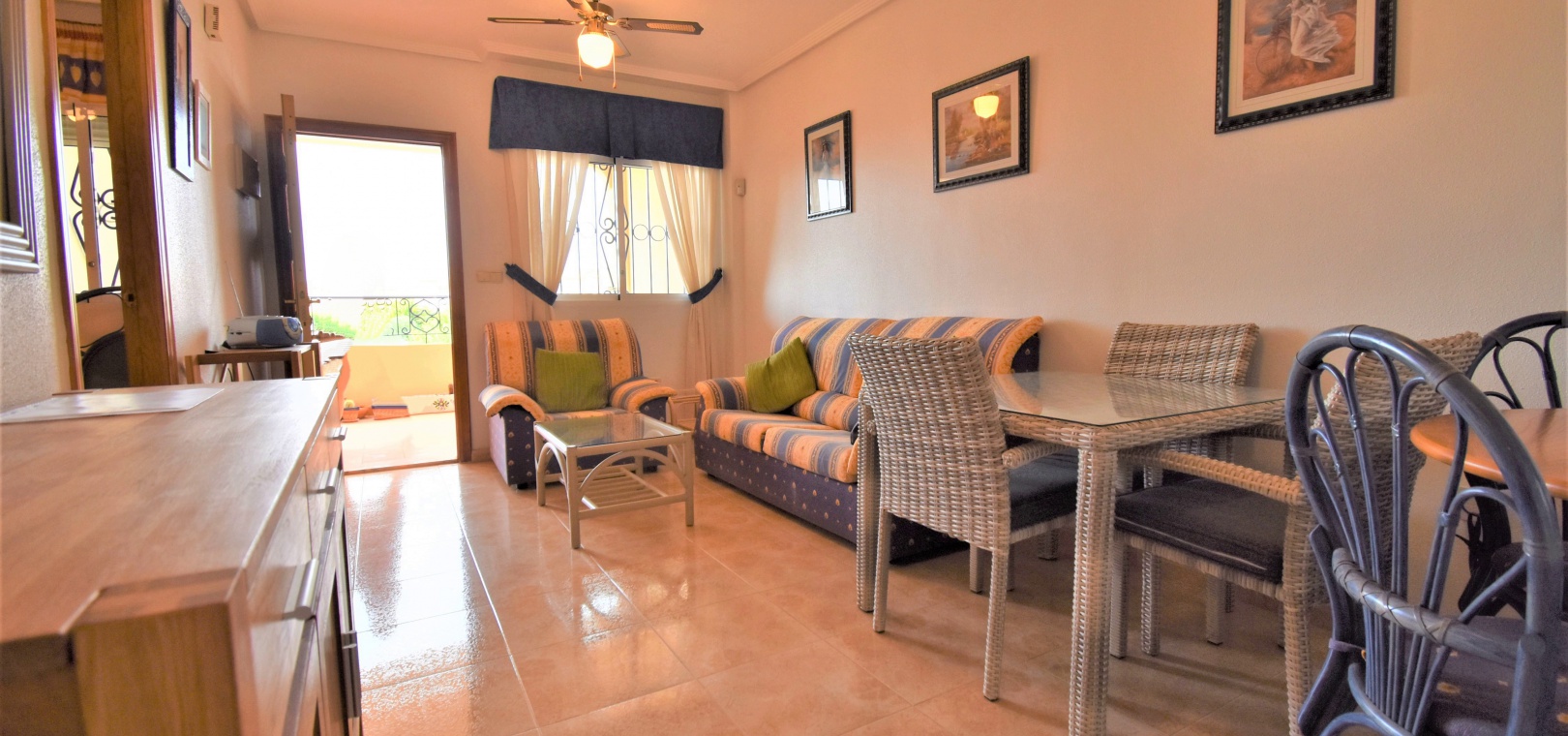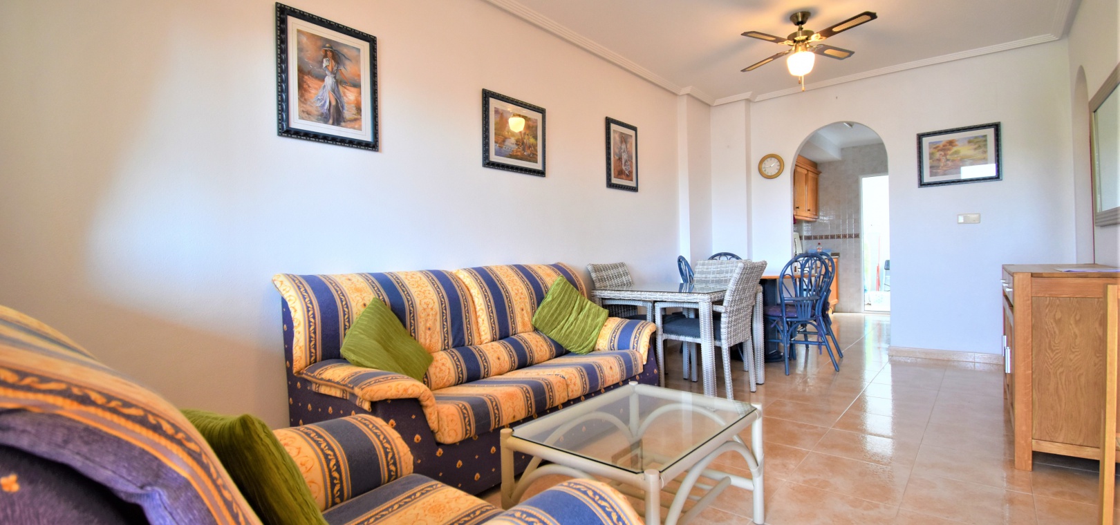 This South Facing, Two Bedroom, First Floor Apartment in Punta Prima is located in a popular area on the Orihuela Costa, close to Los Altos, La Florida & Playa Flamenca. Situated within a 10 minute walk of many of the nearest amenities, facilities and commercial centre, plus Punta Prima beachfront in a couple of minutes drive! This property comprises of a separate fully fitted kitchen, with an adjoining utility room; lounge/dining room leading out to the front, spacious, covered terrace, with open area views; two double bedrooms; and a family bathroom. Extras included are off road parking, fitted wardrobes, ceiling fans and of course the use of the fabulous communal swimming pool!