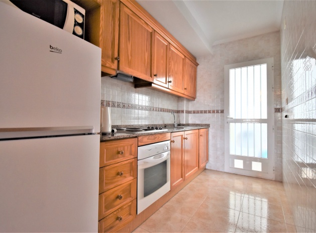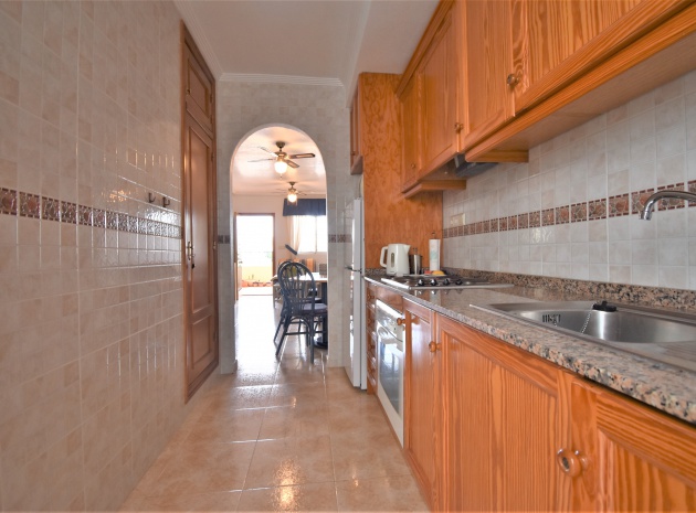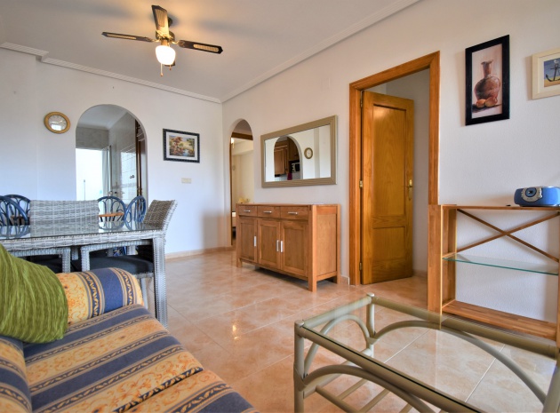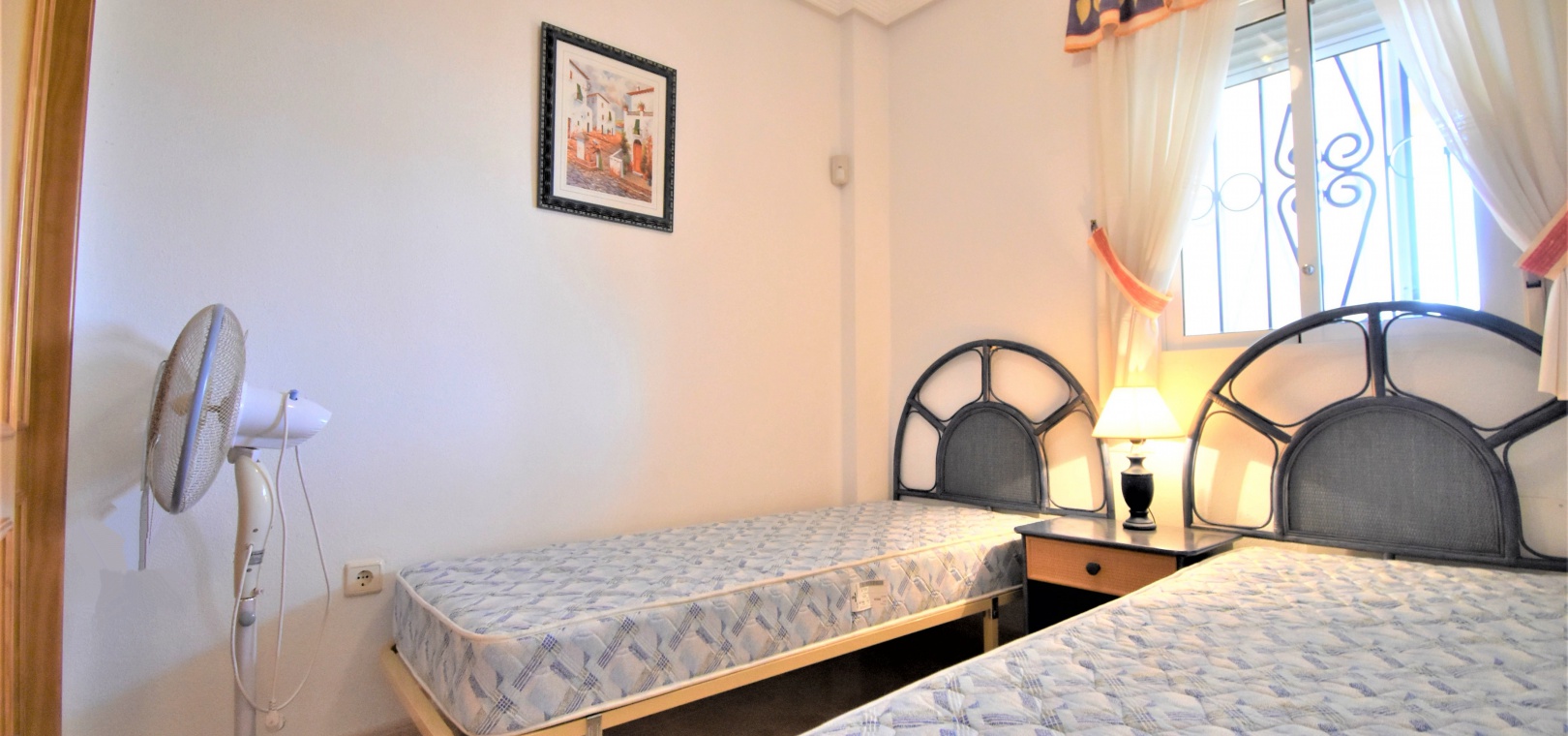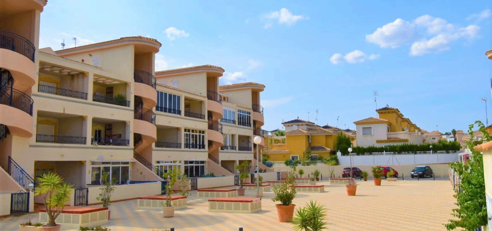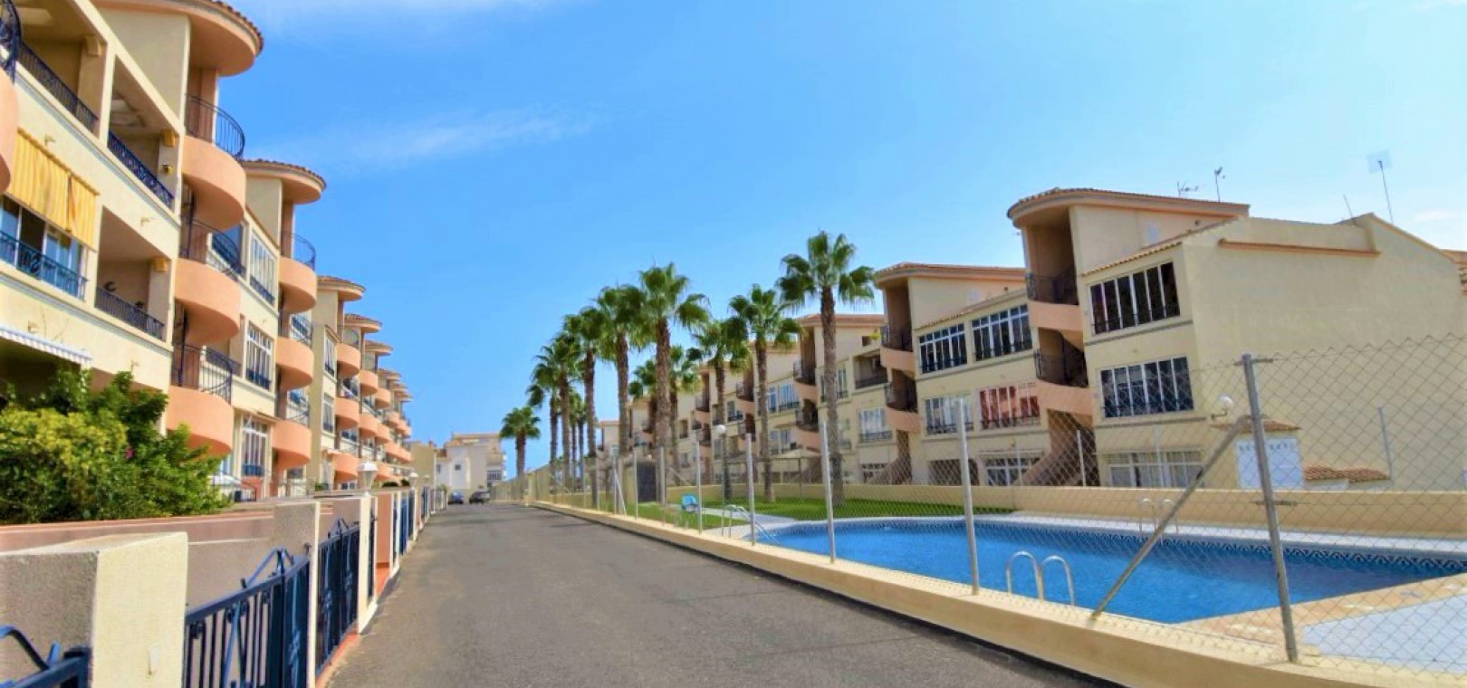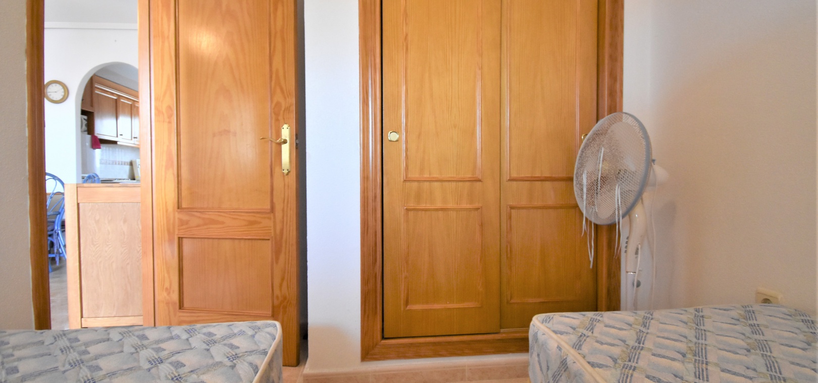 This South Facing, Two Bedroom, First Floor Apartment in Punta Prima is located in a popular area on the Orihuela Costa, close to Los Altos, La Florida & Playa Flamenca. Situated within a 10 minute walk of many of the nearest amenities, facilities and commercial centre, plus Punta Prima beachfront in a couple of minutes drive! This property comprises of a separate fully fitted kitchen, with an adjoining utility room; lounge/dining room leading out to the front, spacious, covered terrace, with open area views; two double bedrooms; and a family bathroom. Extras included are off road parking, fitted wardrobes, ceiling fans and of course the use of the fabulous communal swimming pool!