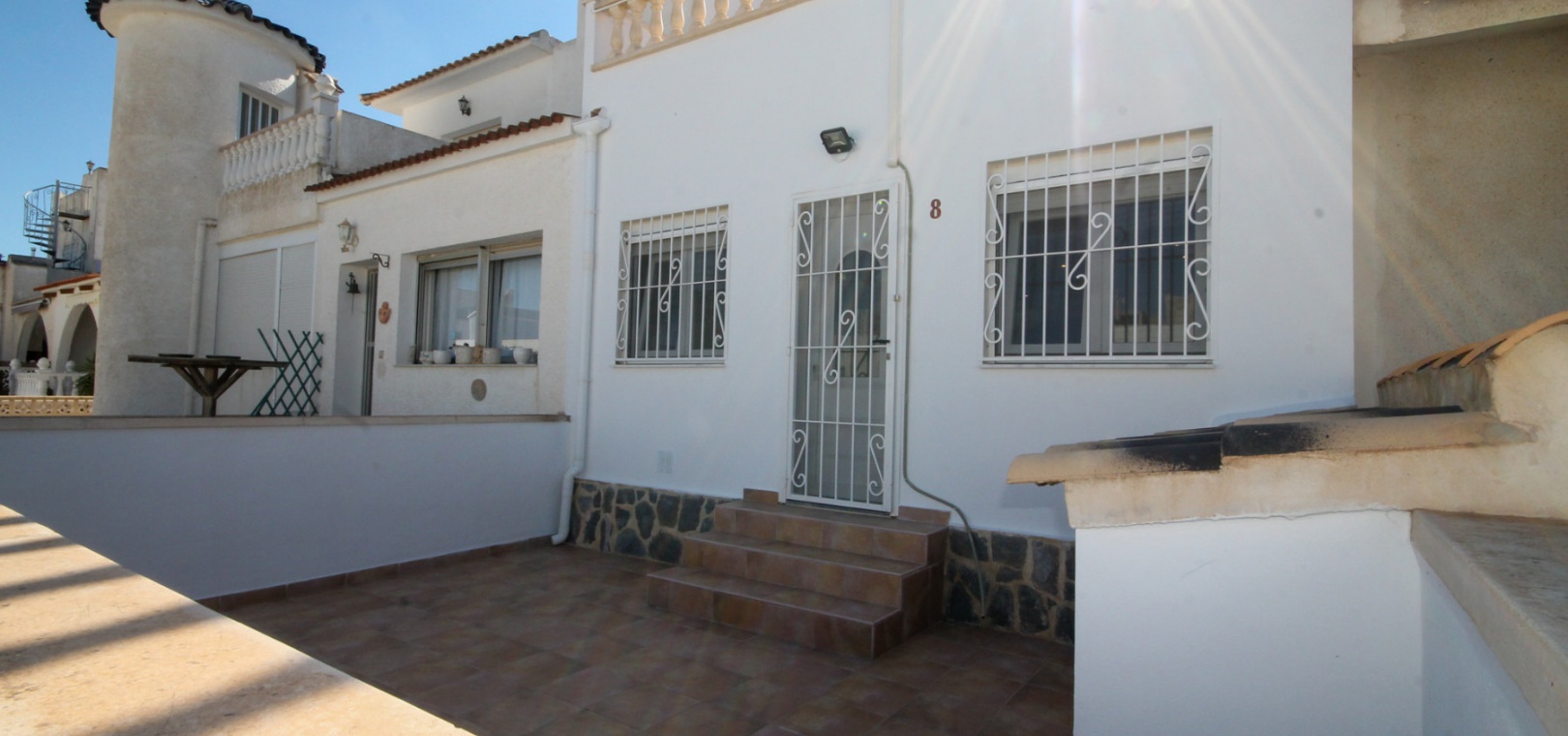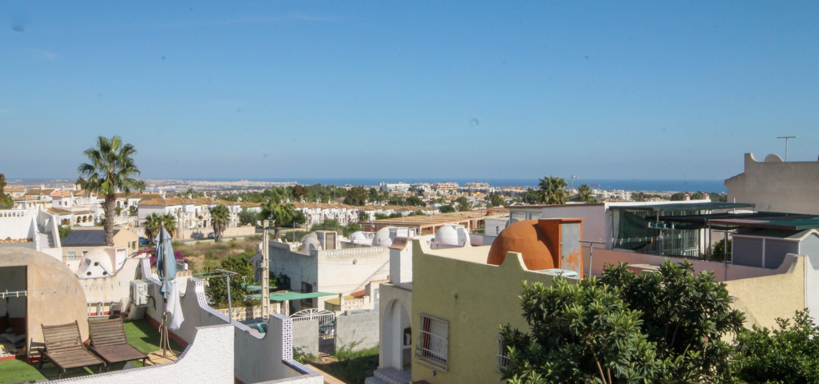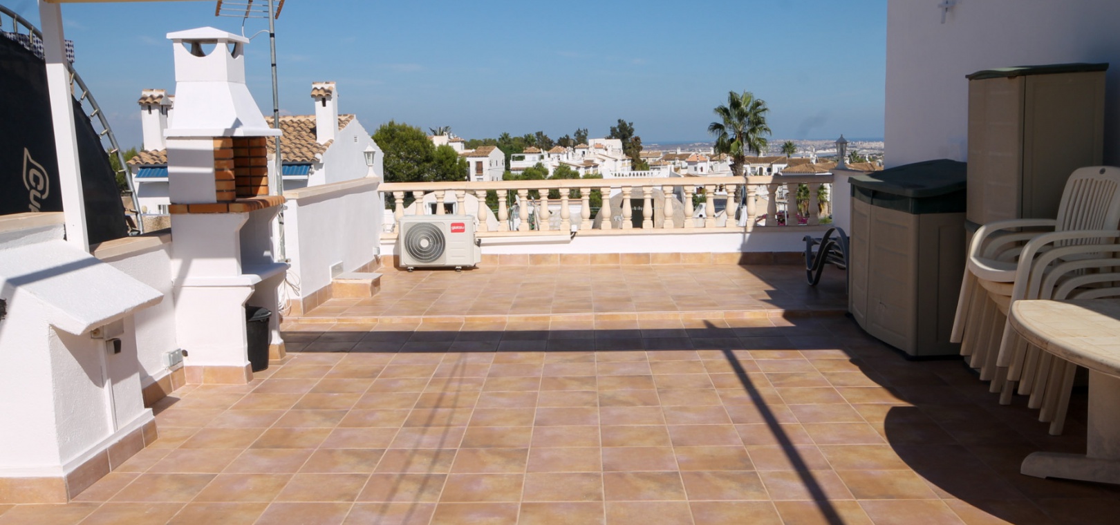 An East facing large 2 bed 1 bath bungalow with a private rooftop solarium located in Blue Lagoon, Villamartin, Costa Blanca South.